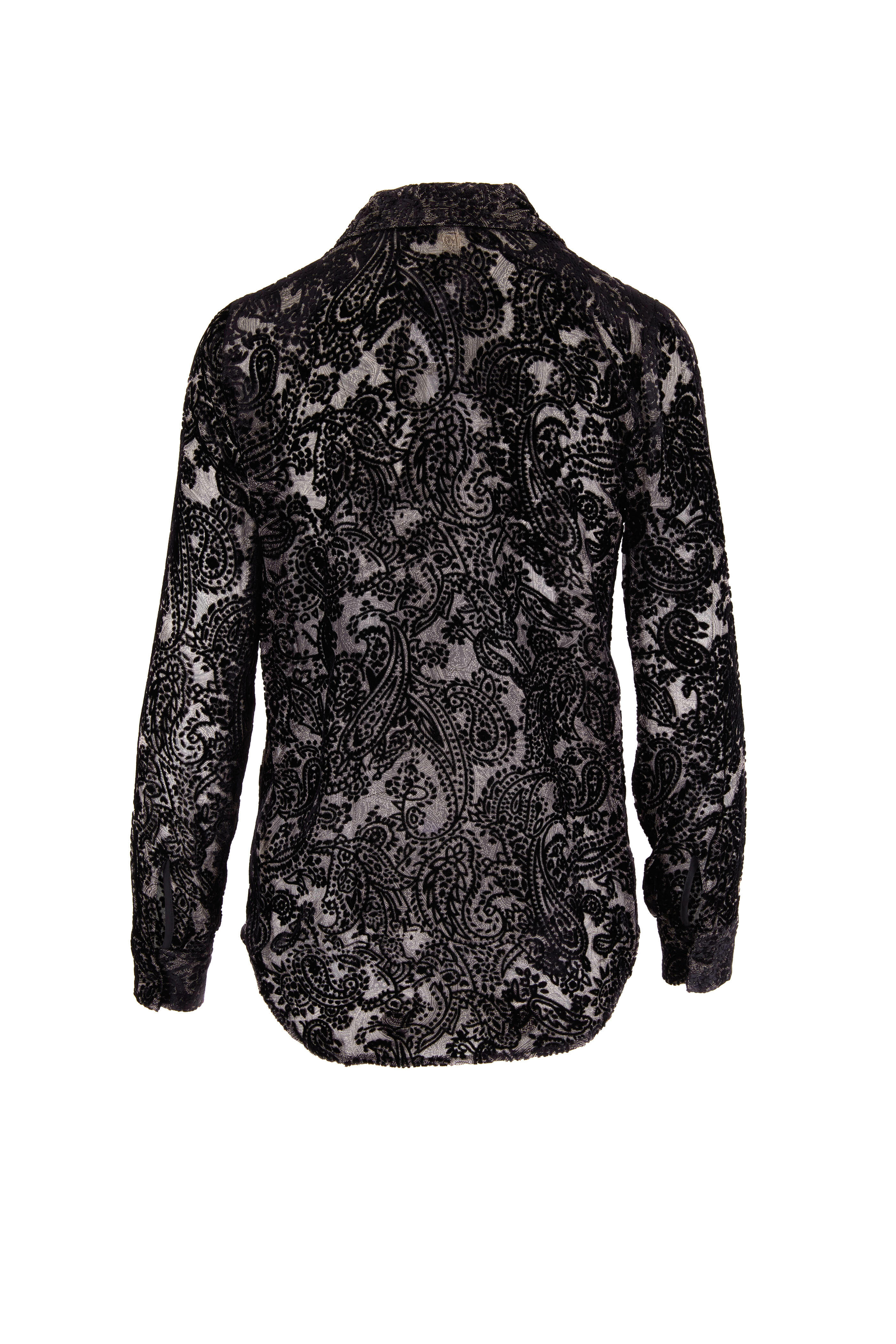 • L'Agence - Hailie Black Burnout Velvet Blouse