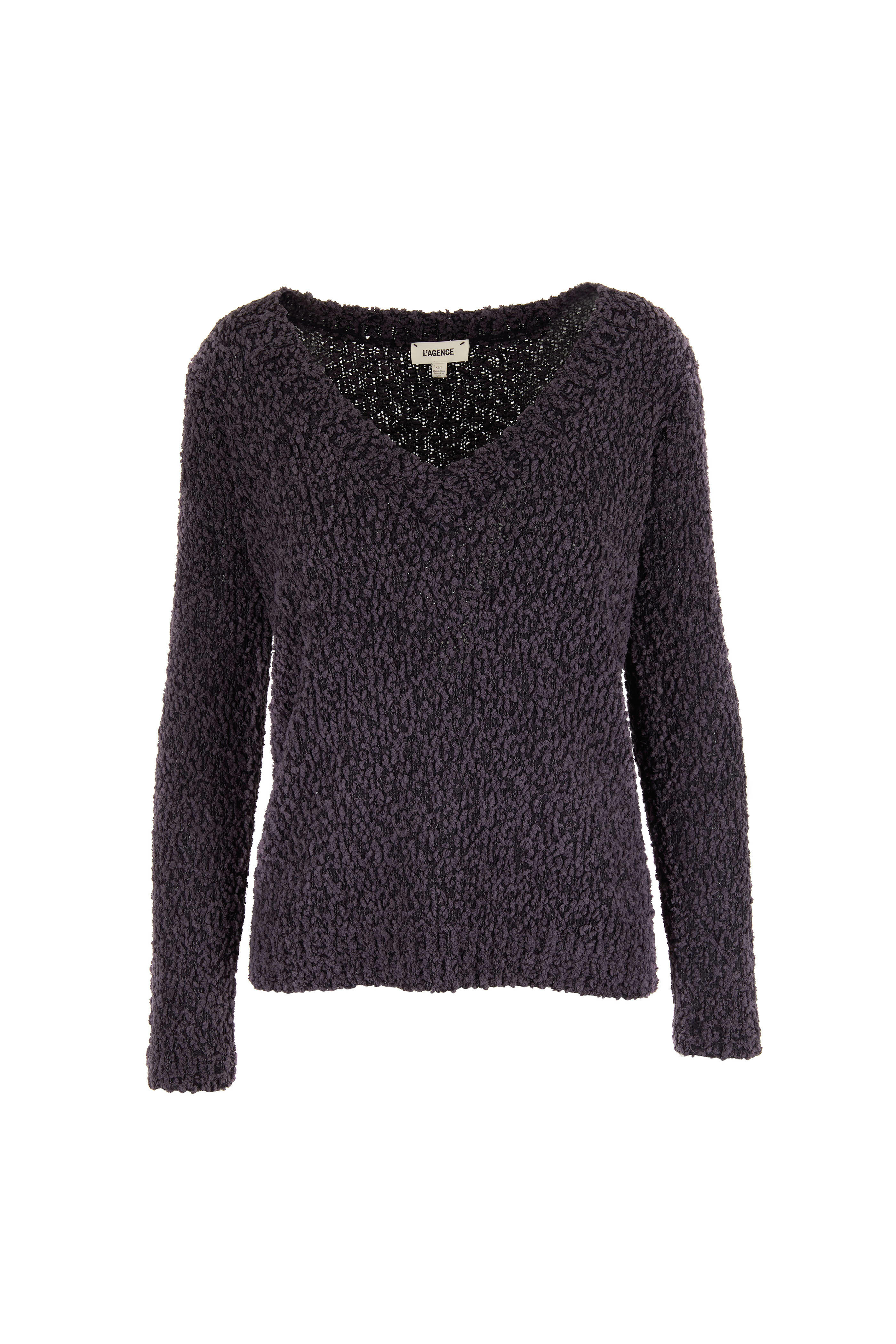 V-neckline. Imported. 86% polyester, 14% acrylic. Hand wash.