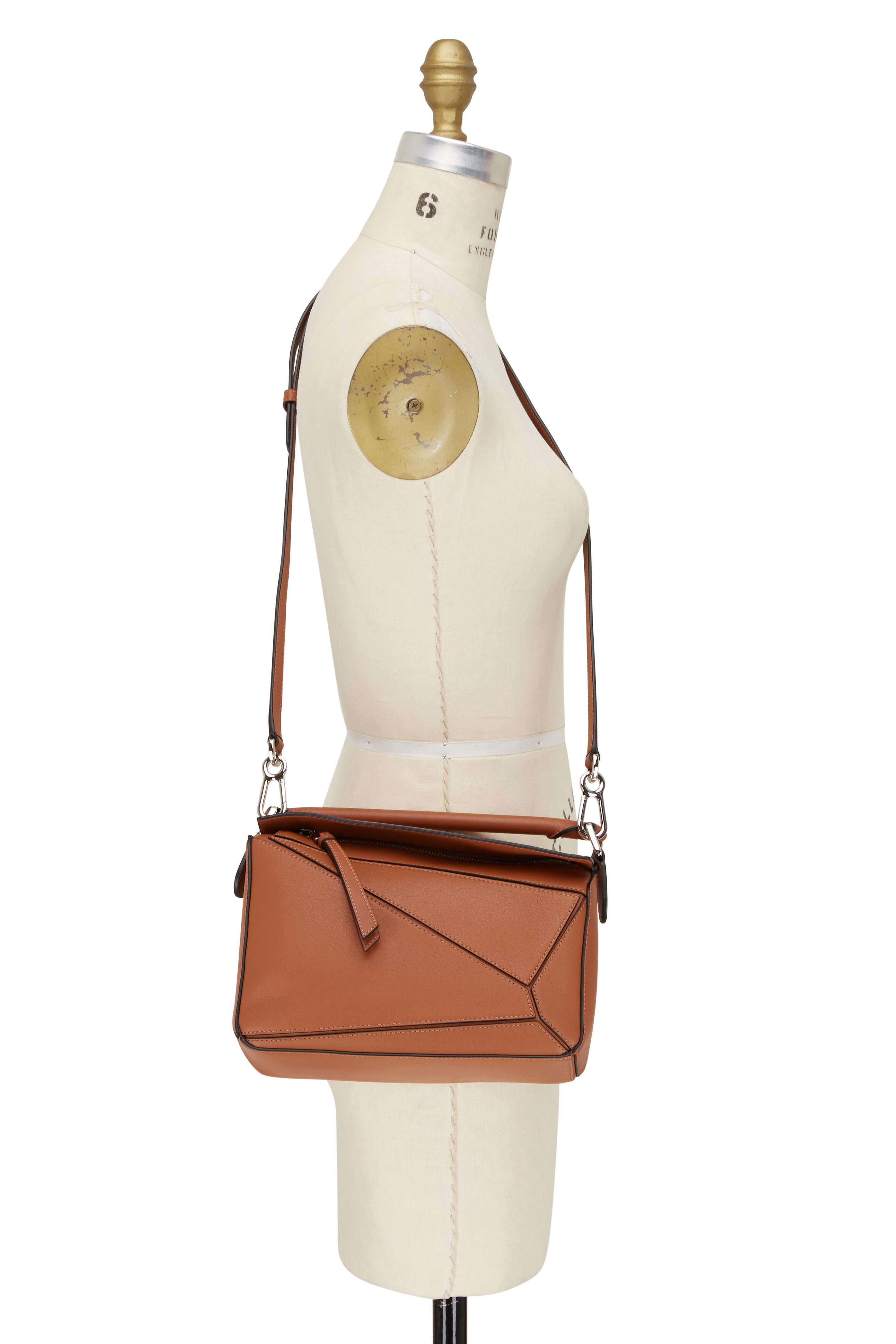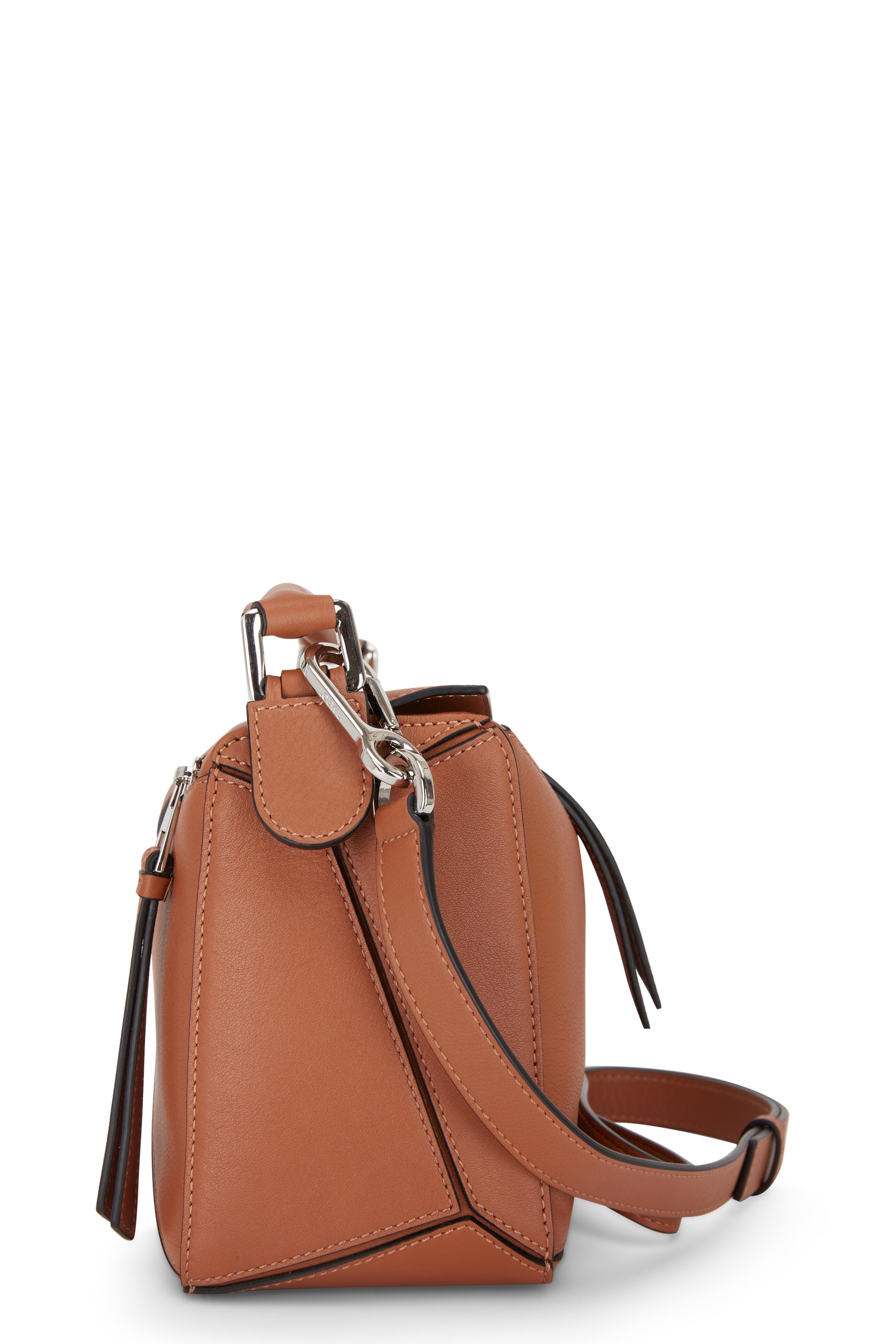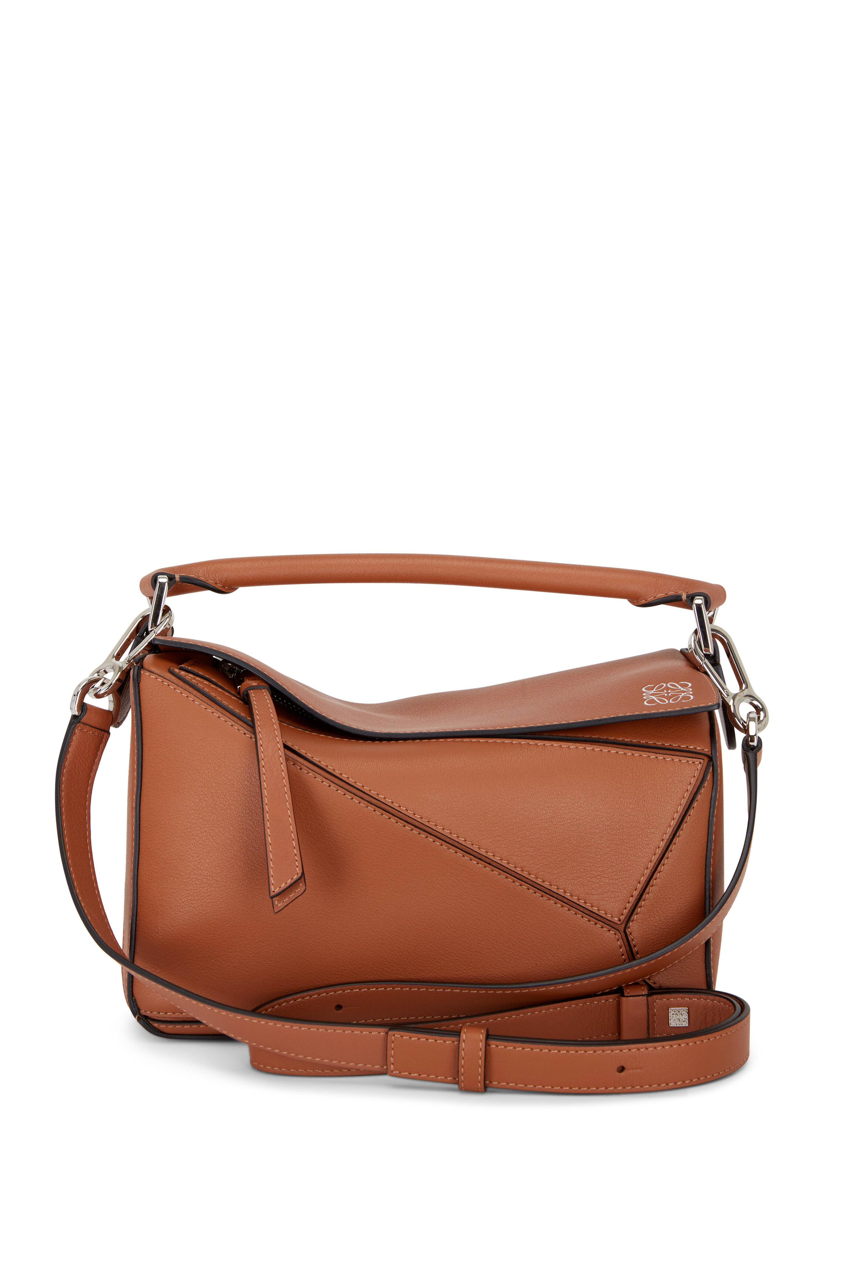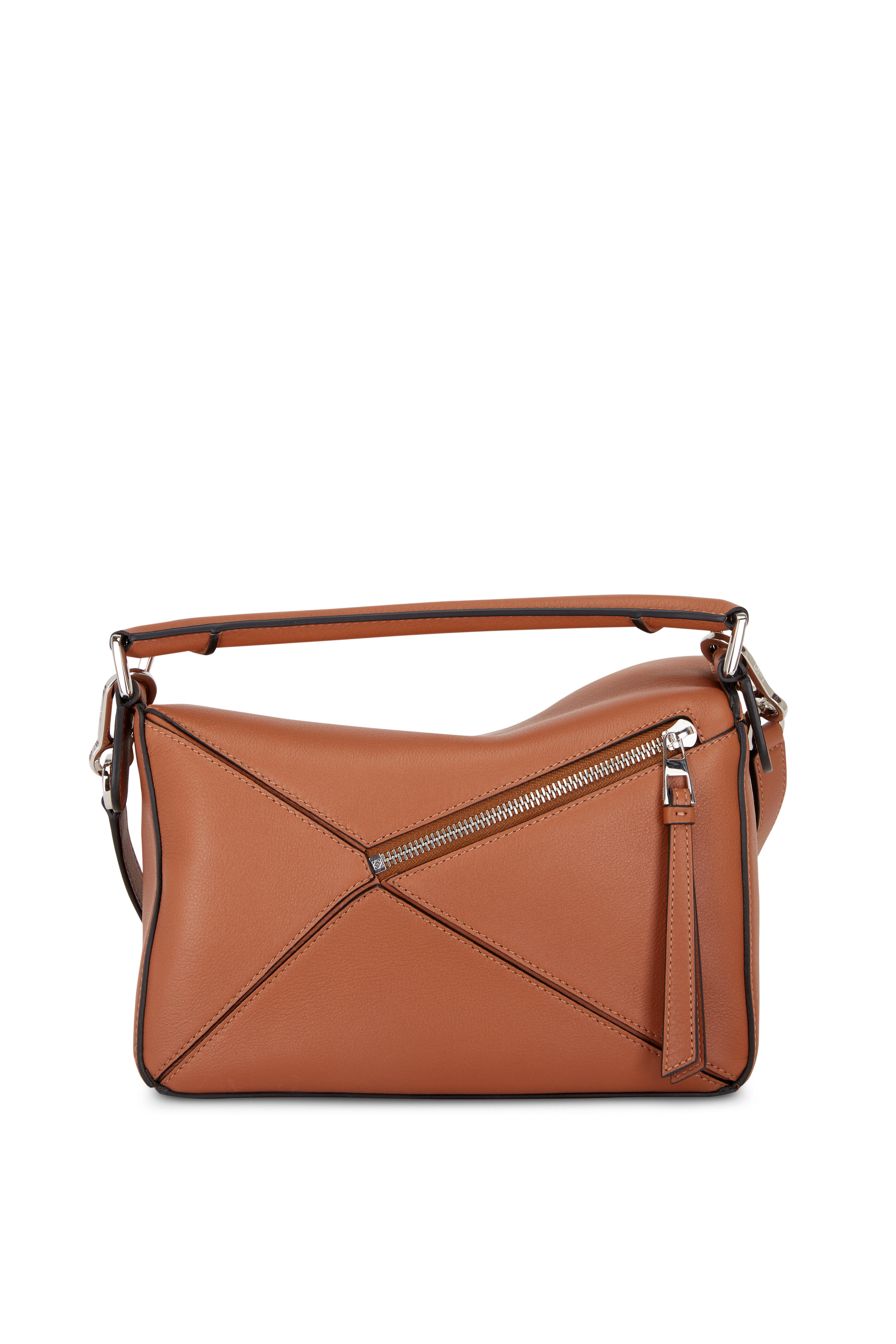 Puzzle Tan Leather Small Top Handle Bag
