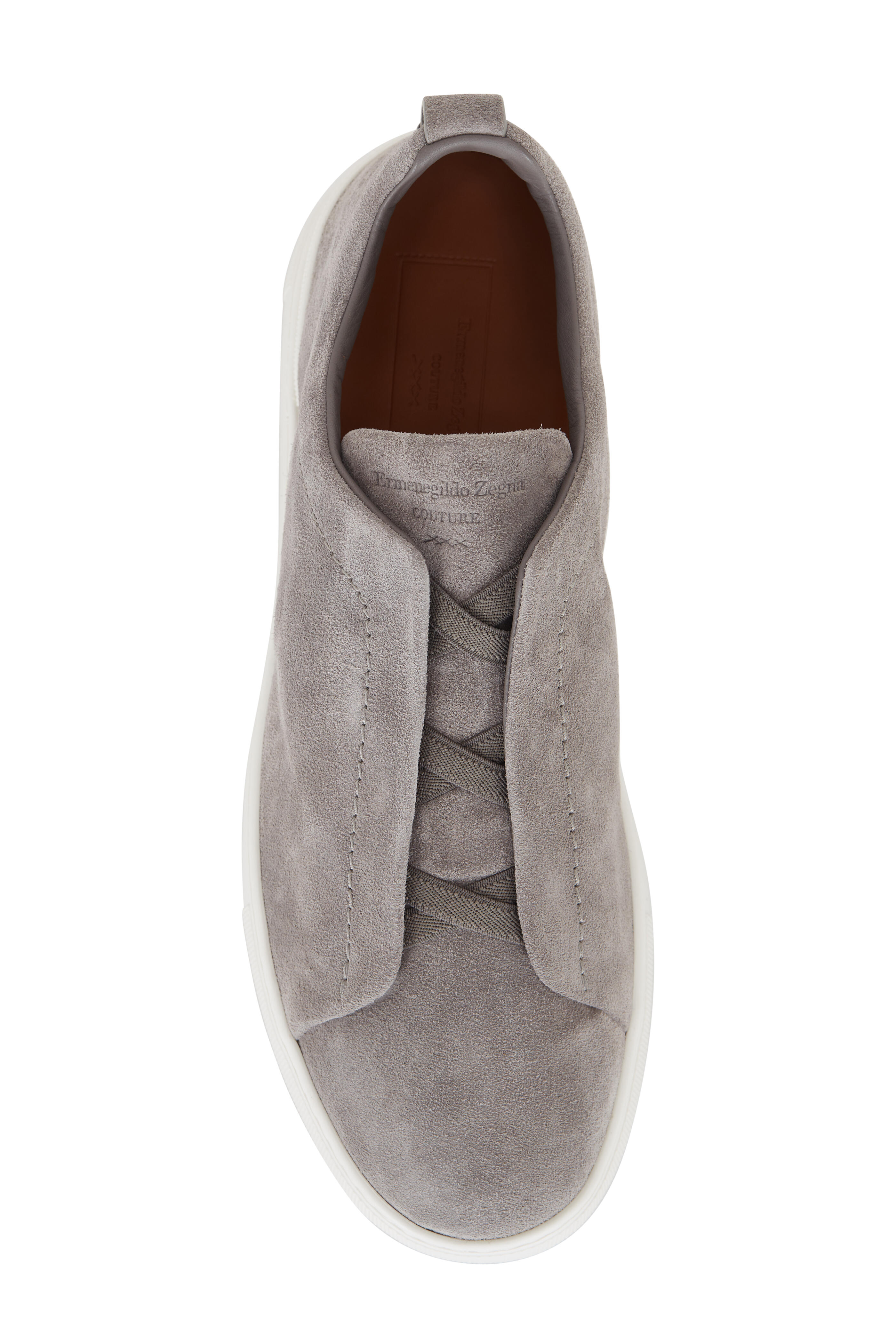 Suede upper. Round cap-toe. Elastic criss-cross straps. Leather lining, cushioned insole. Rubber sole. Made in Italy.