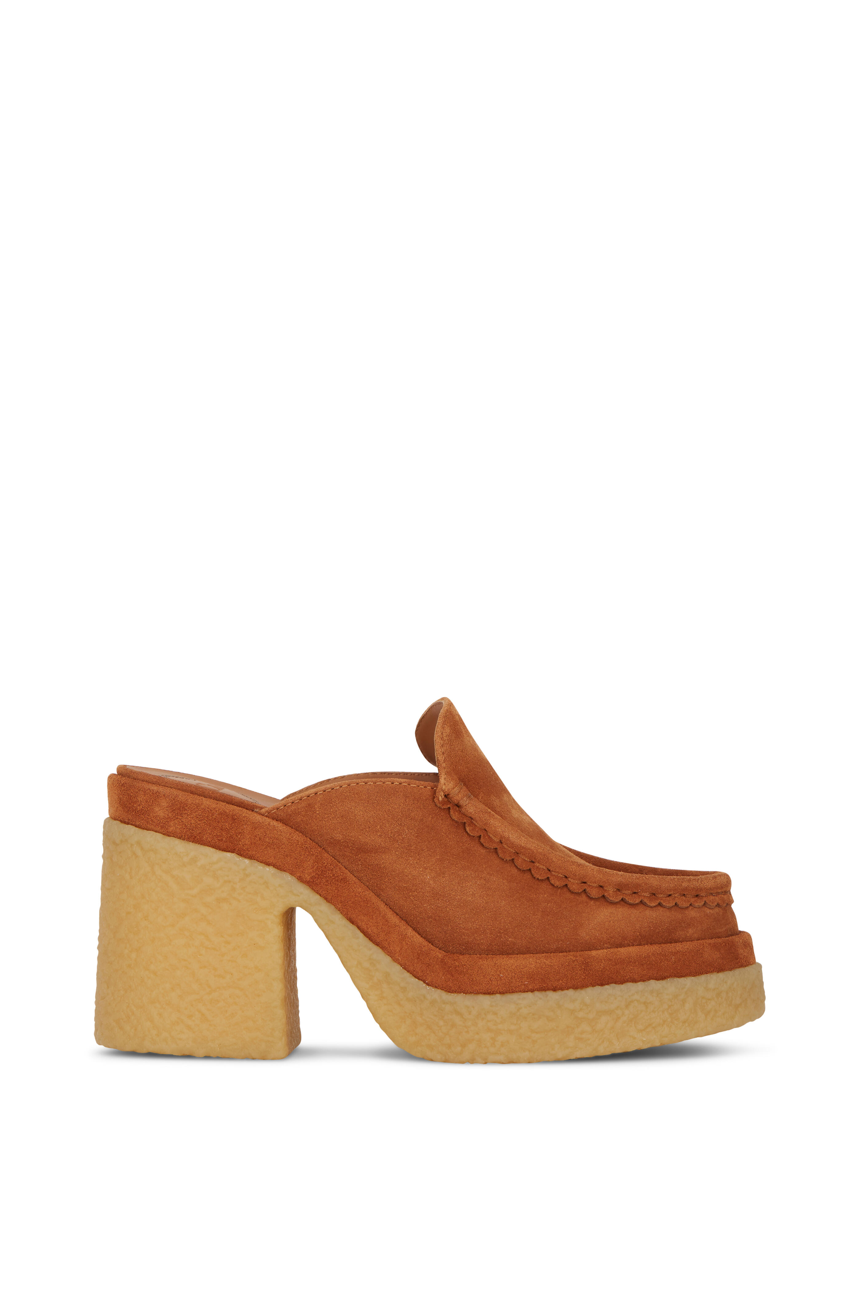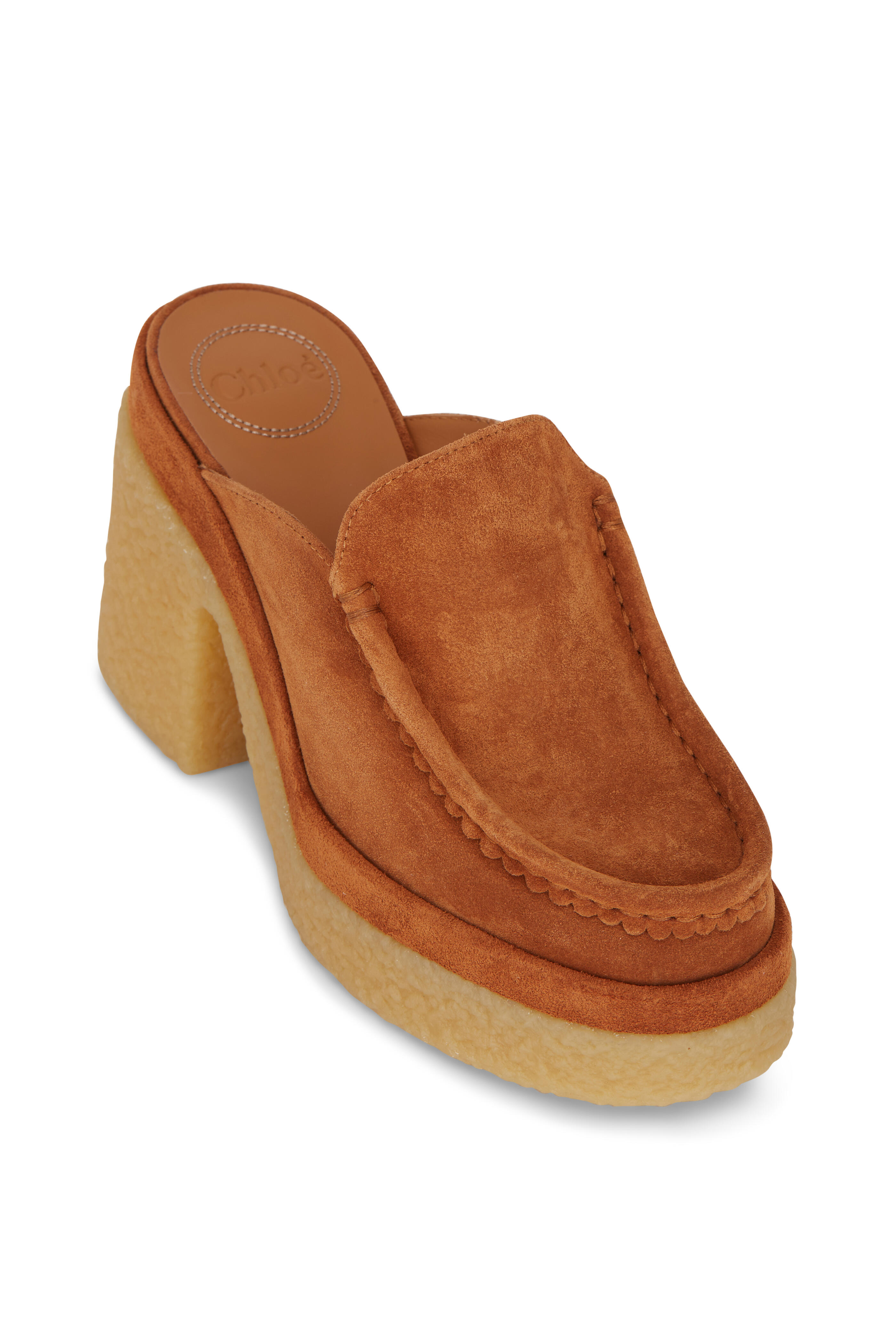 Suede upper. Round toe. Slip on style. Leather lining and insole. Rubber sole. Made in Italy. Heel measurement: 80mm (3.15").