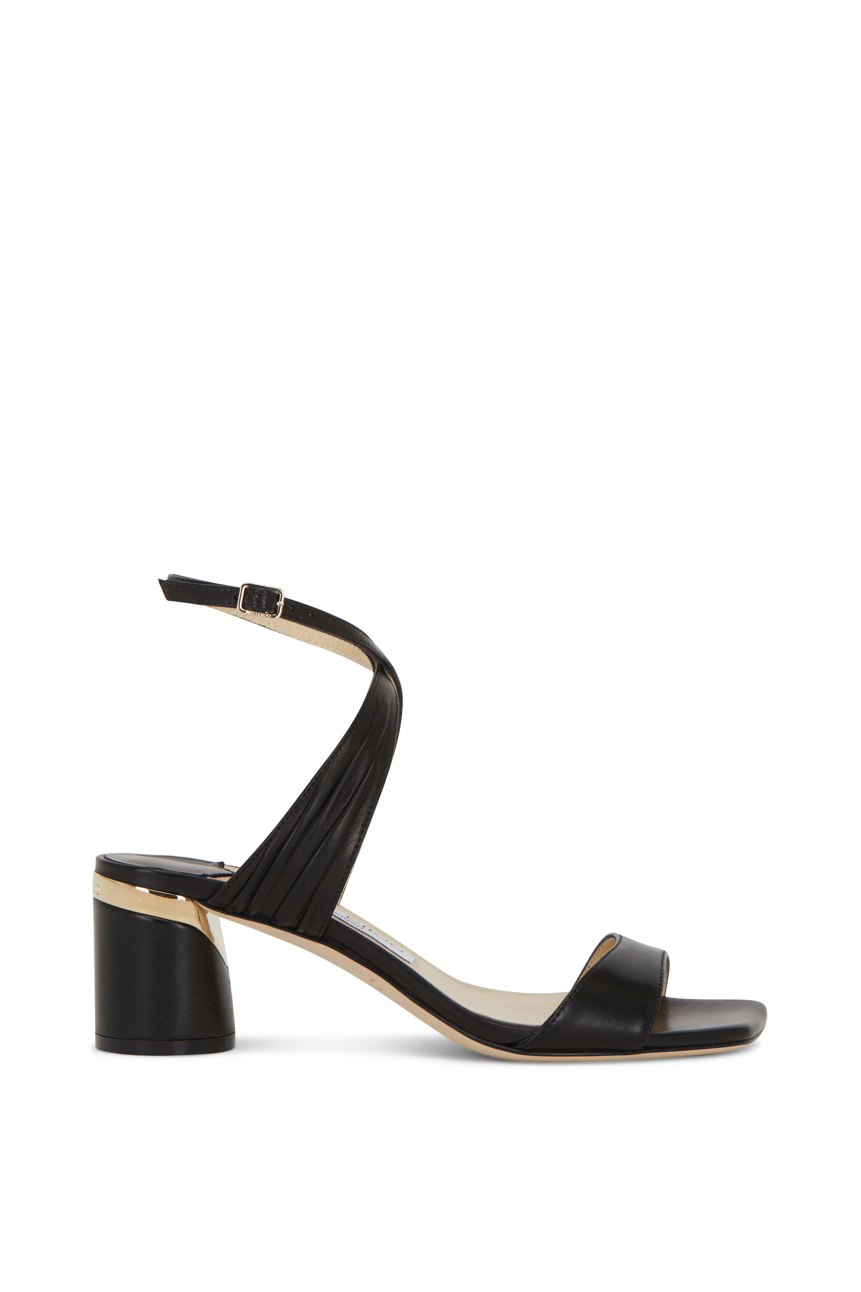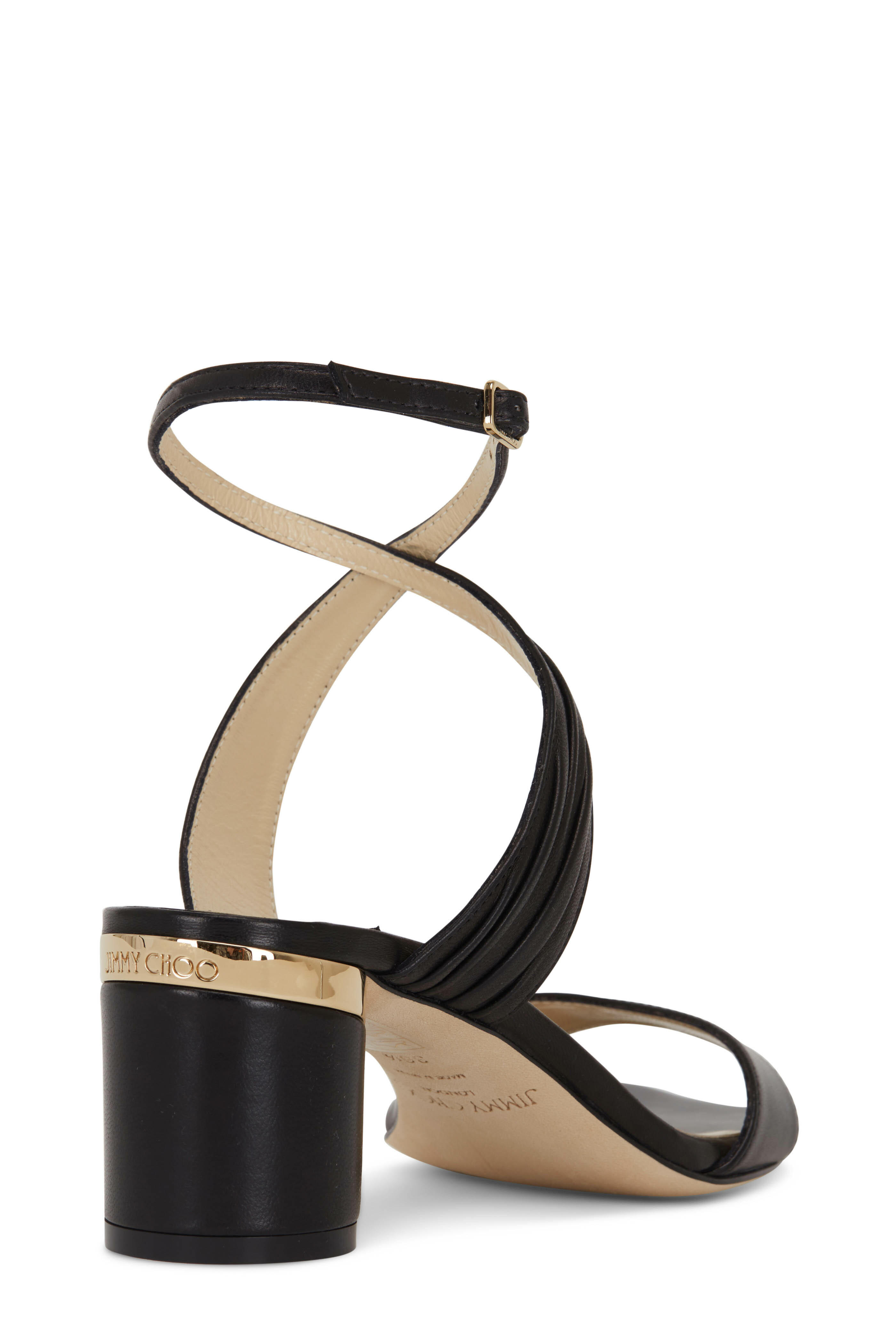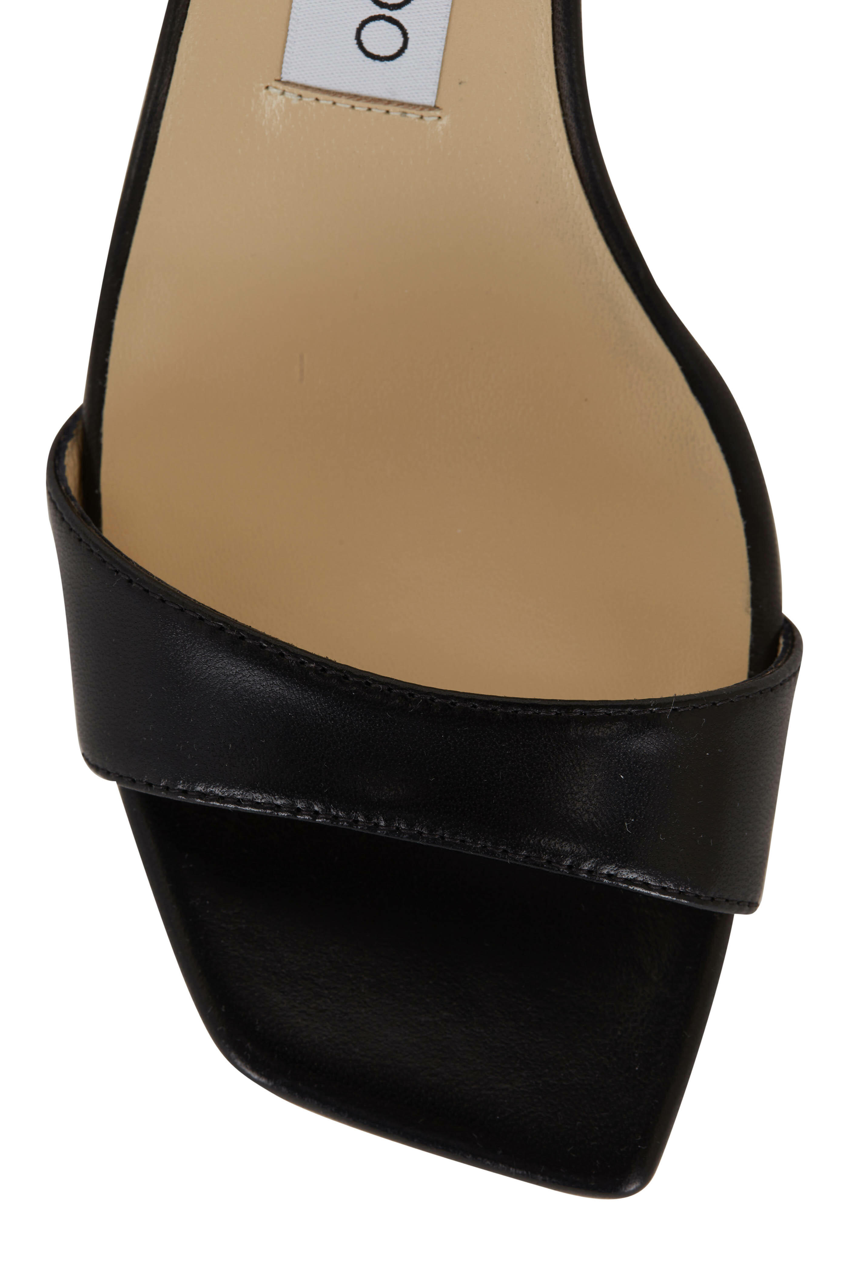 Jago Black Leather Ankle Strap Sandal, 60mm