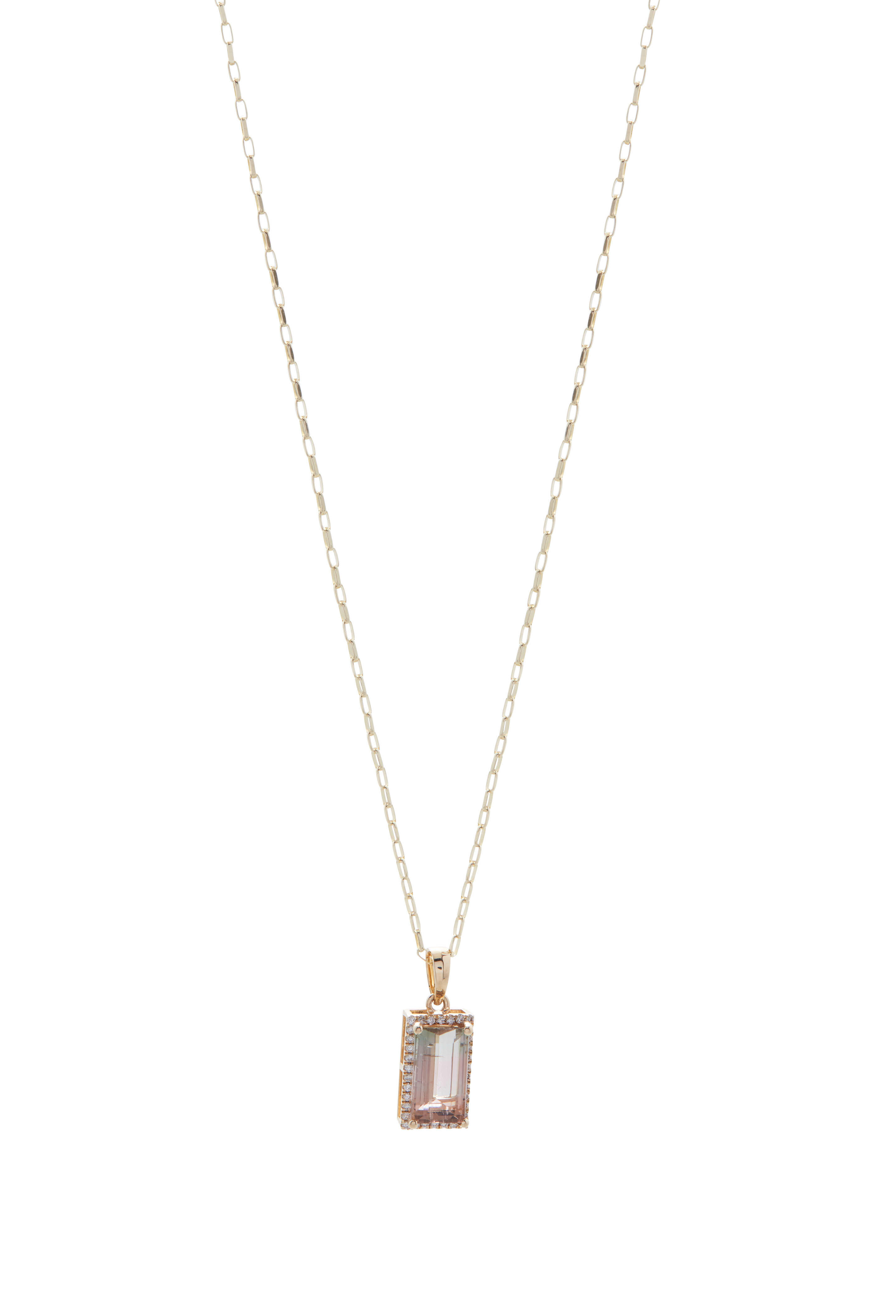 Yellow Gold Watermelon Tourmaline Pendant Necklace