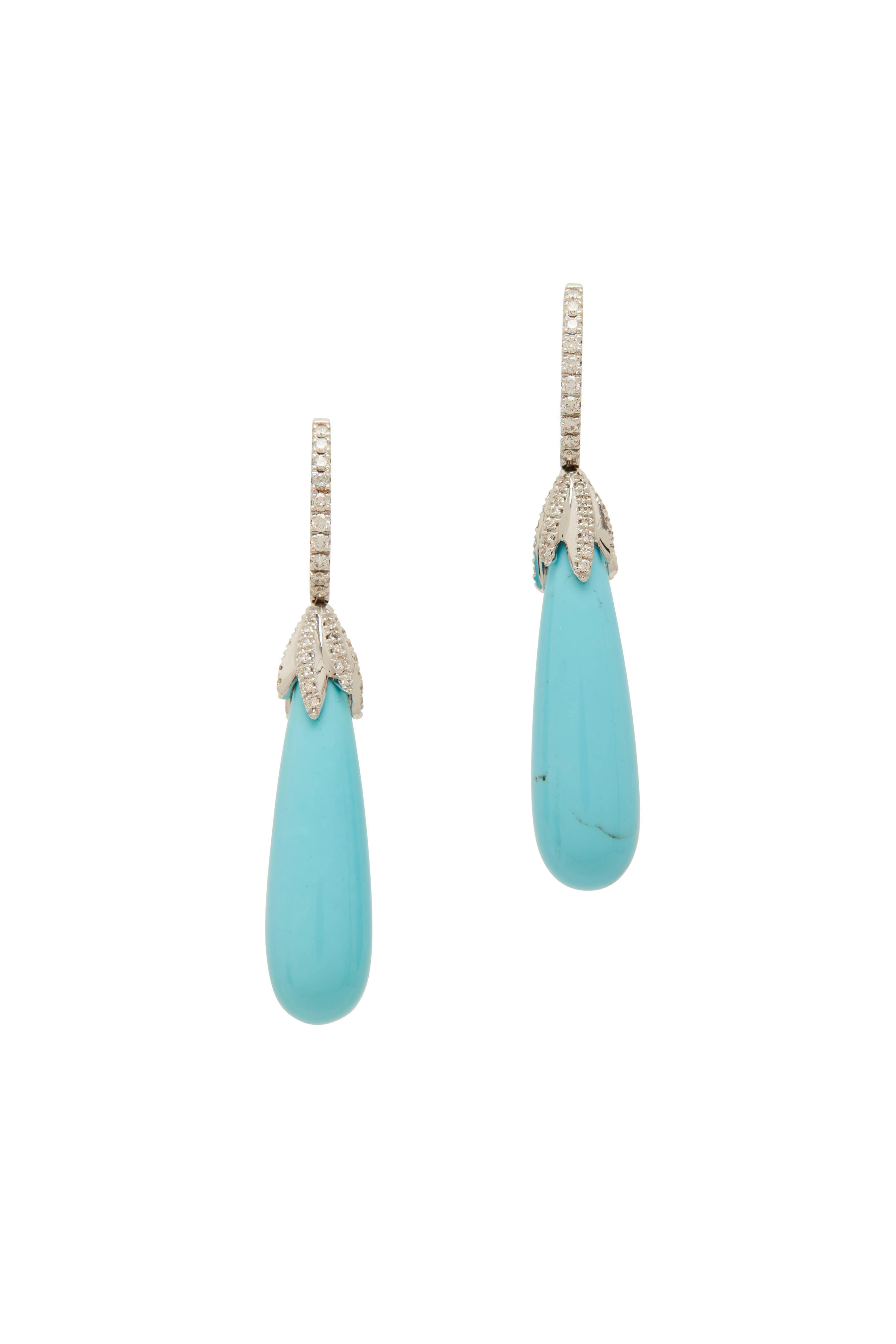 Sleeping Beauty Turquoise & Diamond Drop Earrings