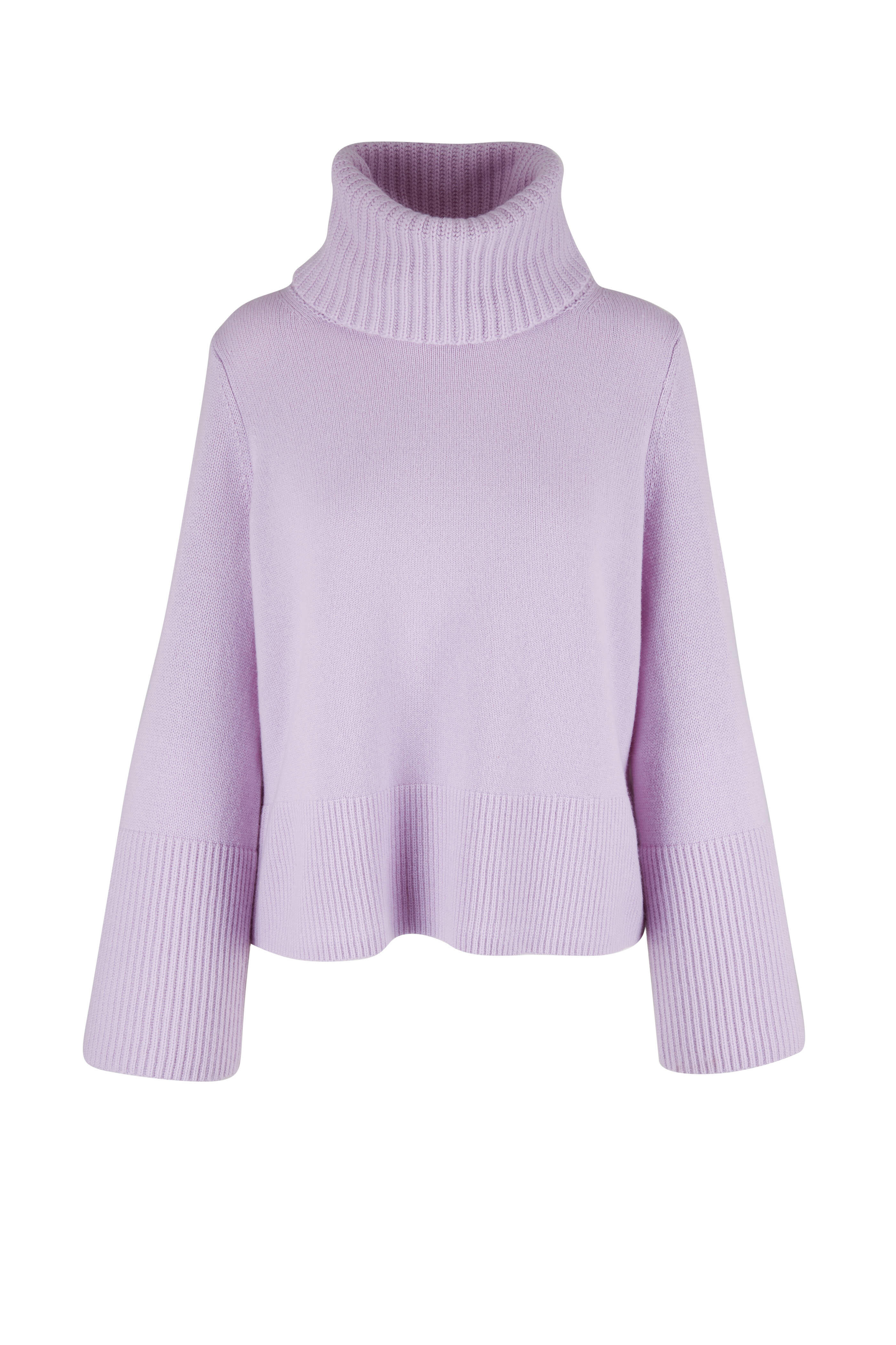 Turtleneck. Dropped shoulders. Ribbed trim. Imported. 70% virgin wool, 30% cashmere. Dry clean.