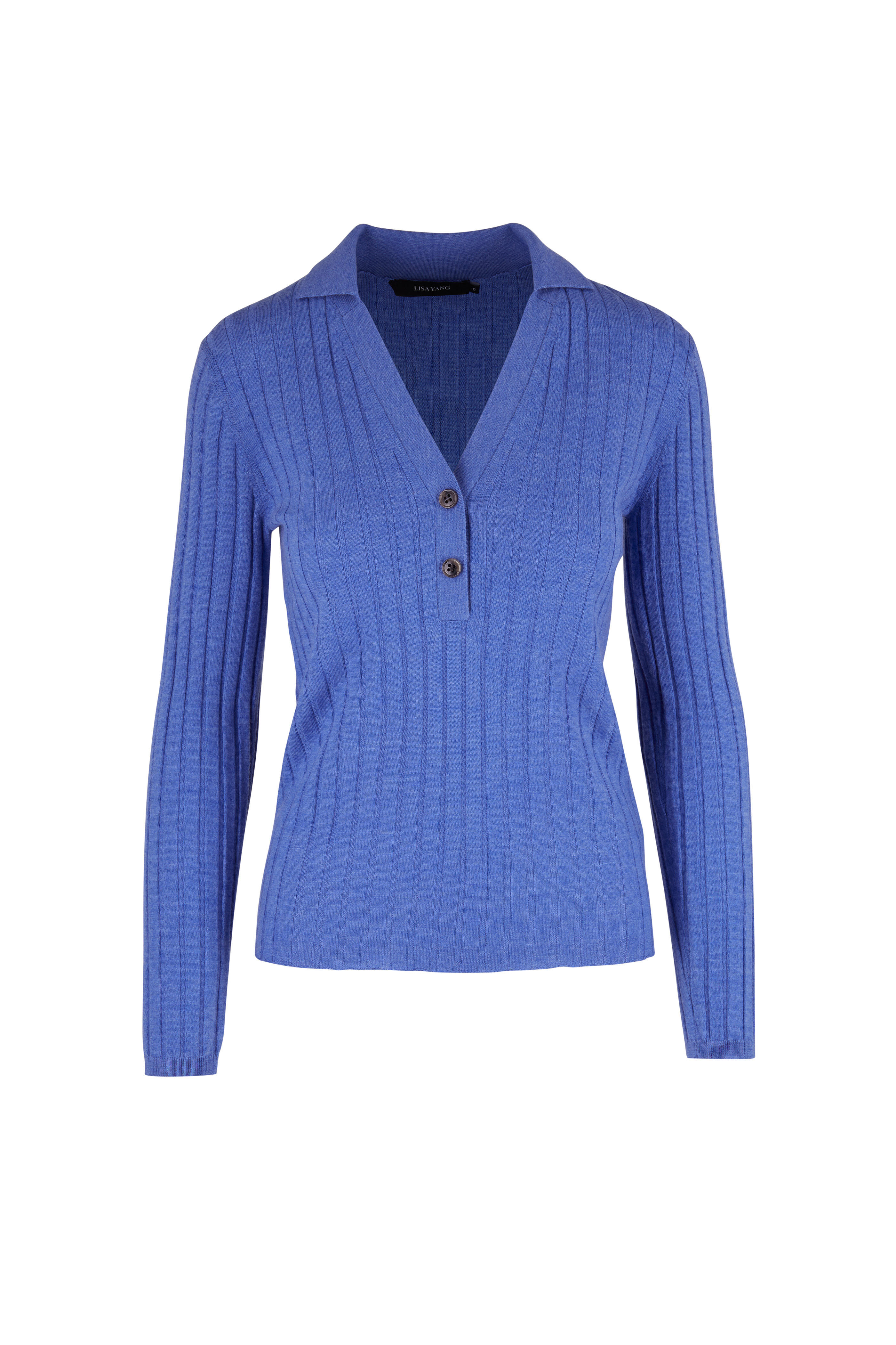 Faya Lake Blue Ribbed Cashmere Henley