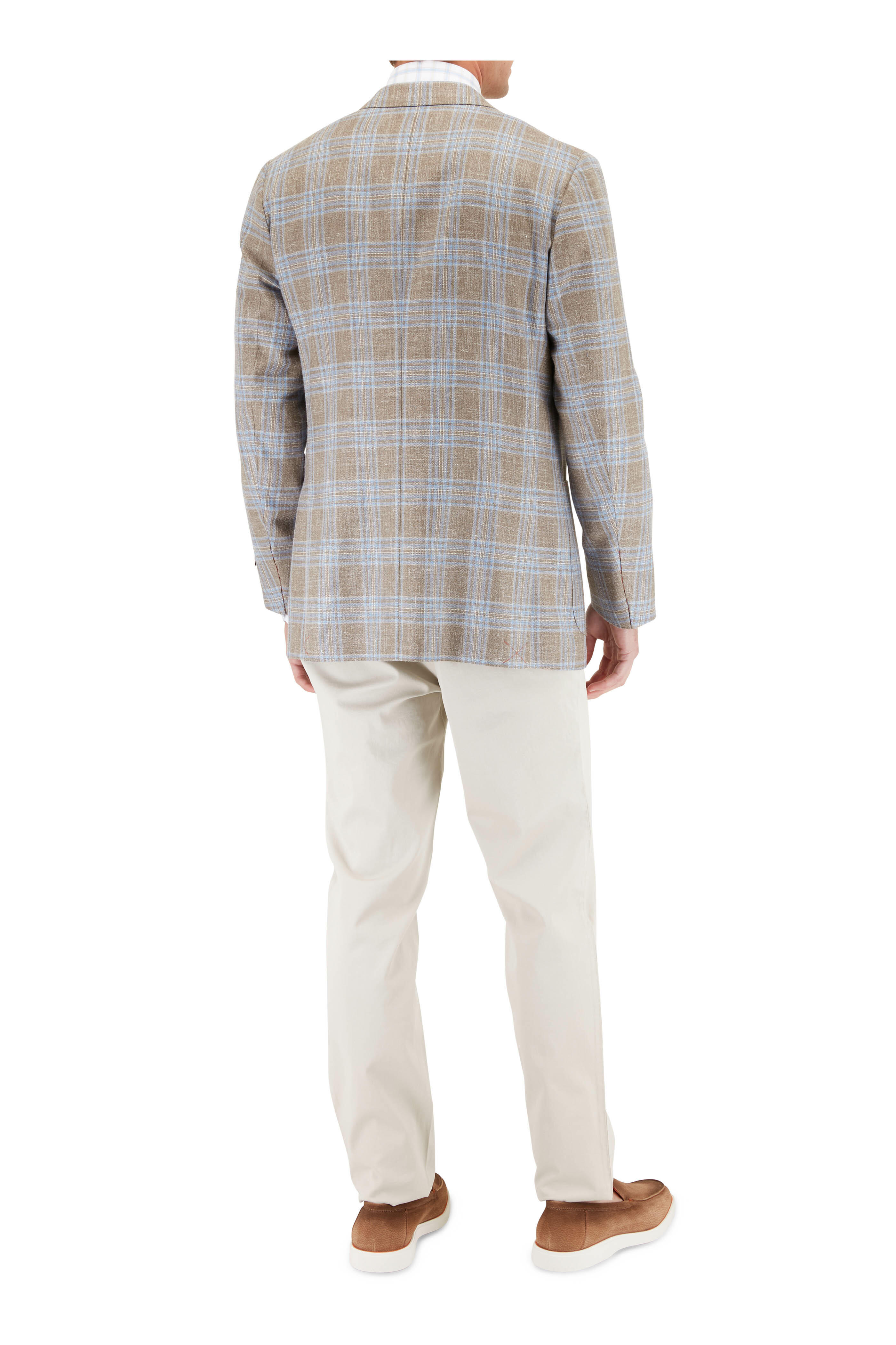 Taupe & Blue Multi Plaid Hopsack Sportcoat