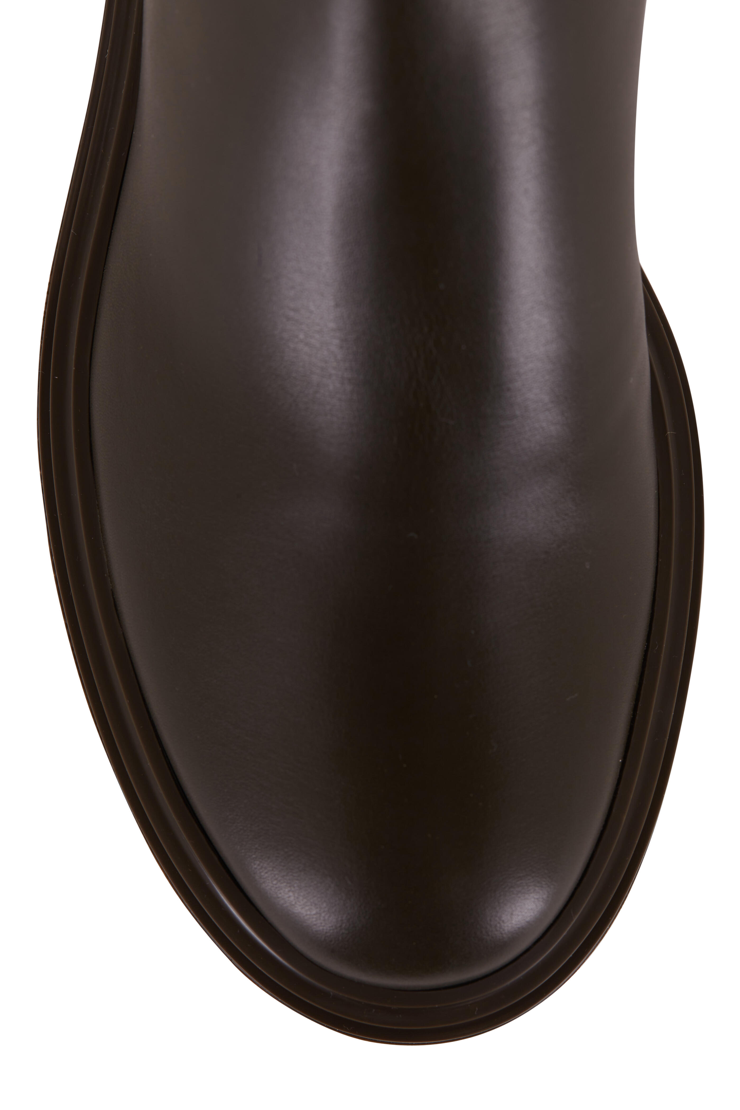 Leather upper. Round toe. Pull on style. Front and back pull tabs. Double side gores. Leather lining and insole. Rubber lug sole. Made in Italy.