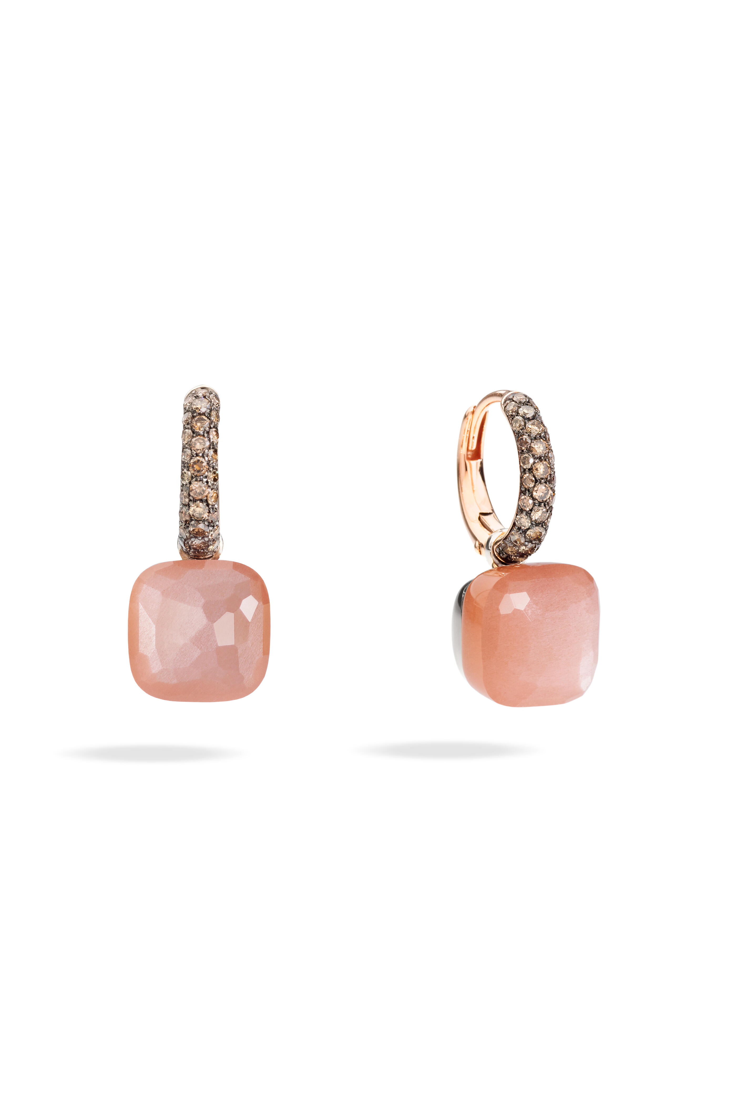 18k rose gold. Orange moonstone. Brown diamond.