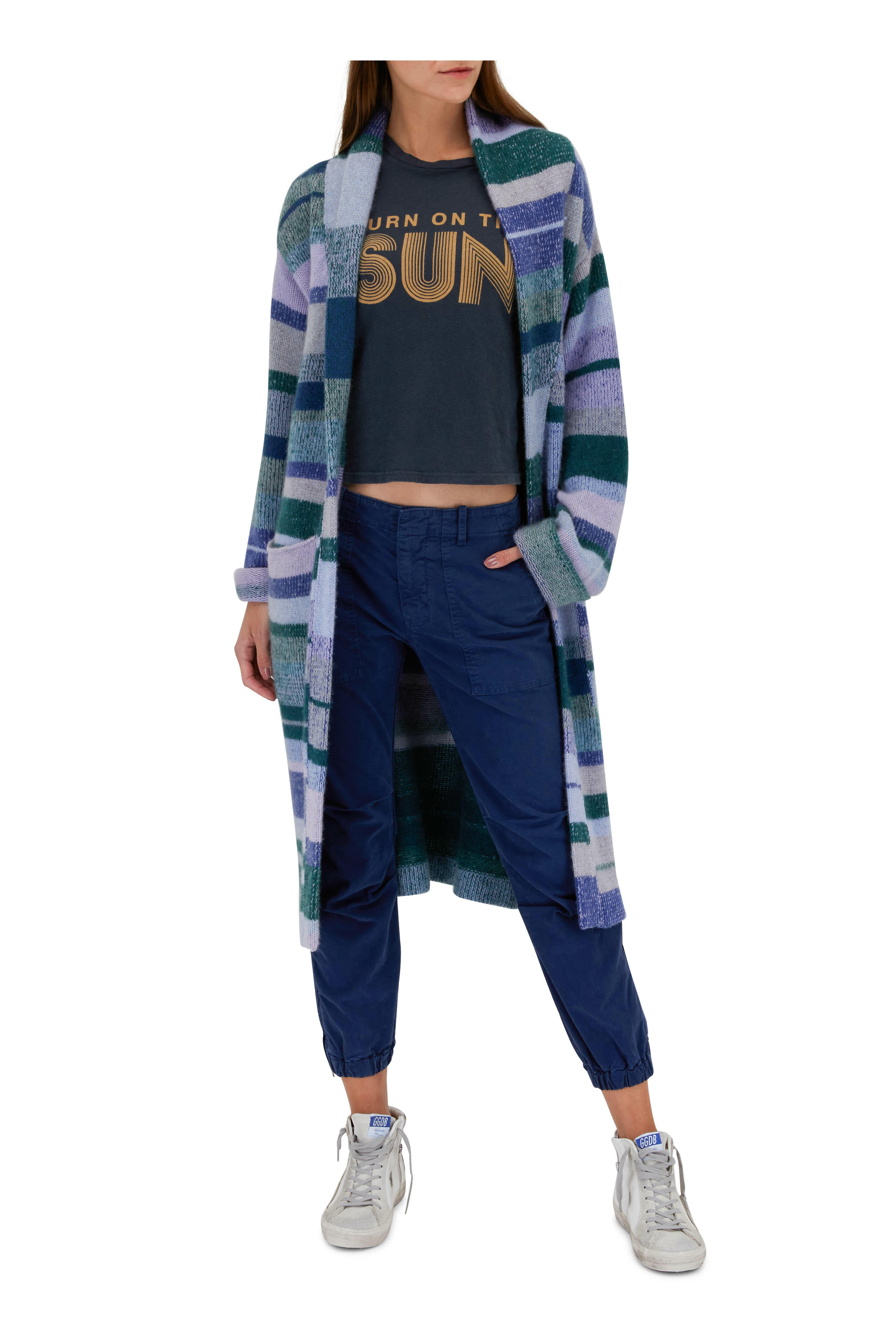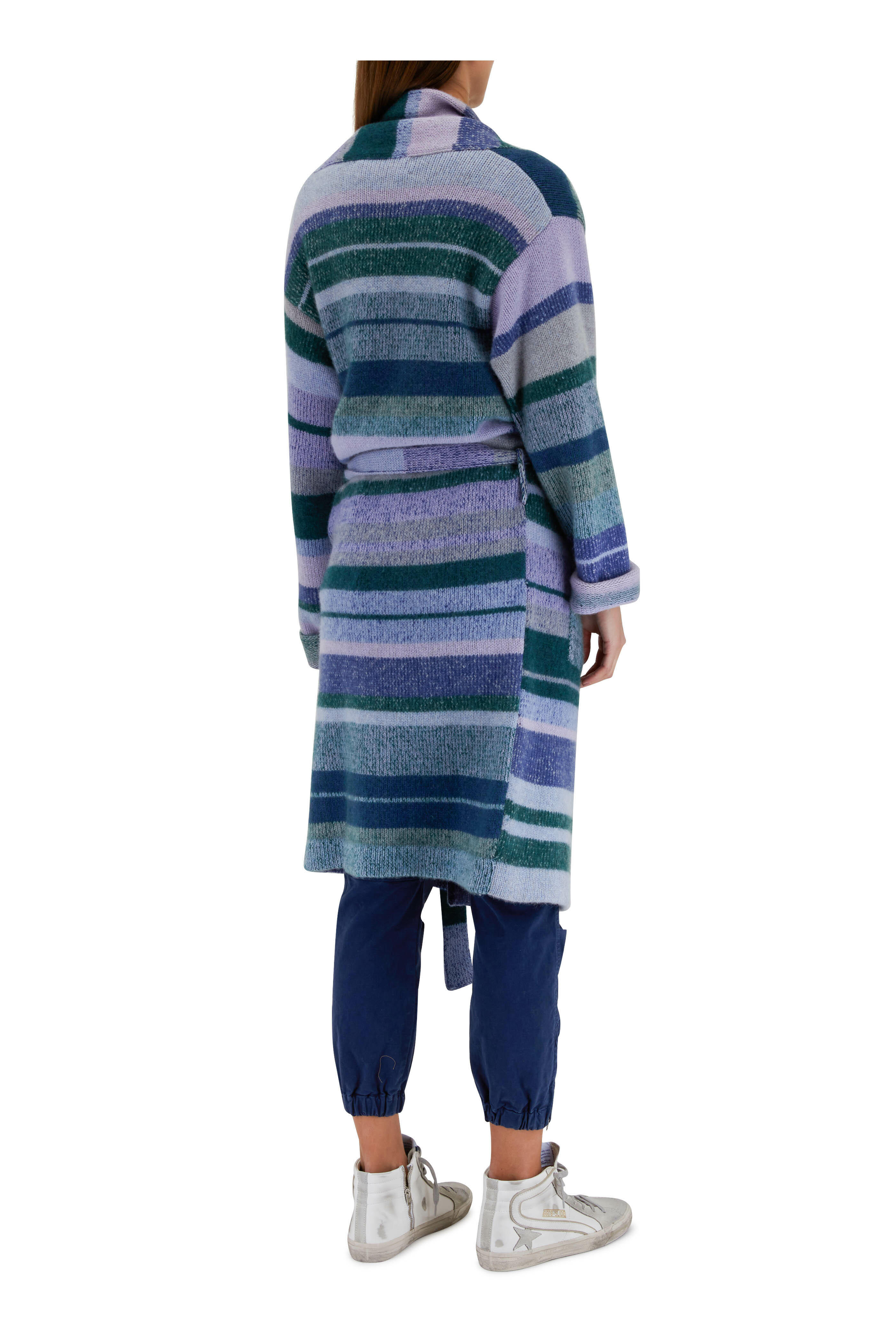 Lilac & Blue Multi Stripe Cashmere Belted Cardigan