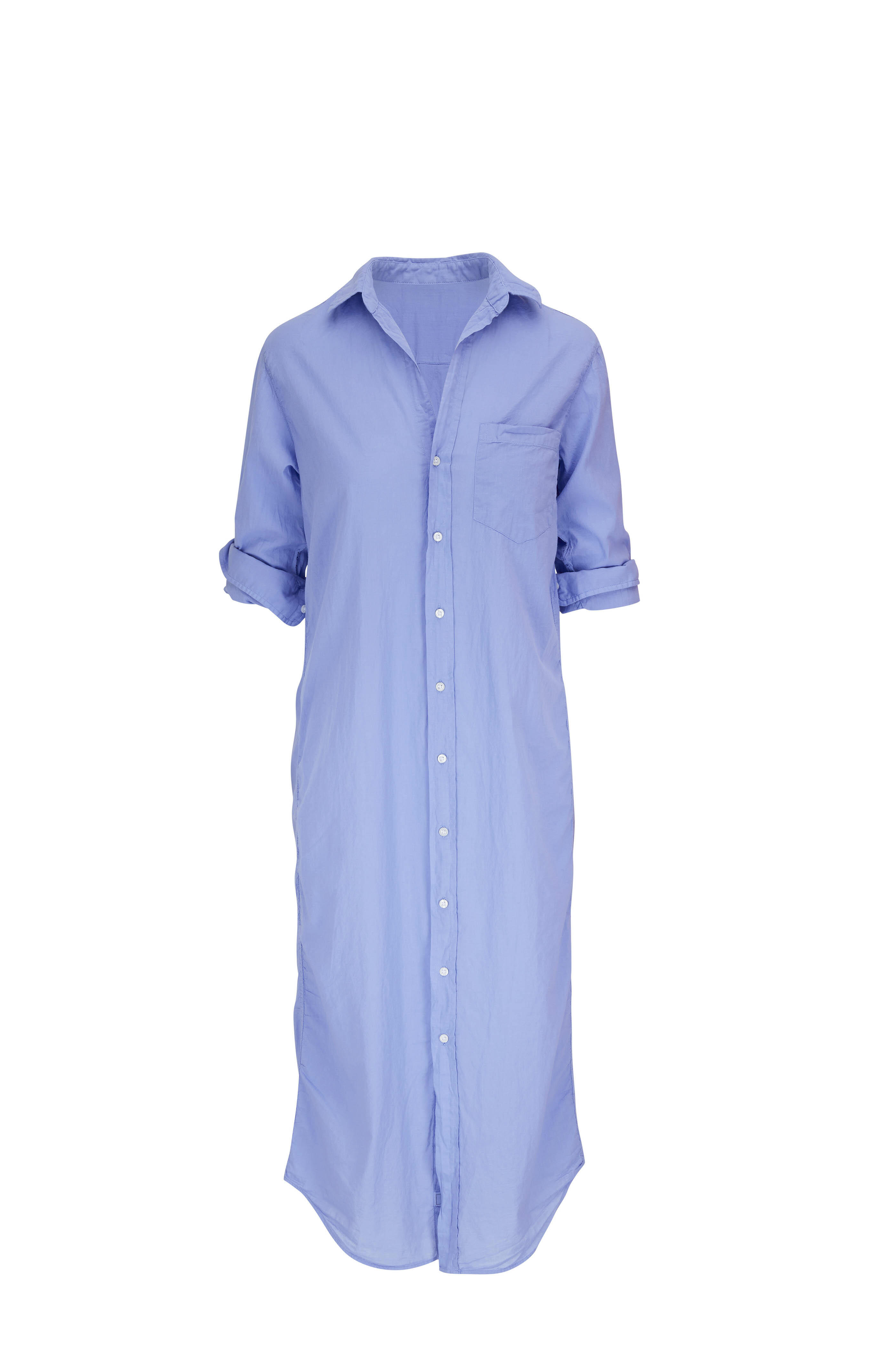 Spread collar. Front button placket. Single button barrel cuffs. Chest patch pocket. Made in USA. Rory is everything we ever wanted in a full-length, button-up dress. A long, lean, and lovely silhouette elongates your torso and feels extra-airy, while Rory's statement chest pocket and easy-to-roll sleeves exude breezy California chic.. Full-length button-up dress with a fairly relaxed fit. 100% cotton. Machine wash.