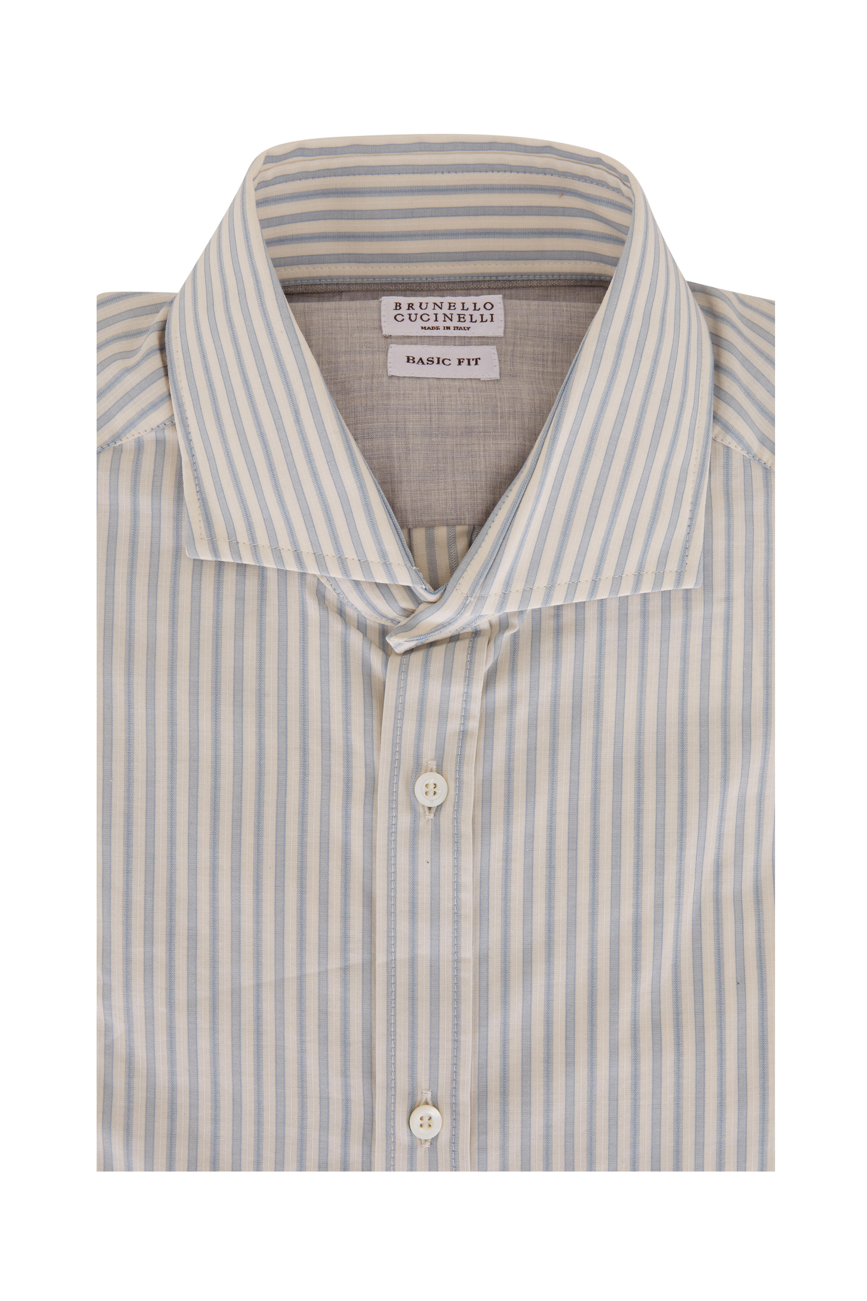 Spread collar. Two button squared cuffs. Made in Italy. Basic fit. 100% cotton. Hand wash.