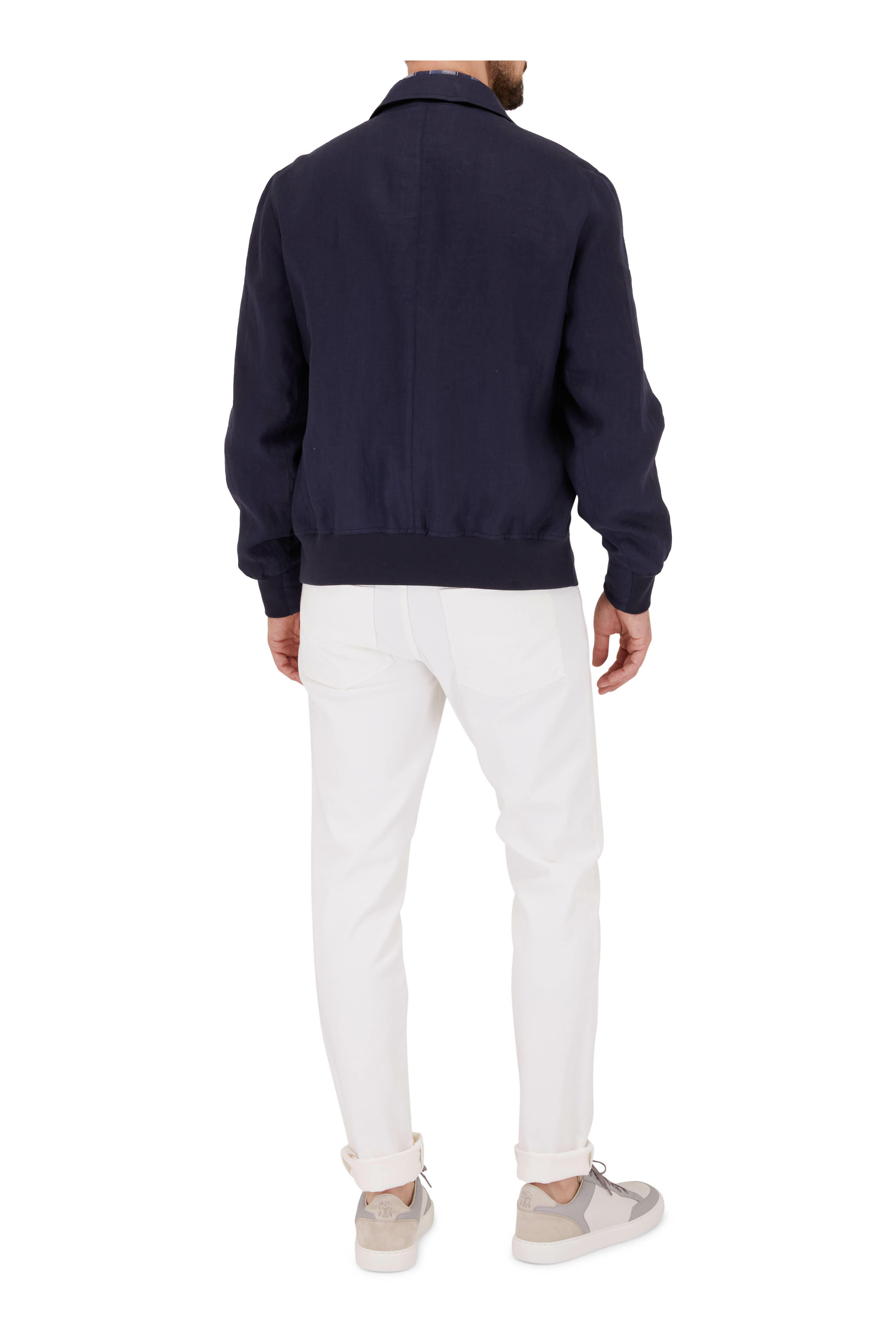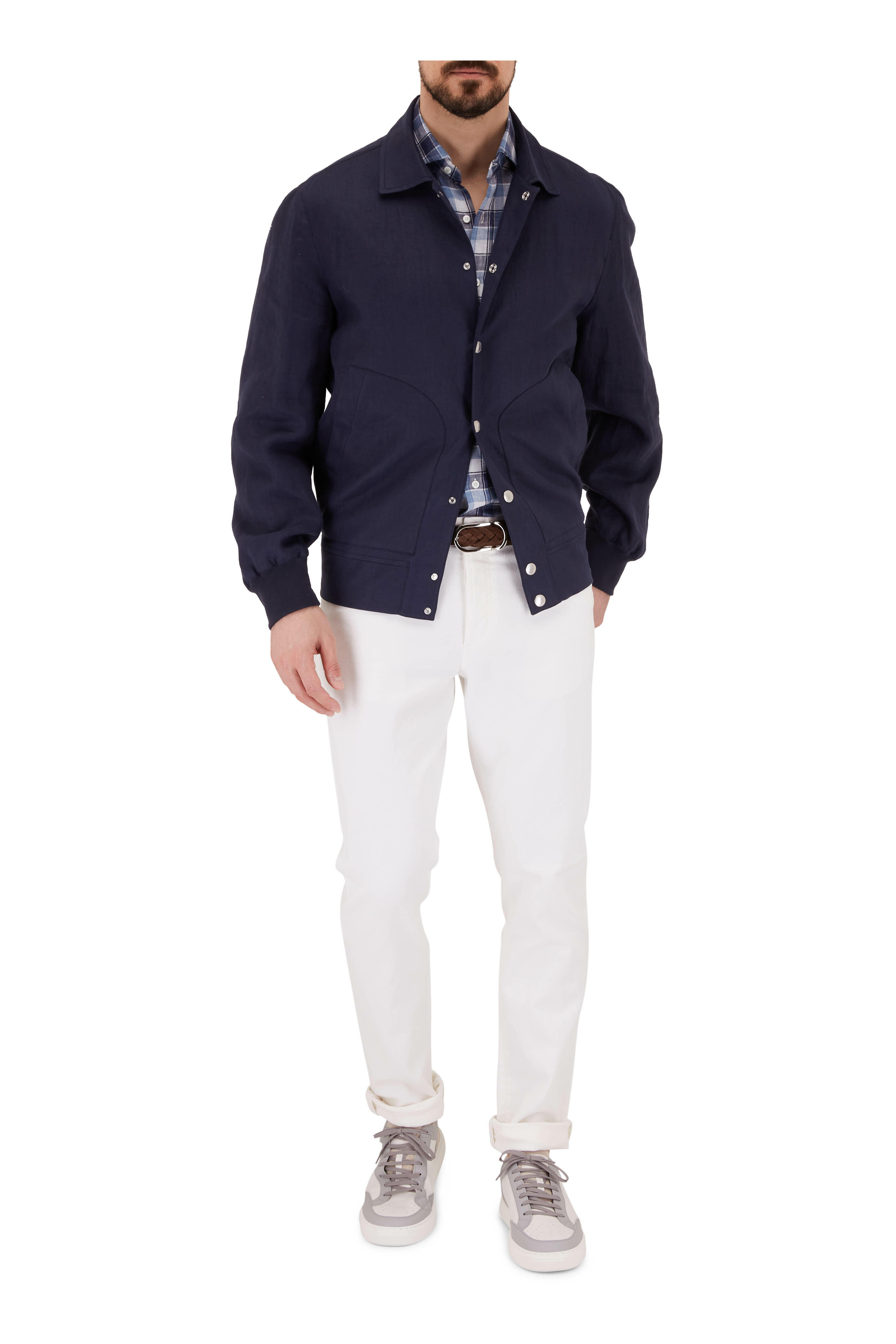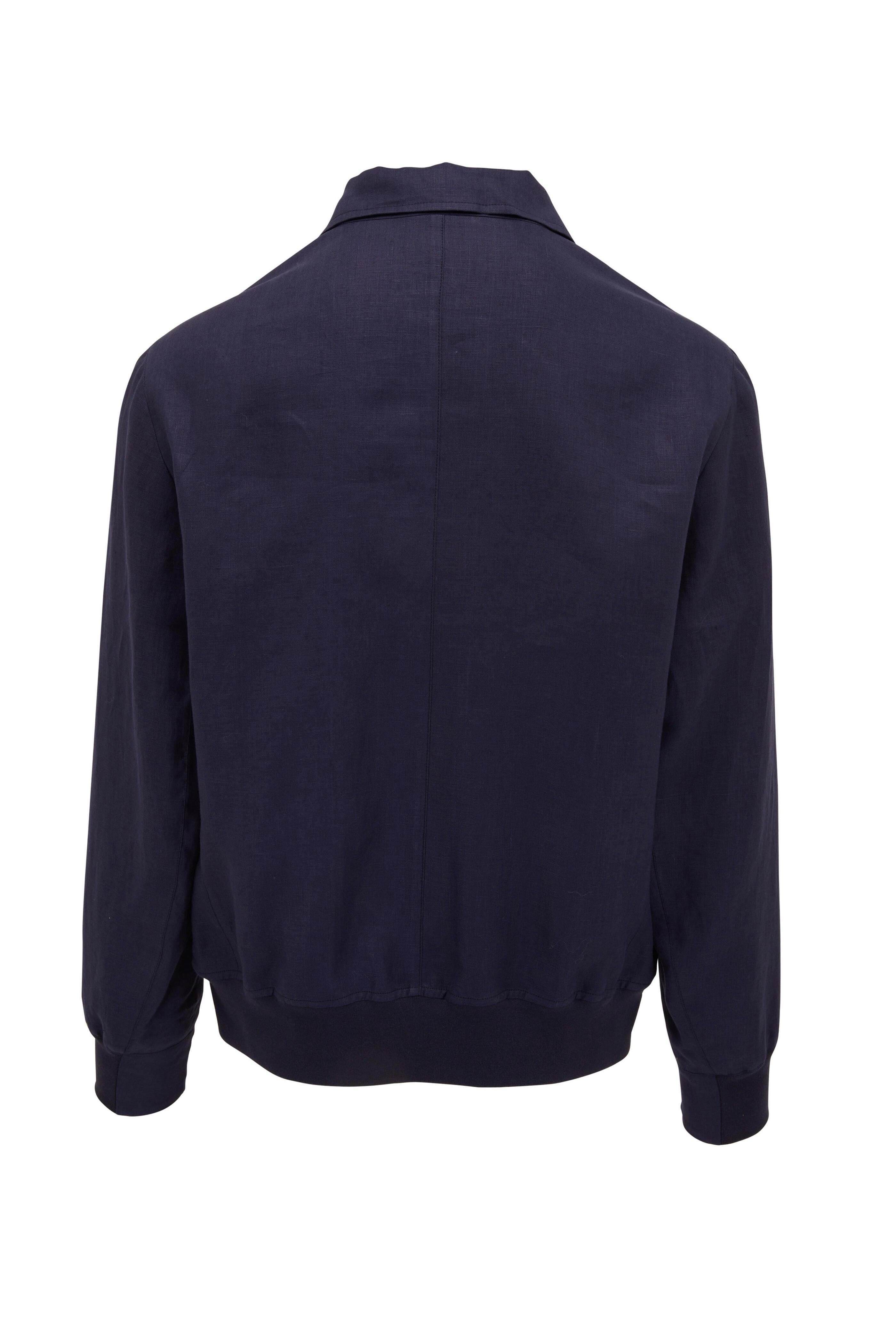 Navy Linen Snap Front Bomber