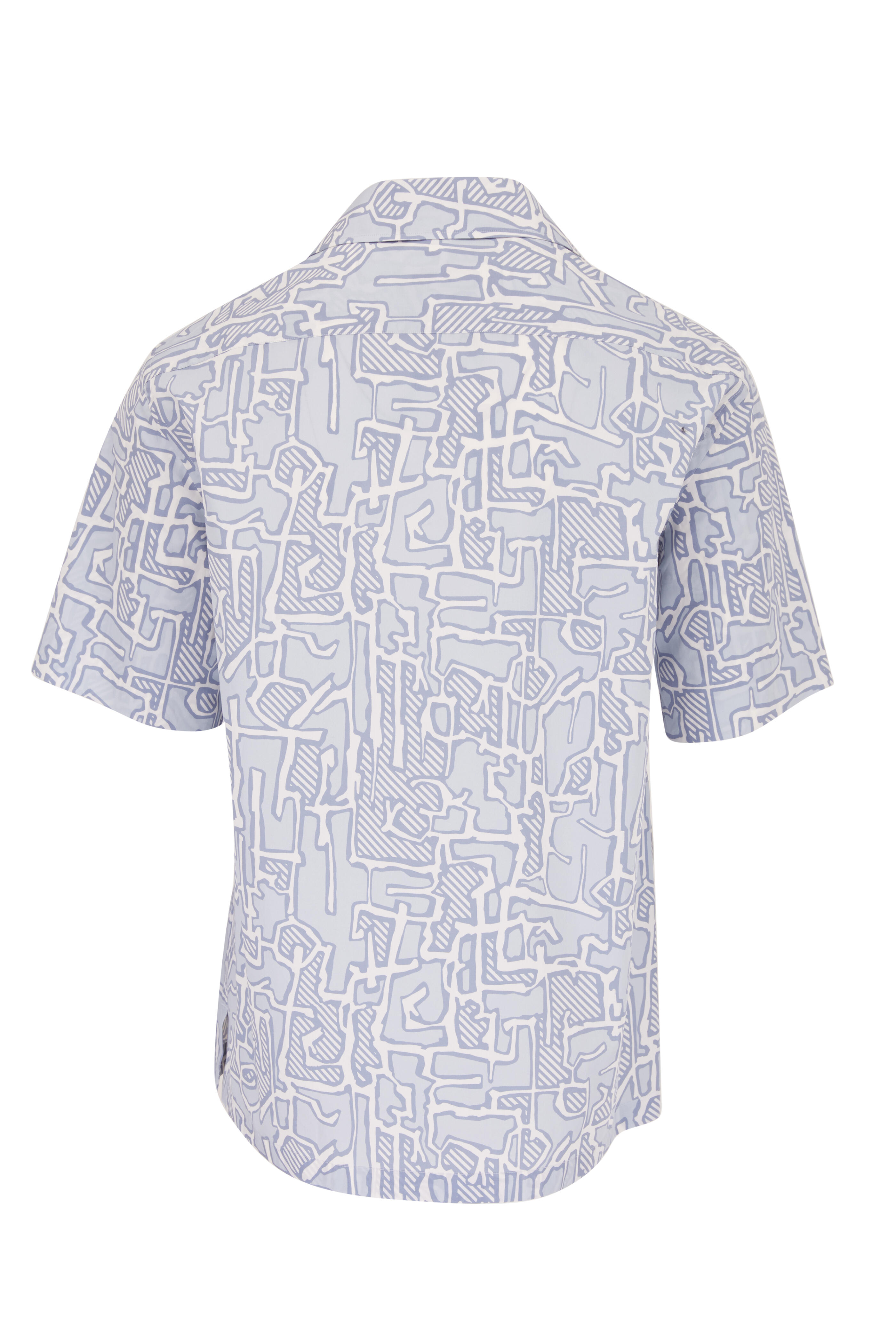 Camp collar. Button placket. Vented hem. Imported. 100% cotton. Machine wash.
