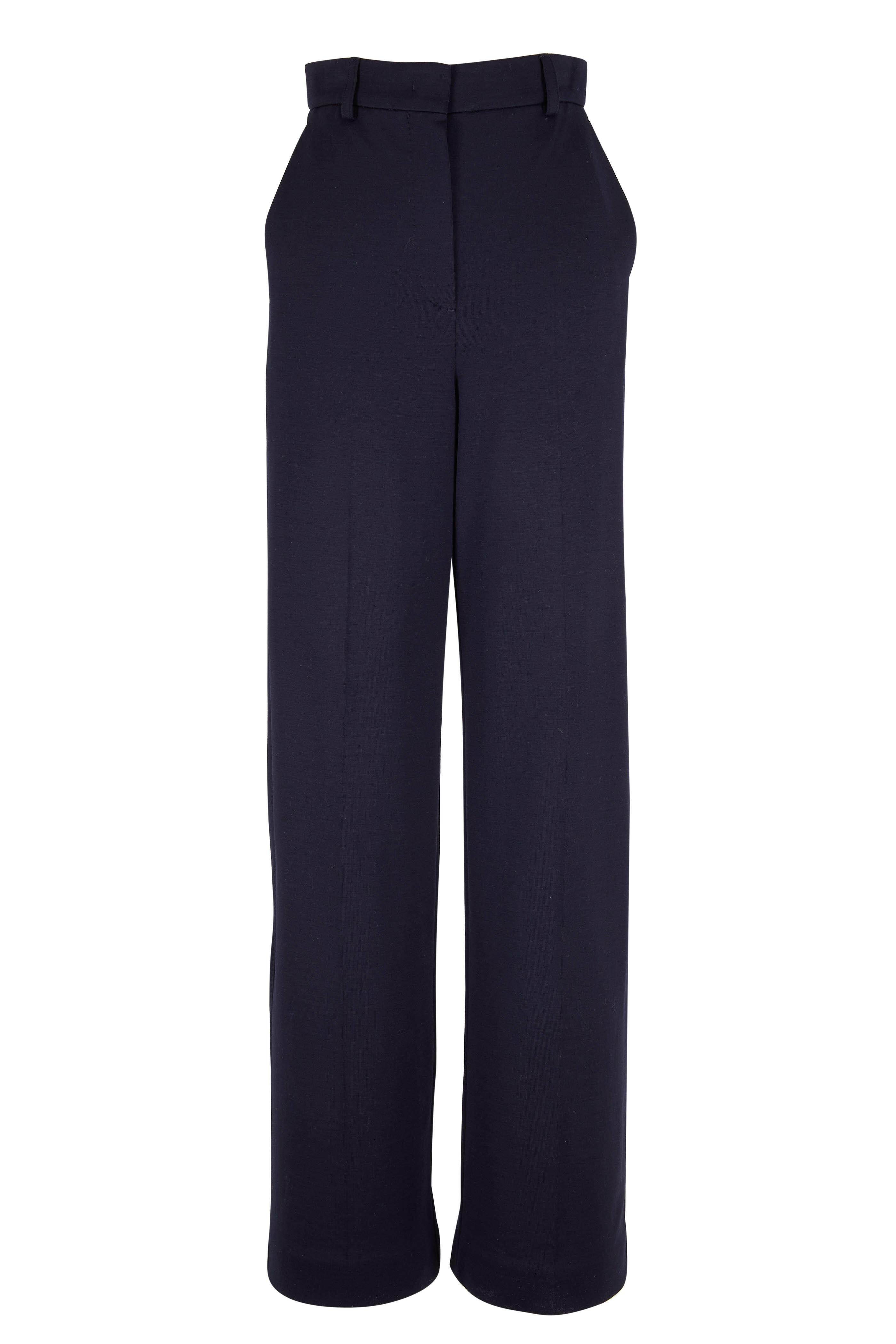 Navy Cotton & Wool Stretch Wide Leg Pant