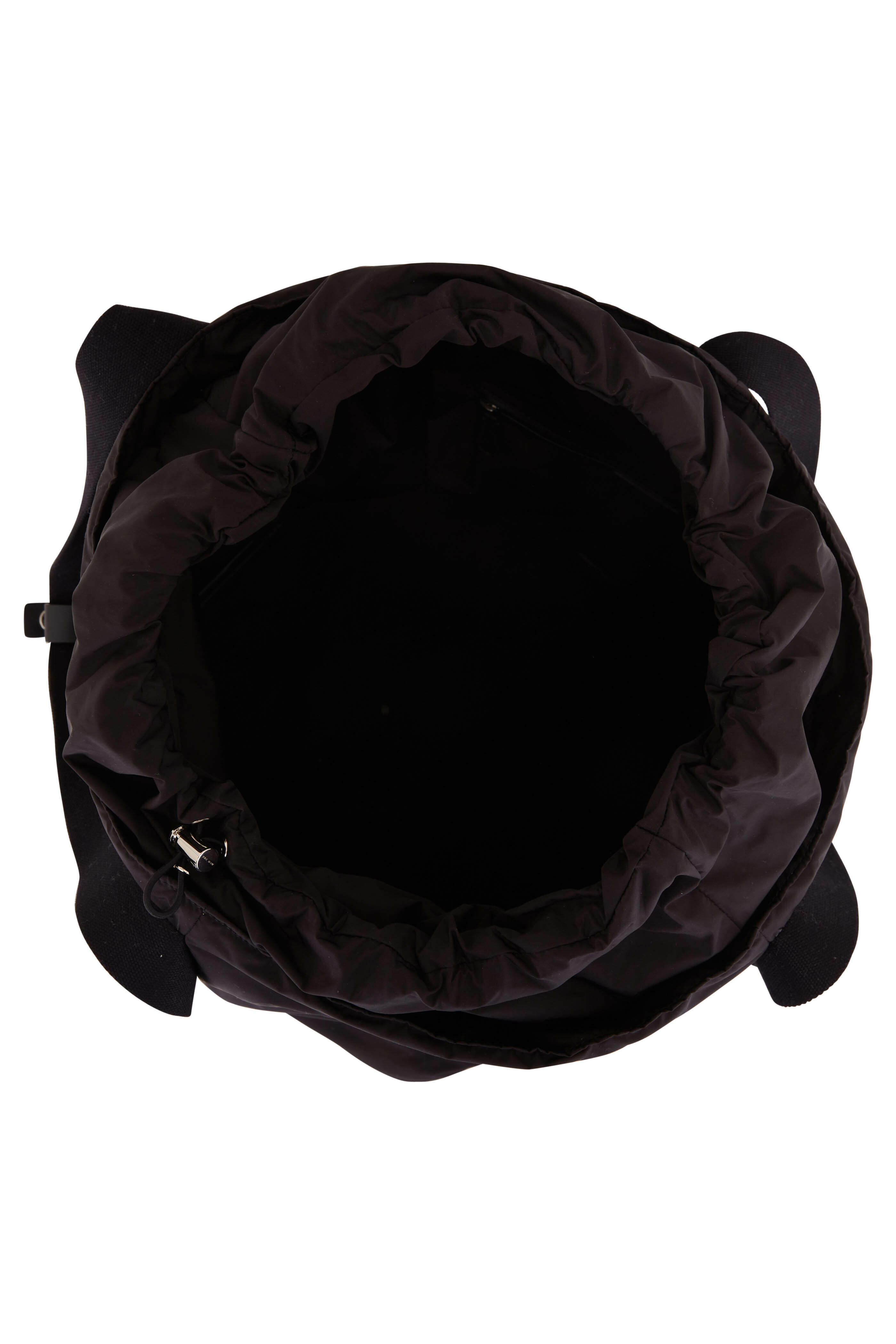 Nylon. Dual woven top handles. Top elasticized drawcord closure. Interior zip pocket. Made in Italy. Height: 12". Depth: 10.5". Handle drop: approx. 12".