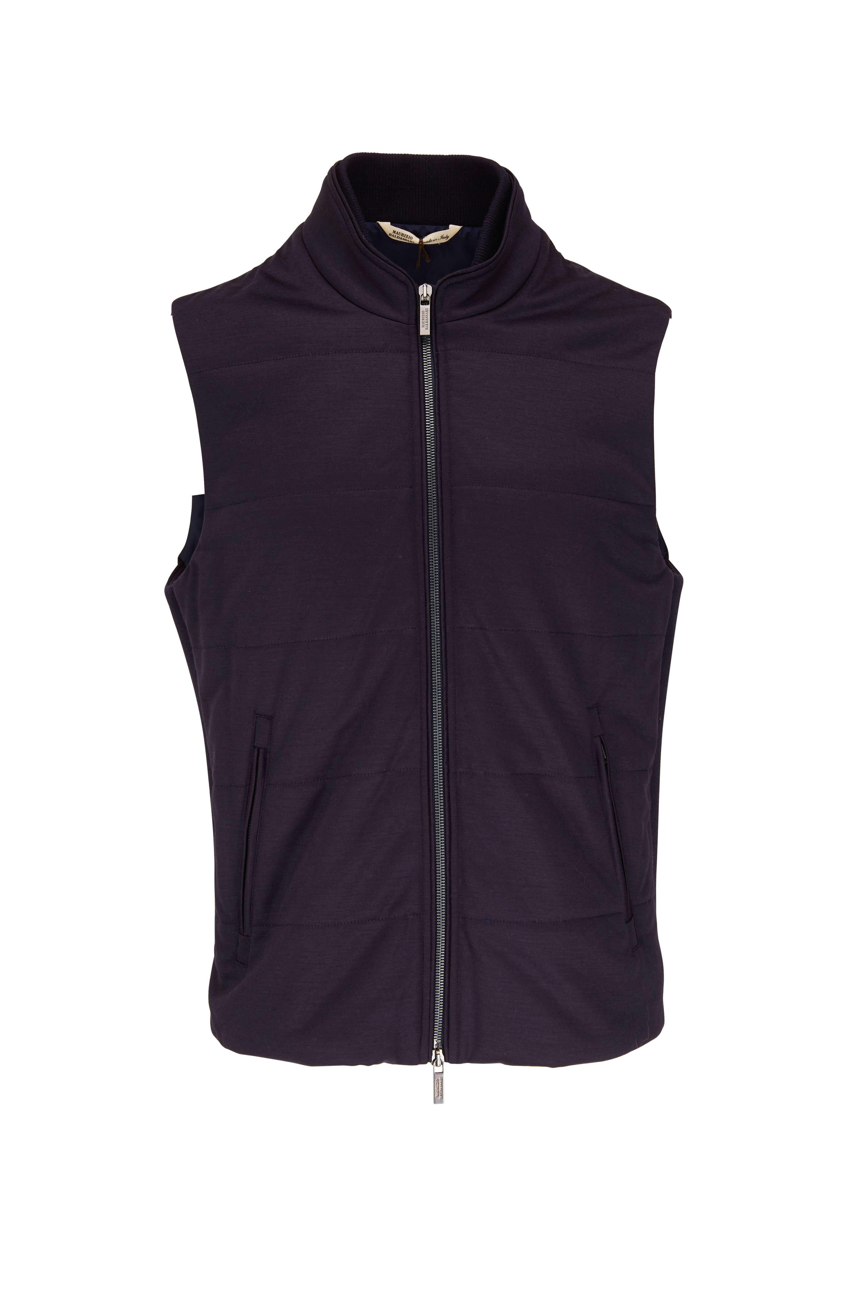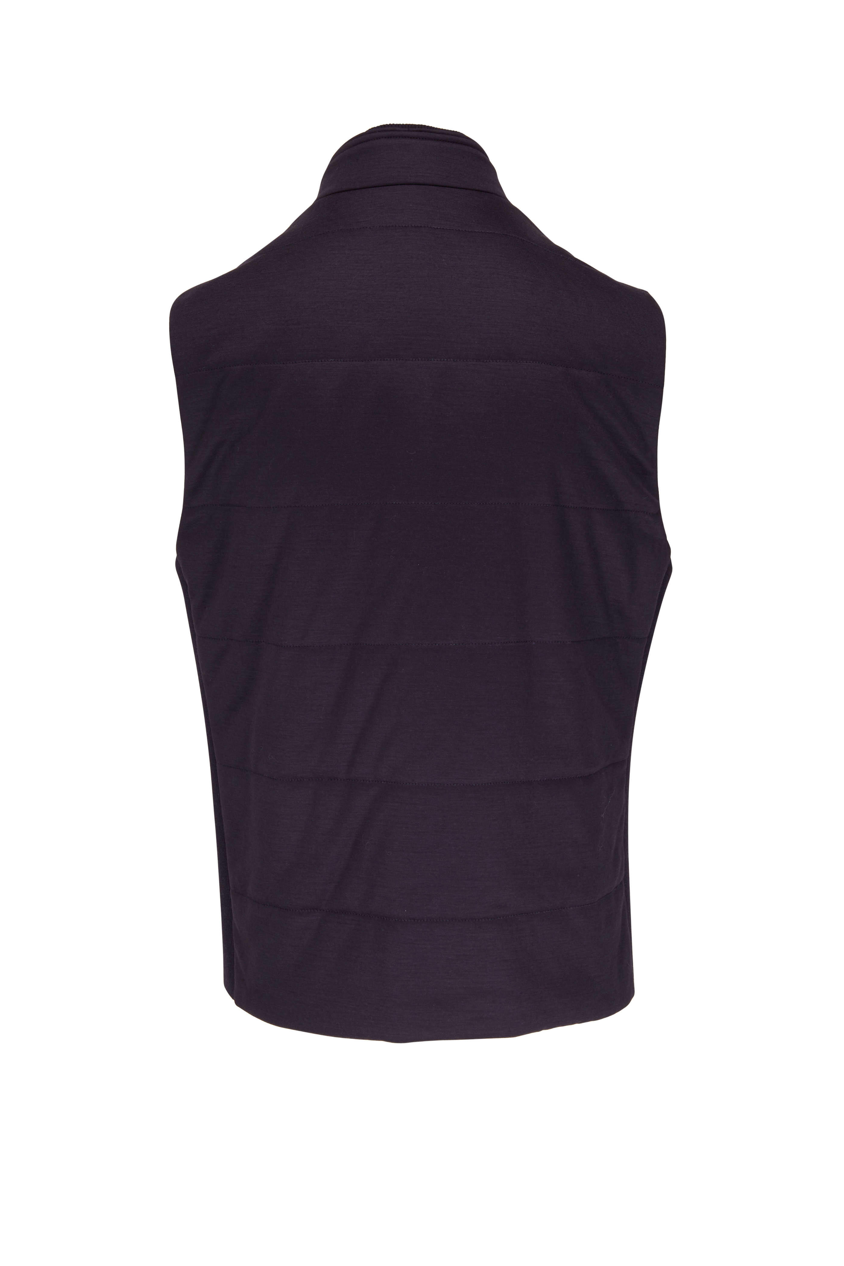 Navy Wool Jersey Zip Vest