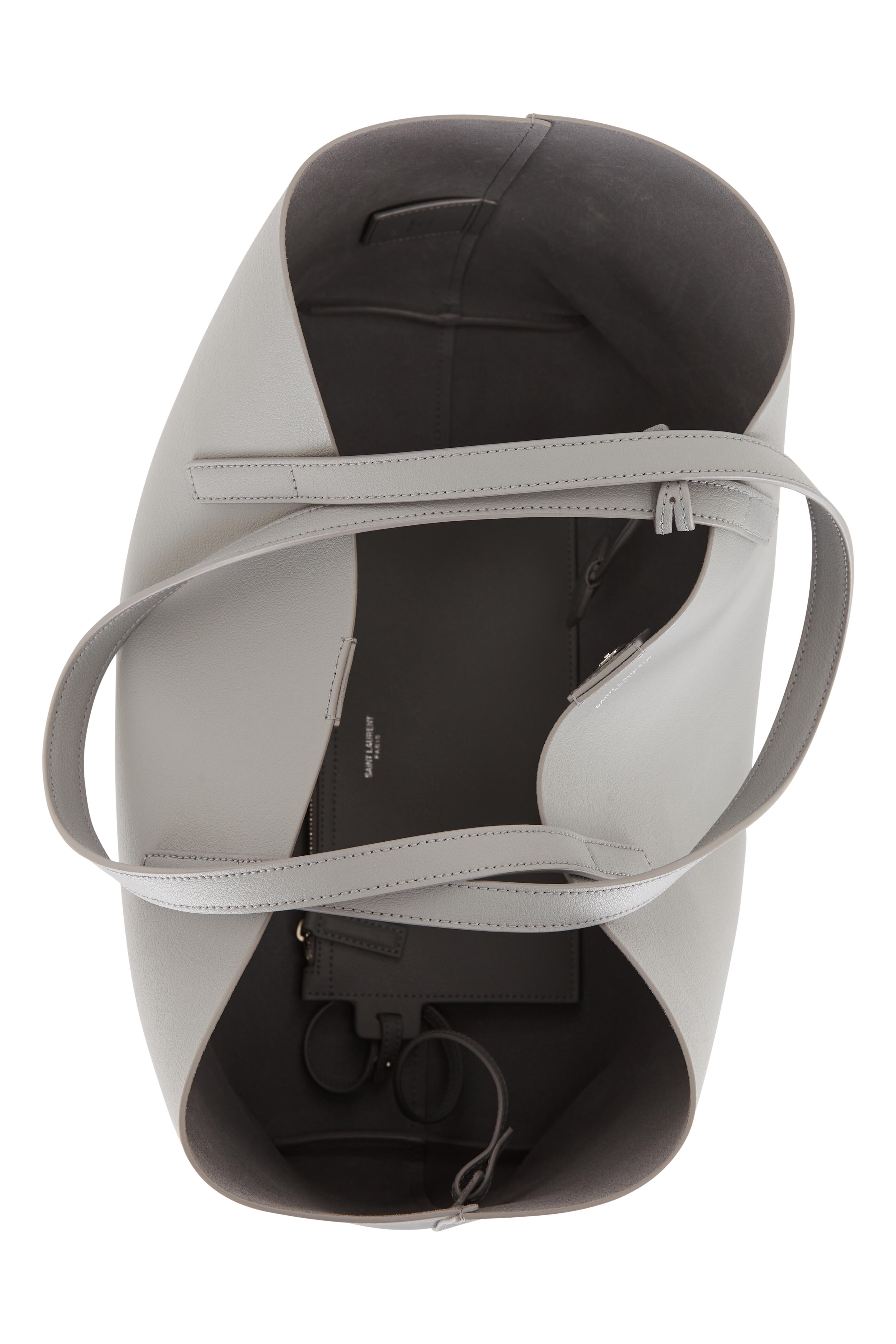 Calfskin leather. Dual flat straps. Center snap closure. Detachable zip pouch. Suede lining. Made in Italy. 14" width. 11" height. 5" depth. 10" strap drop.