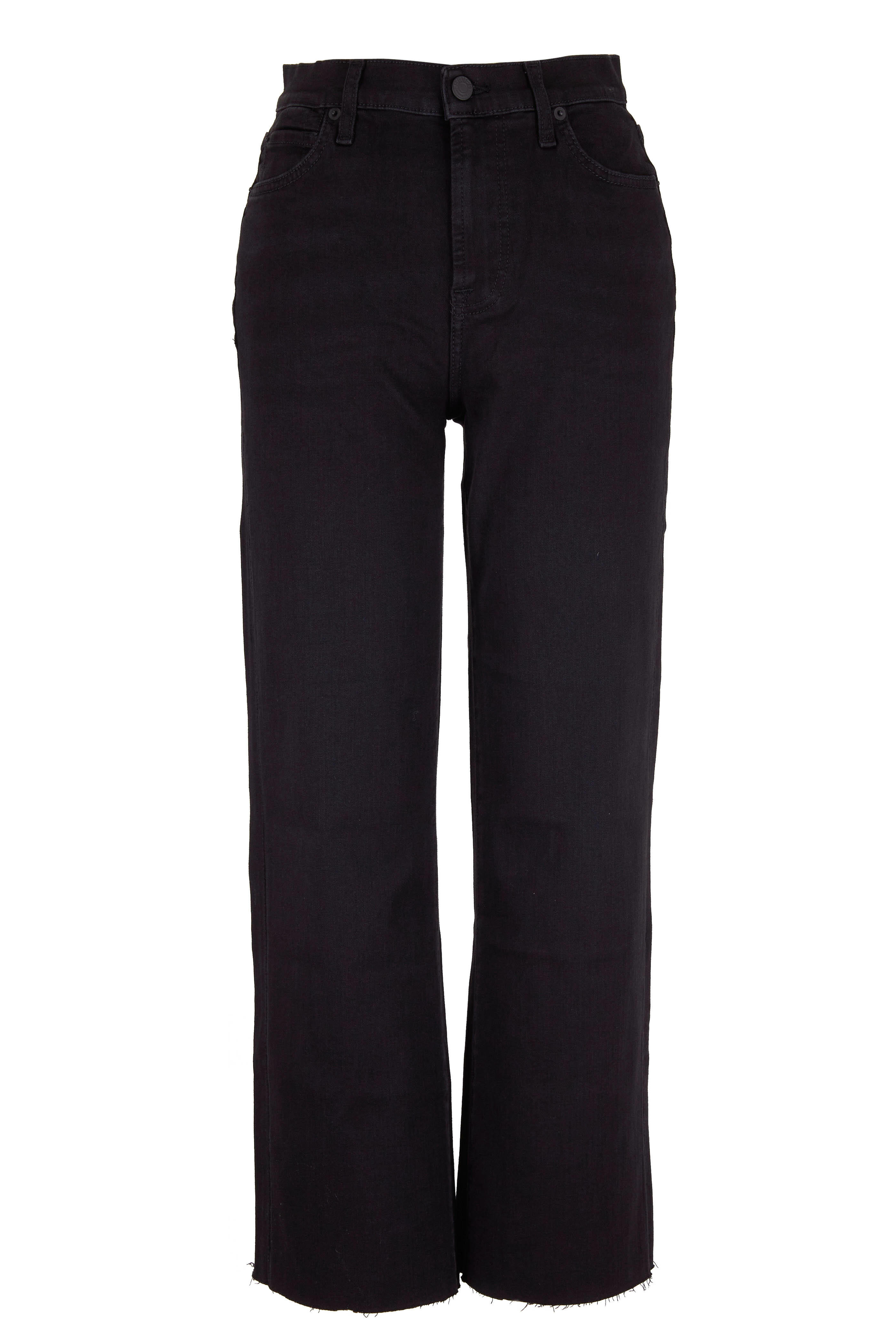 Belt loops. Zip and button fly. Five pocket styling. Raw edge hem. Imported. Color: Nice Ash. High rise, cropped, wide leg. 10.8" rise. 26.5" inseam. 97% cotton, 3% elastane. Machine wash.