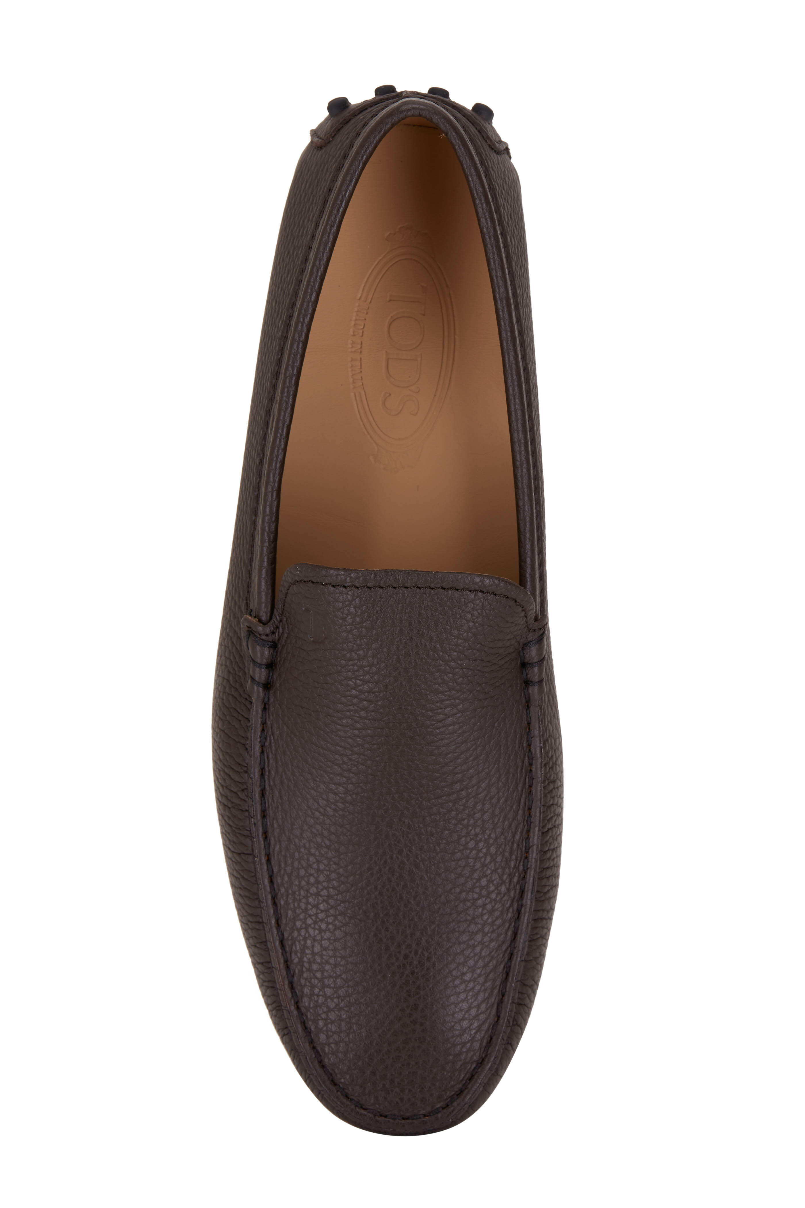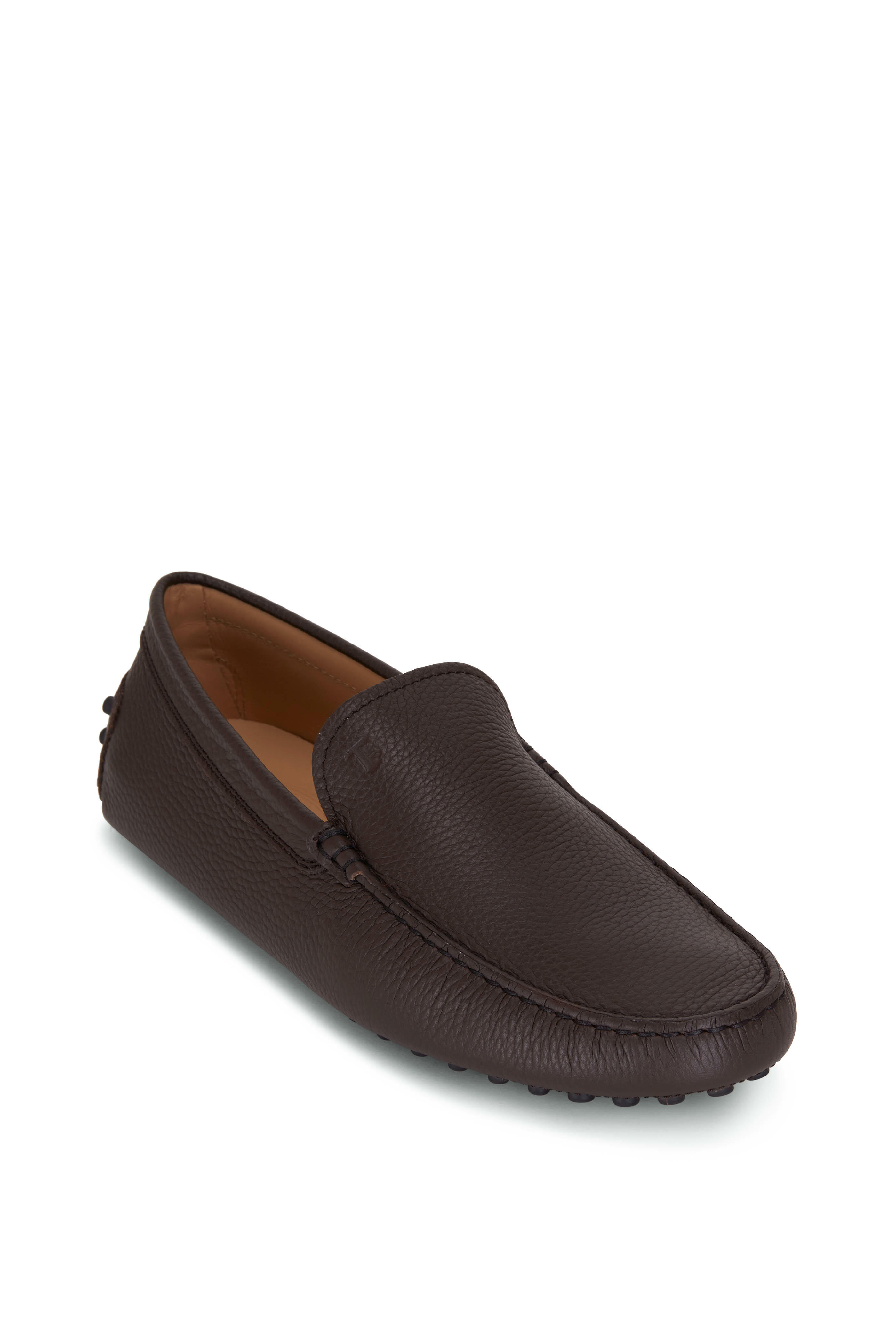 Grained leather upper. Moc toe. Notched vamp. Exposed handmade tonal stitching. Leather lining and insole. Pebbled rubber sole. Made in Italy.