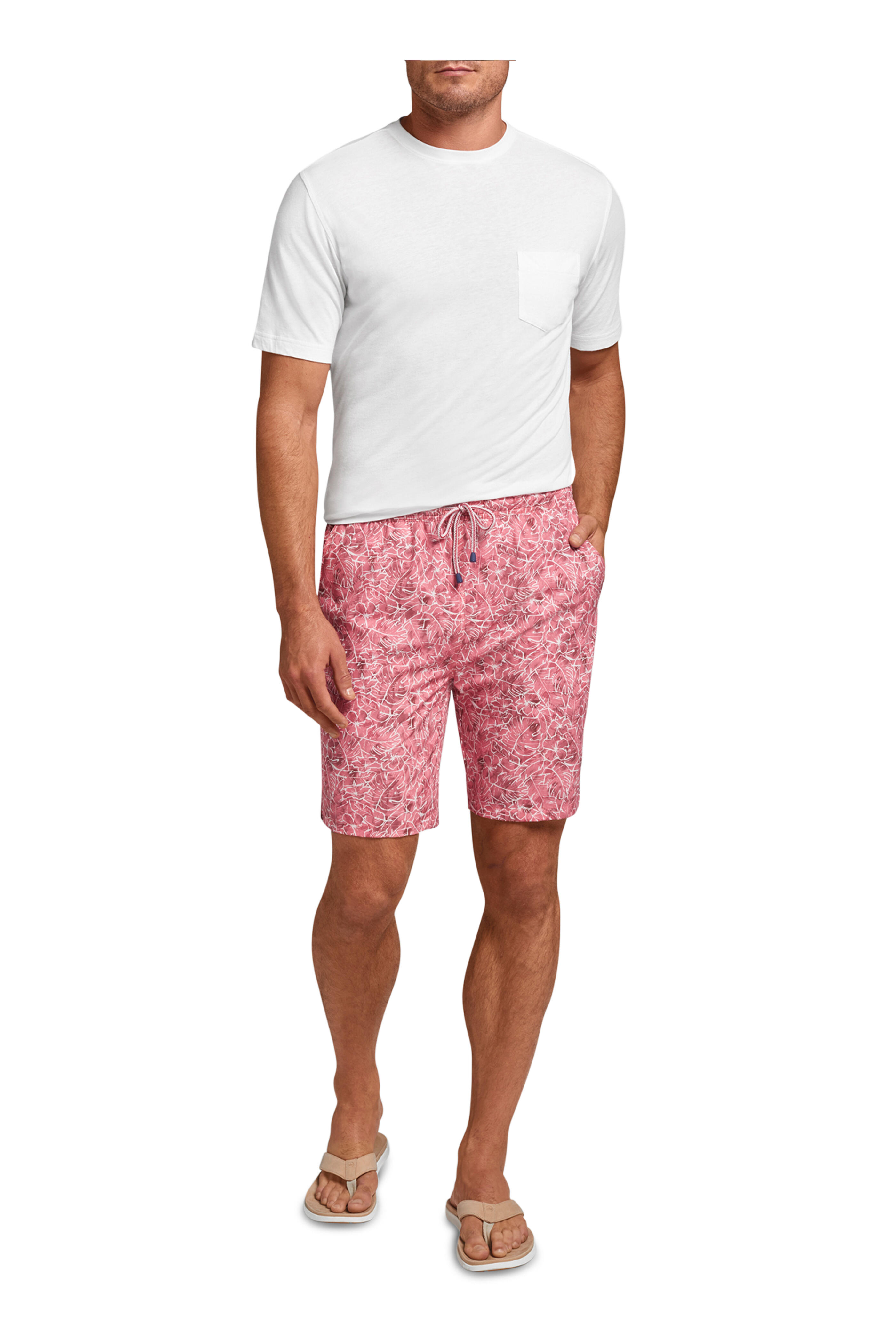 Elasticized, drawstring waist. Quarter-top pockets. Imported. Classic fit. 8" inseam. 88% polyester, 12% spandex. Machine wash.