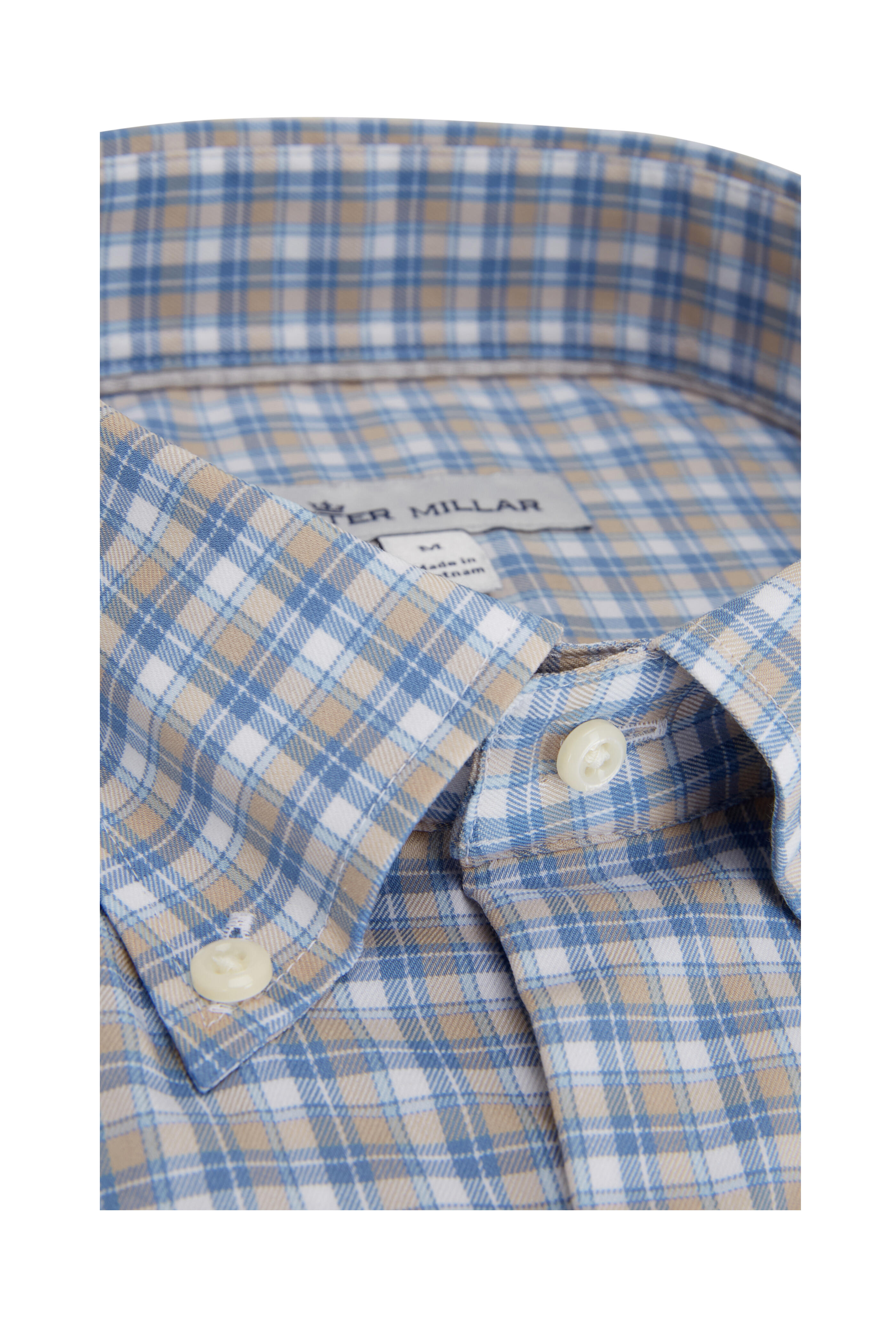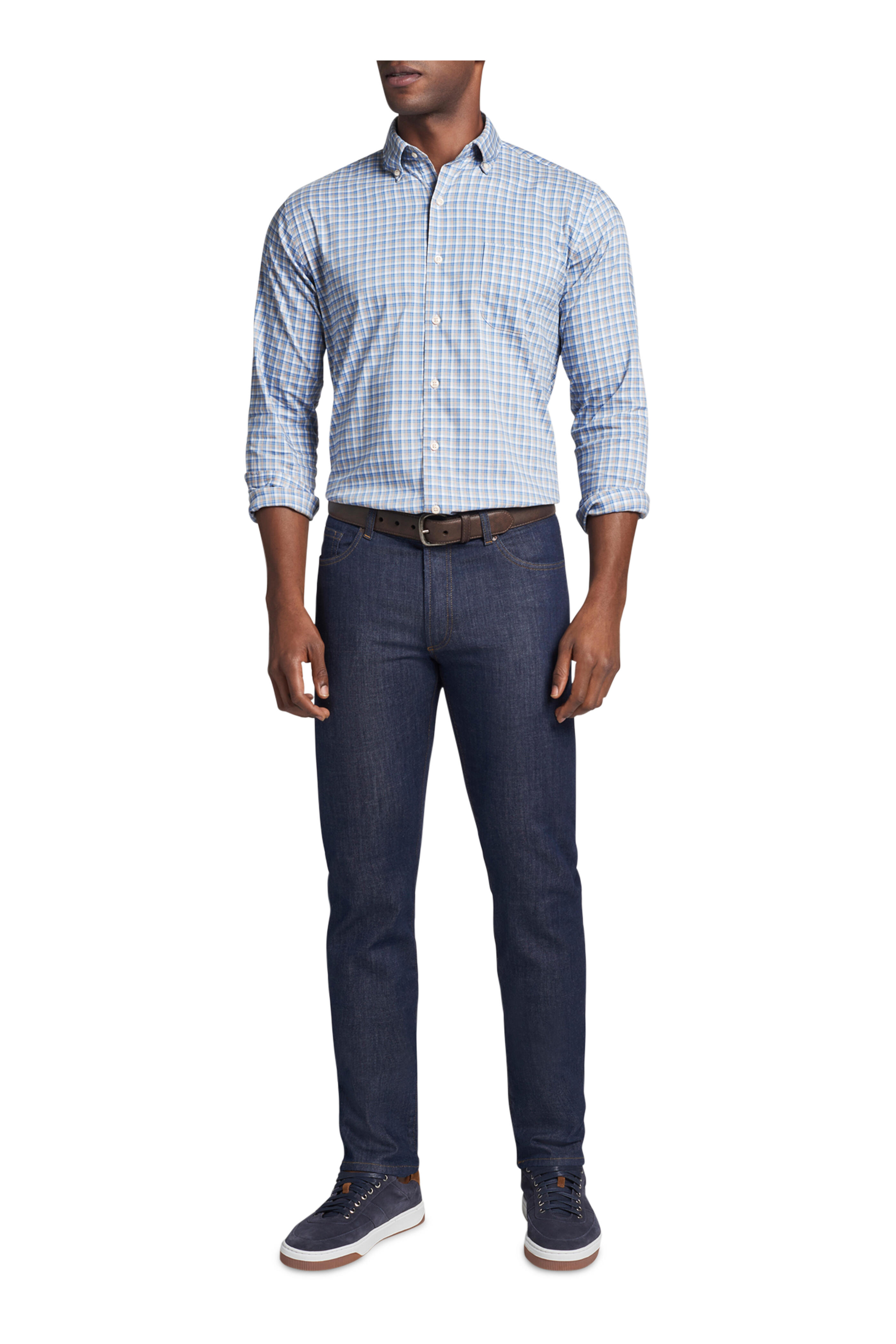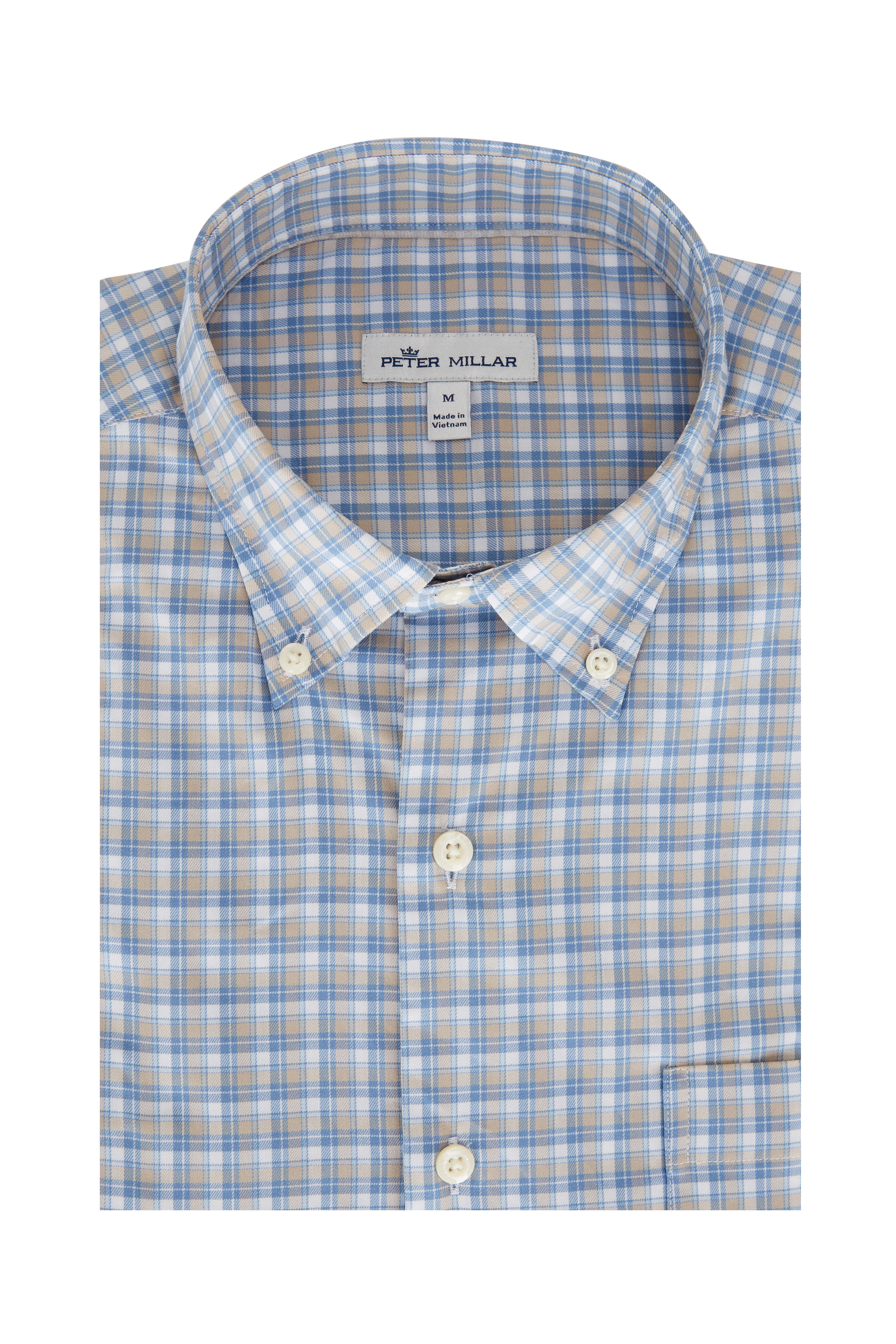 Button-down collar. French placket. Chest pocket. Double-button barrel cuffs. Two-way stretch. Imported. Classic Fit. Relaxed fit throughout the sleeve. Relaxed in the shoulder, chest and waist. Designed to be worn tucked in. 42% cotton, 36% nylon, 17% Tencel, 5% spandex. Machine wash.