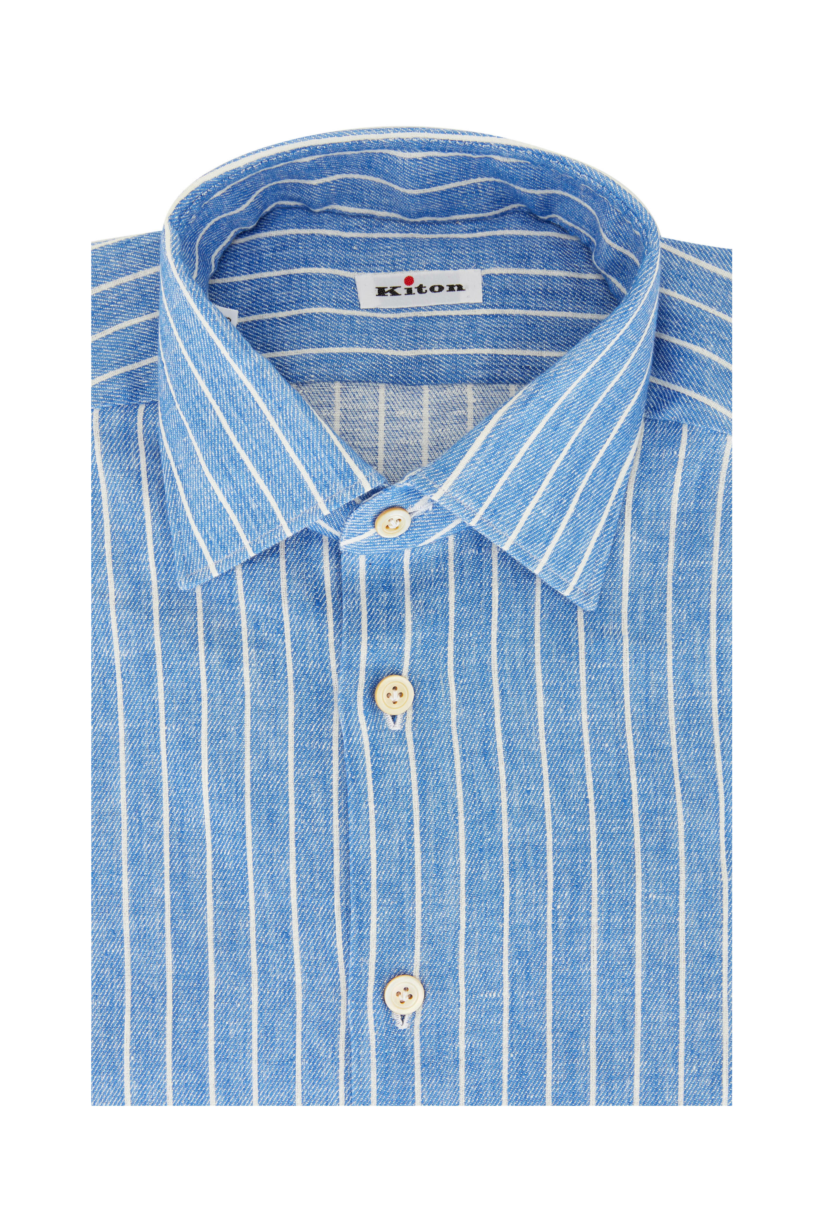 Linen blend. Spread collar. Single button barrel cuffs. Imported. Dry clean.