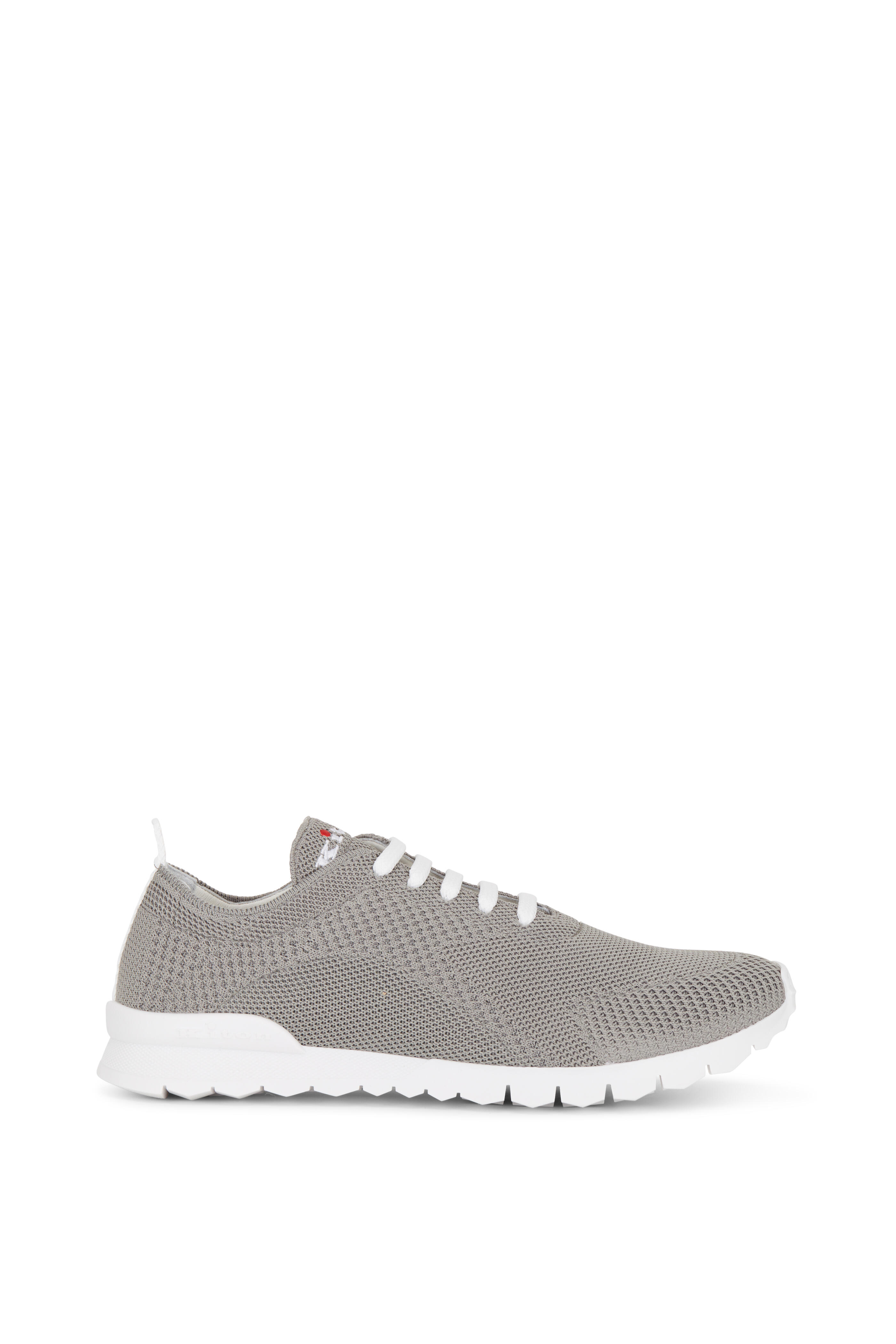 Knit upper. Tapered toe. Lace up closure. Back pull tab. Cushioned insole. Rubber sole. Made in Italy.
