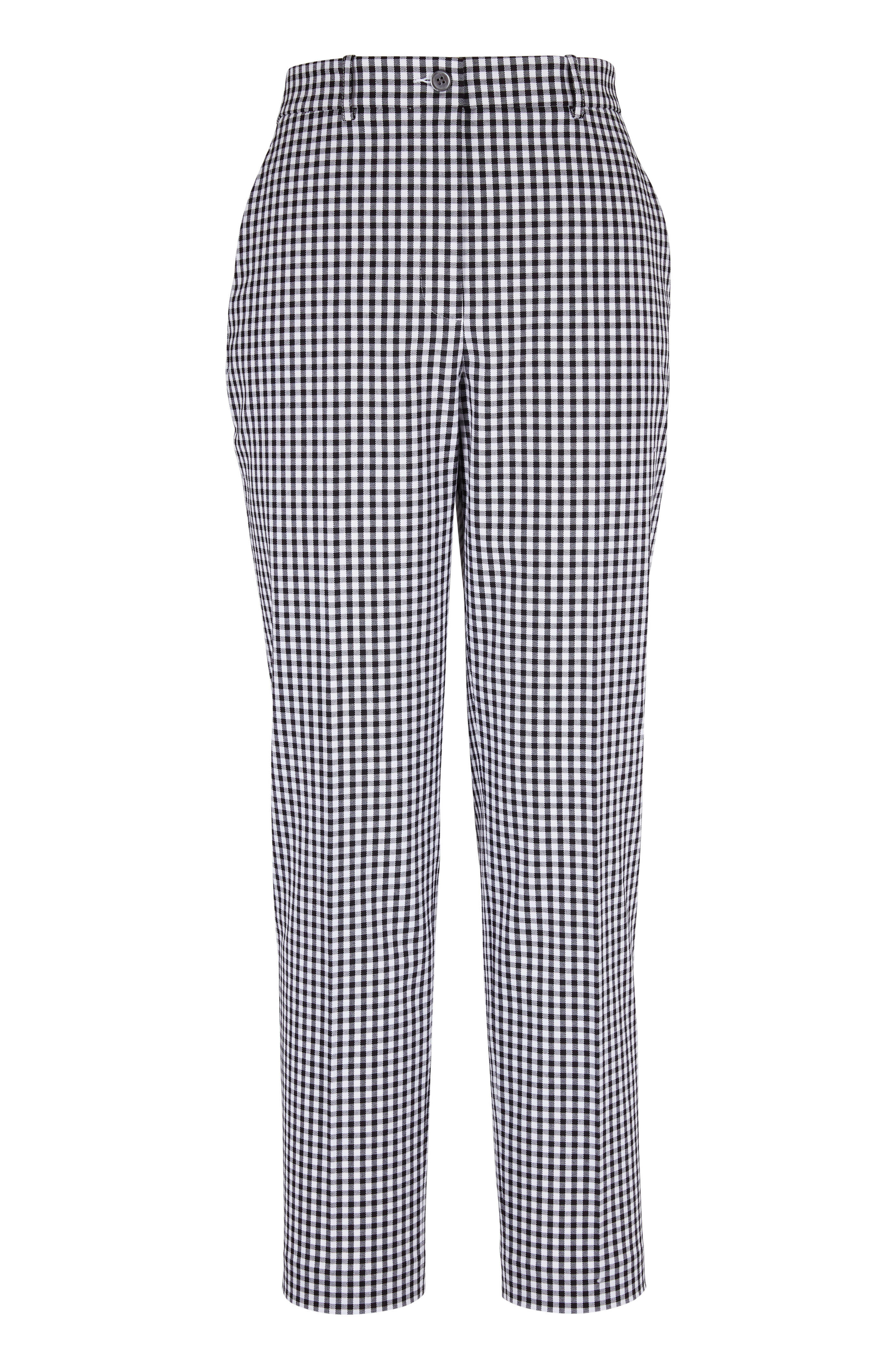 Banded waist; belt loops. Front zip and button closure. Front slip pockets; back besom pockets. Imported with Italian fabric. 27" inseam. 98% cotton, 2% elastane. Dry clean.