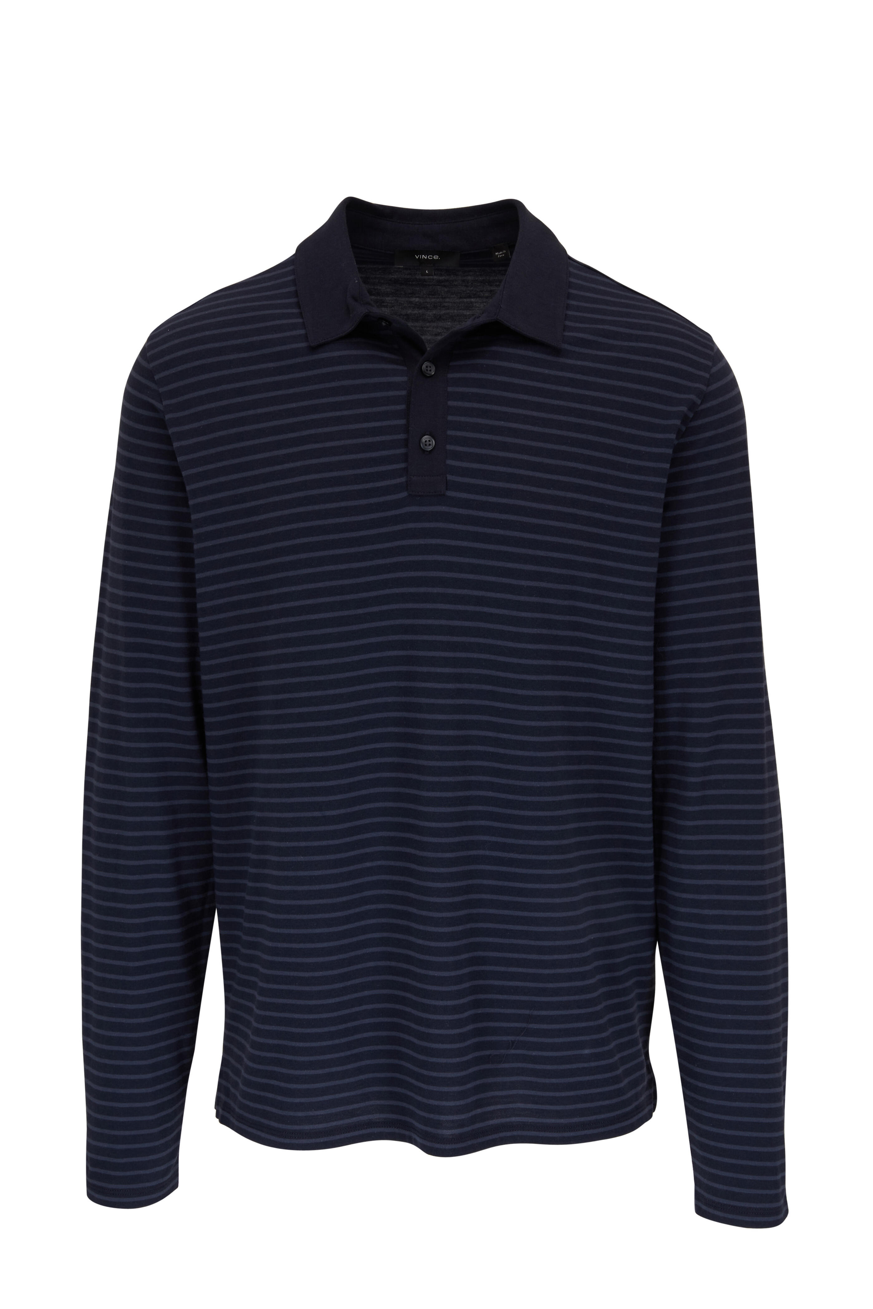 Three button placket. Made in Peru. 100% pima cotton. Machine wash.