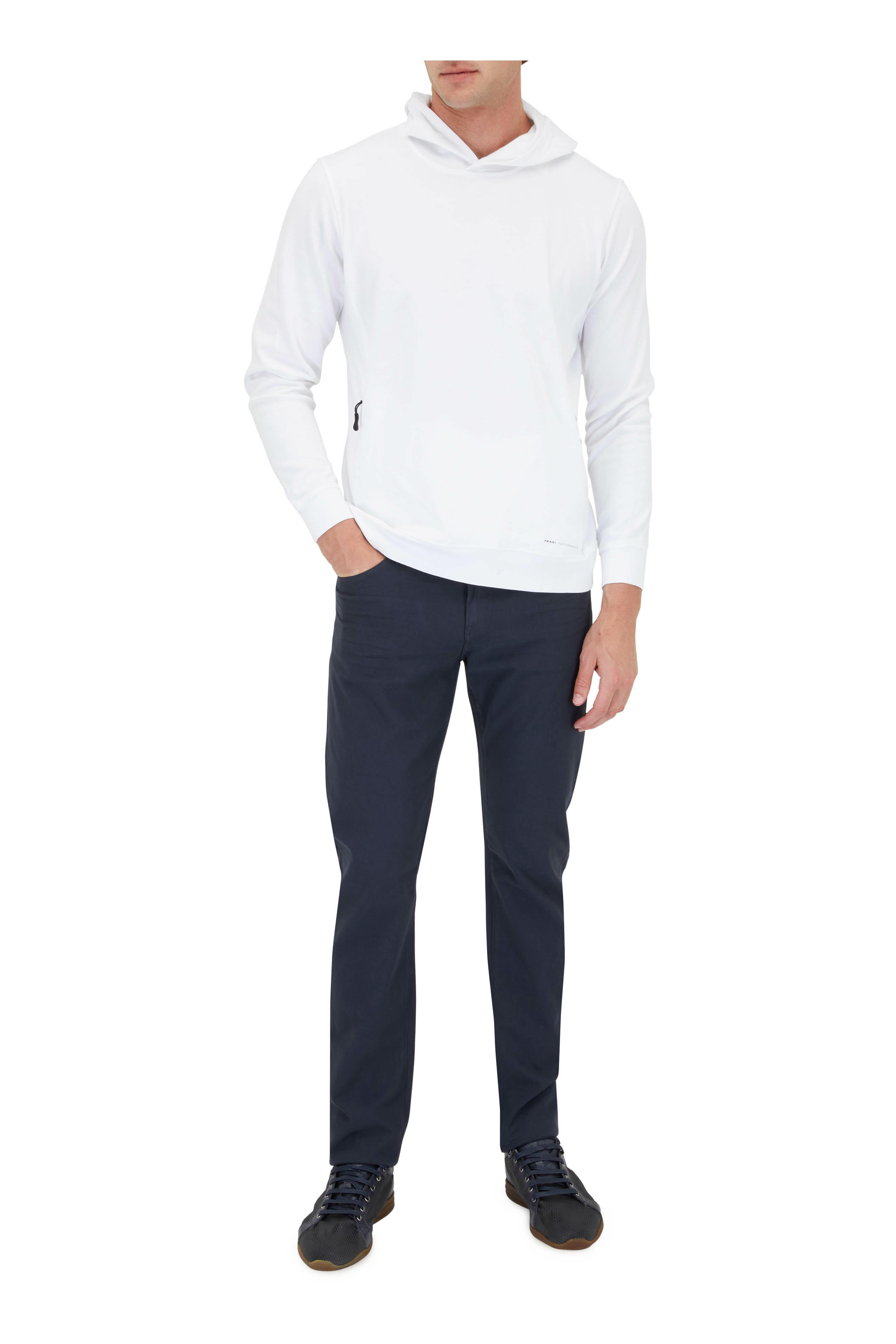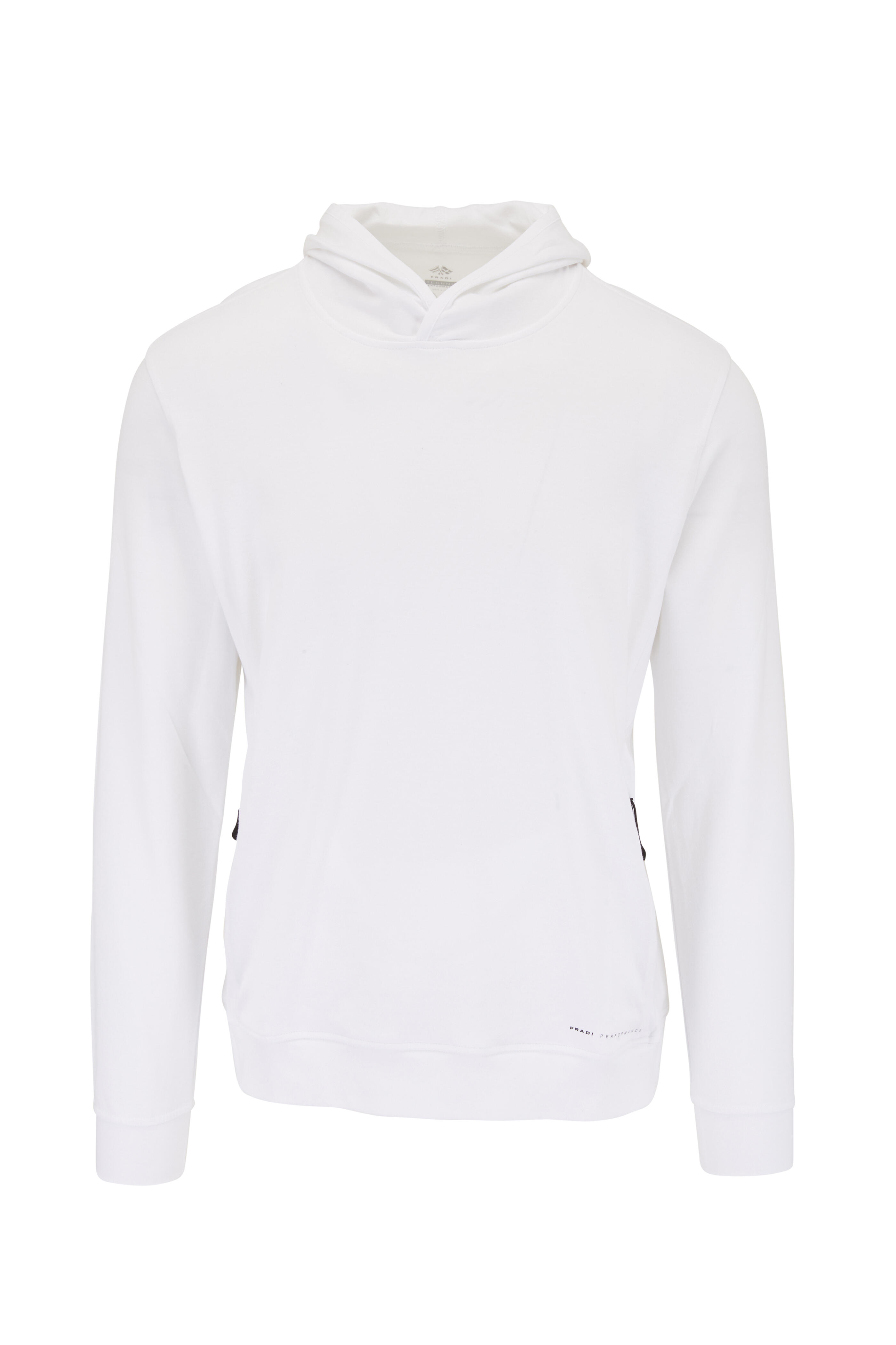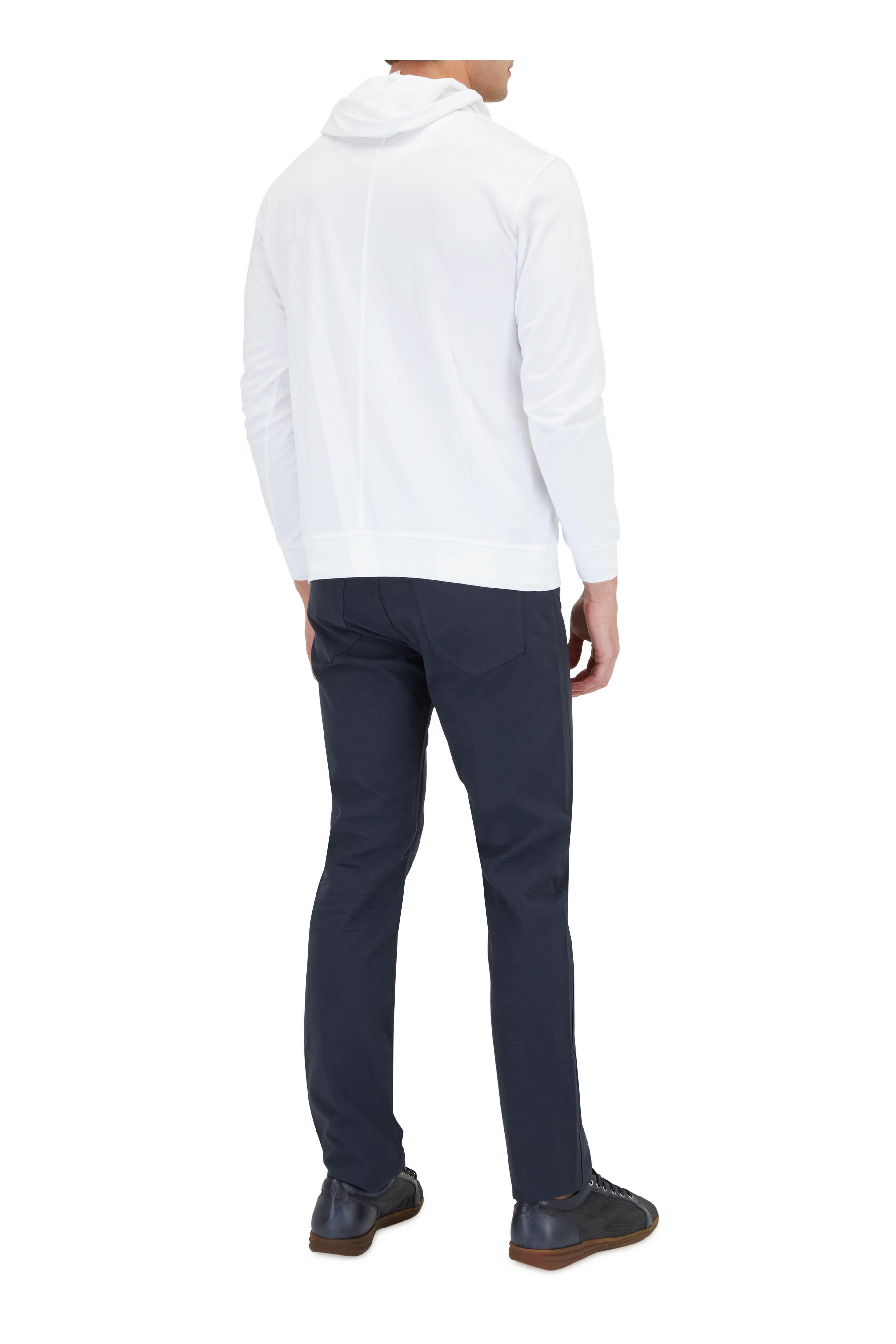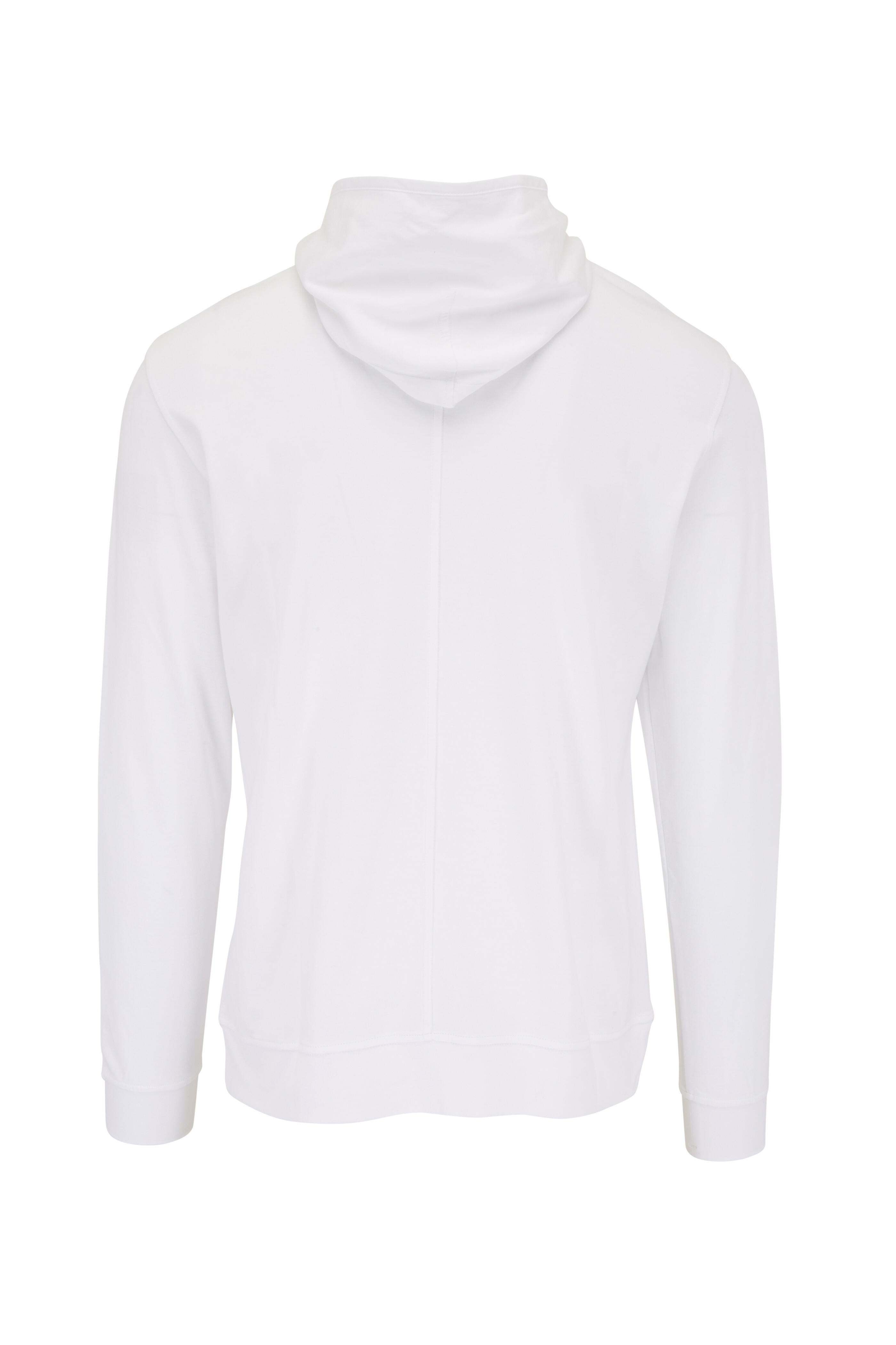 Hooded. Lower zip pockets. Banded hem and cuffs. Made in Italy. 92% cotton, 8% polyamide. Machine wash.