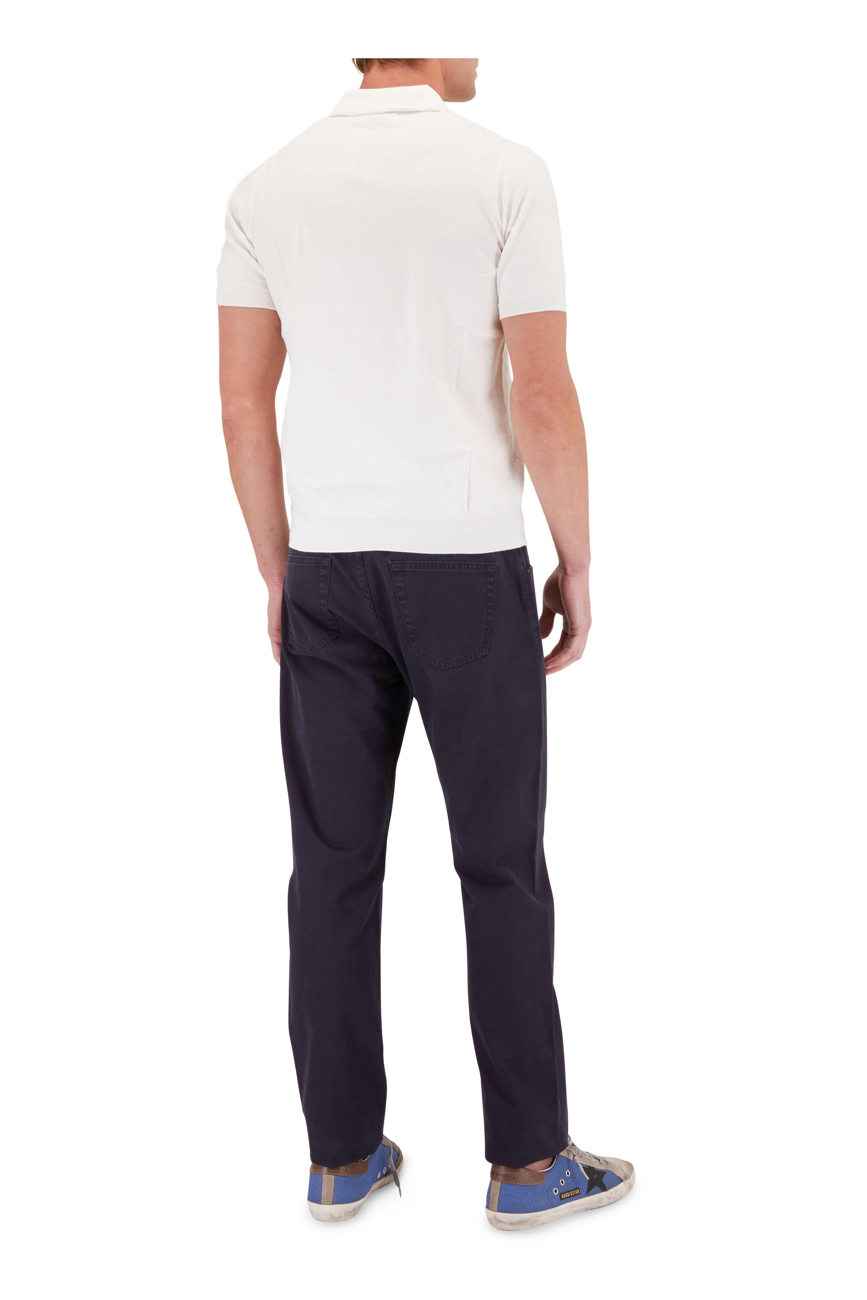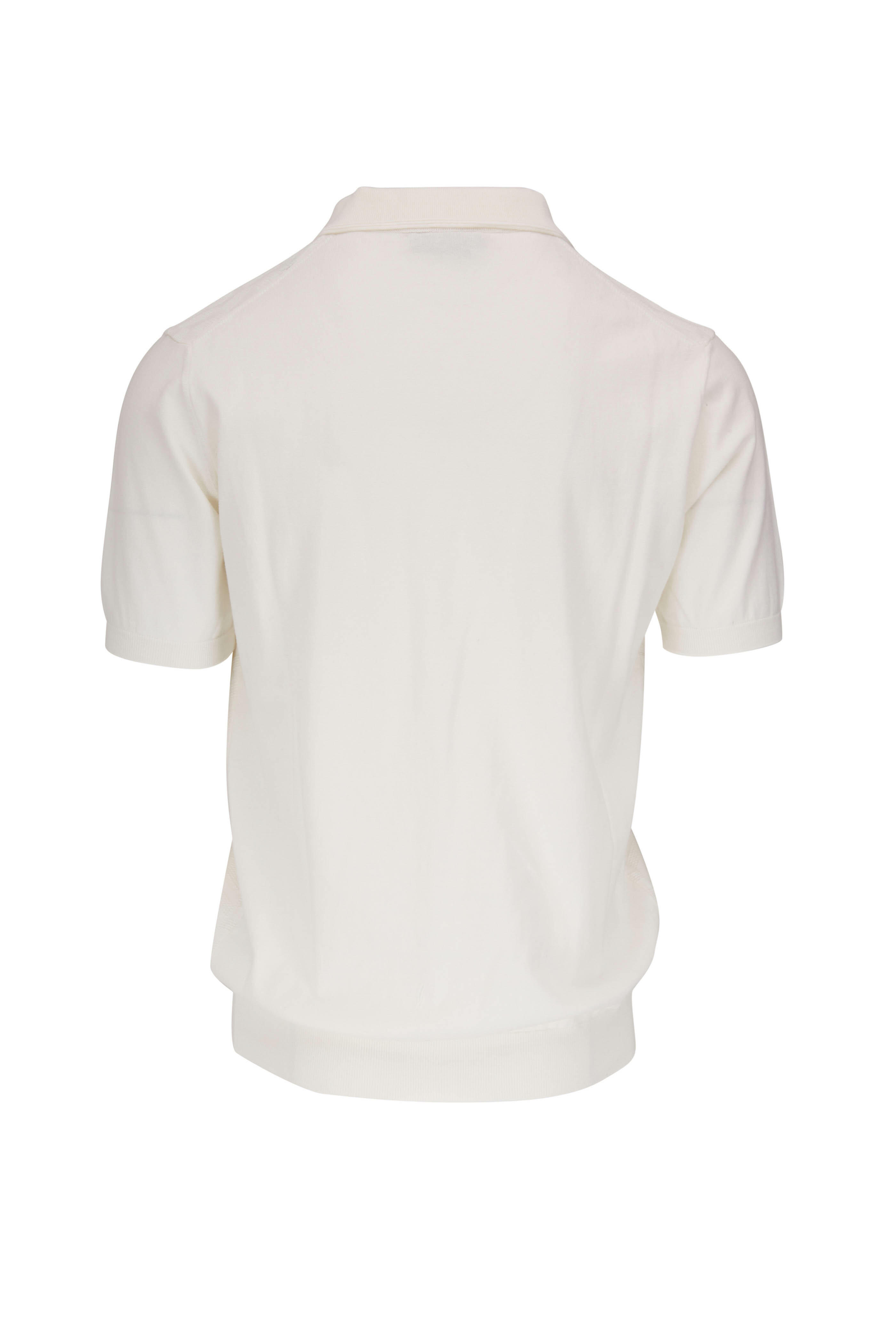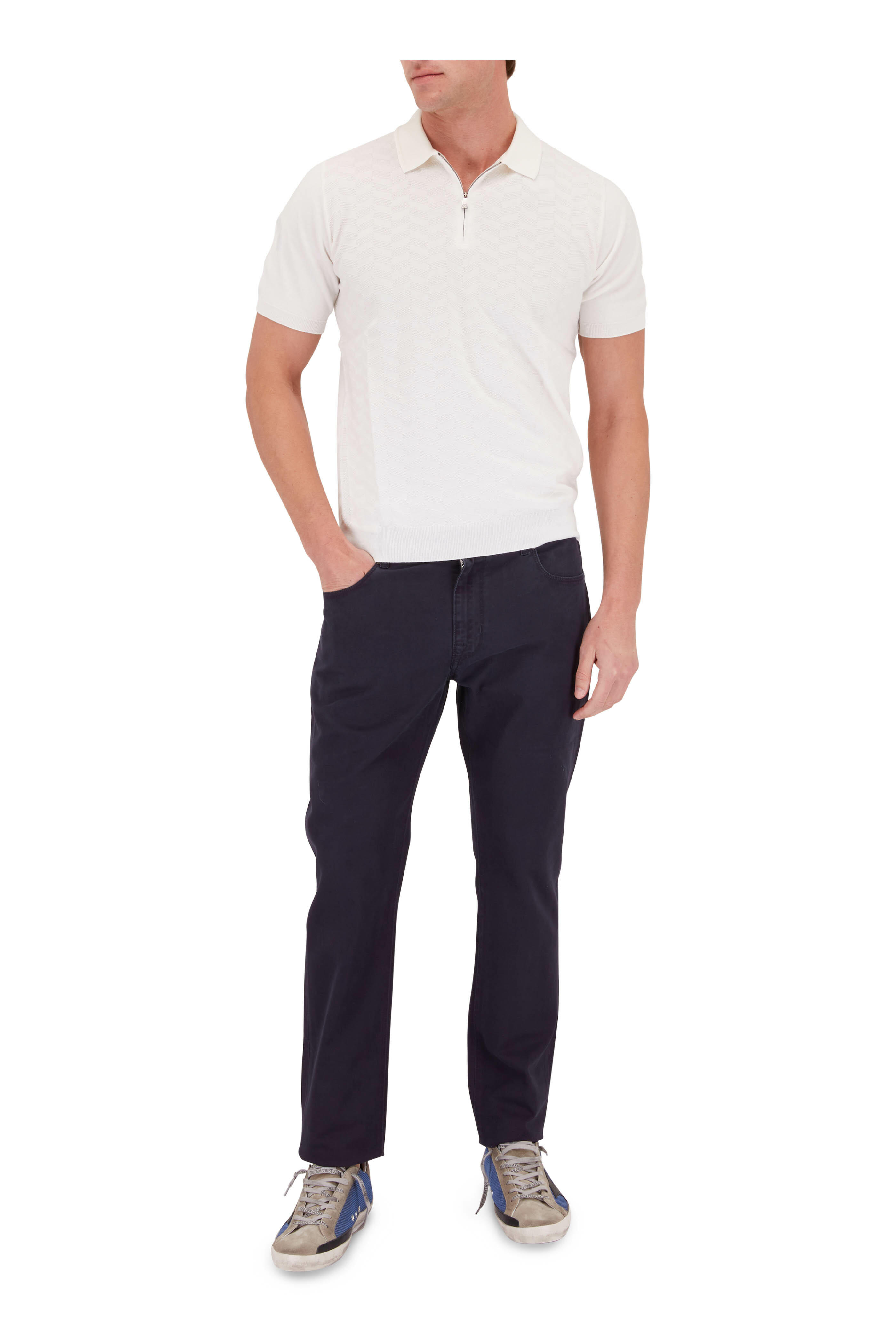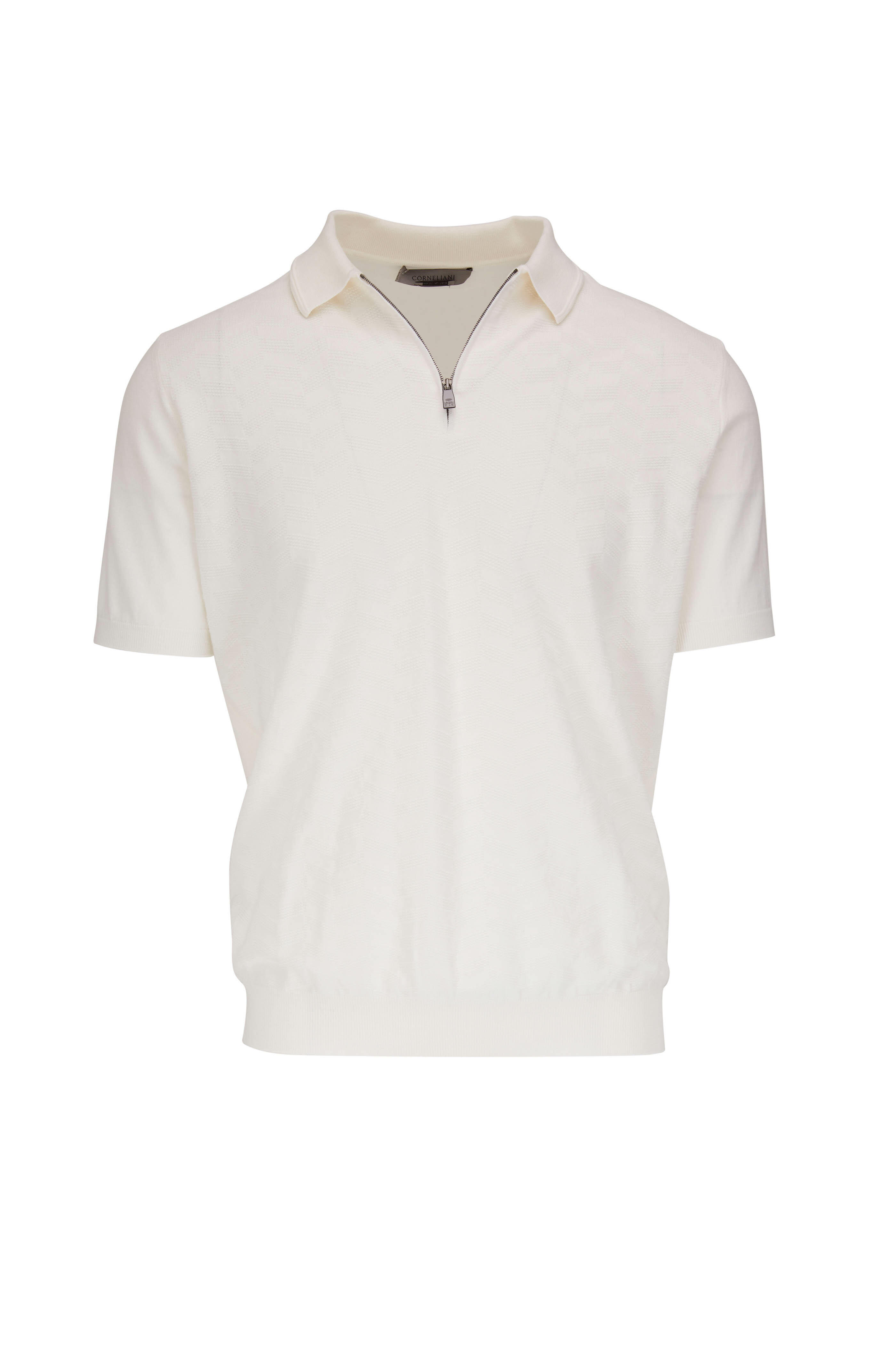 White Diamond Knit Cotton Quarter Zip Pullover