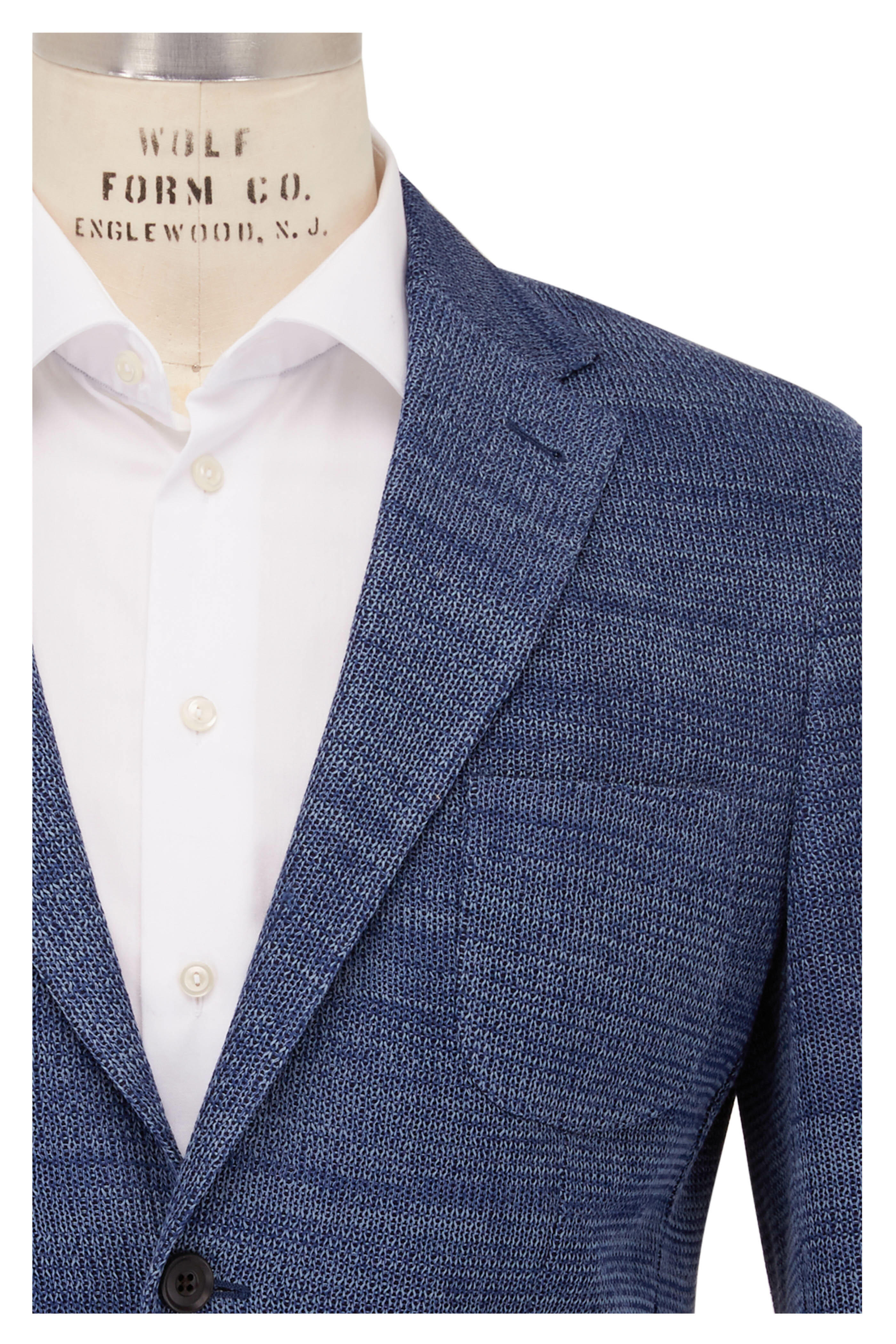 Notched lapels. Two button closure. Chest welt pocket, lower patch pockets. Double vent. Made in Italy. 100% cotton; unlined. Dry clean.