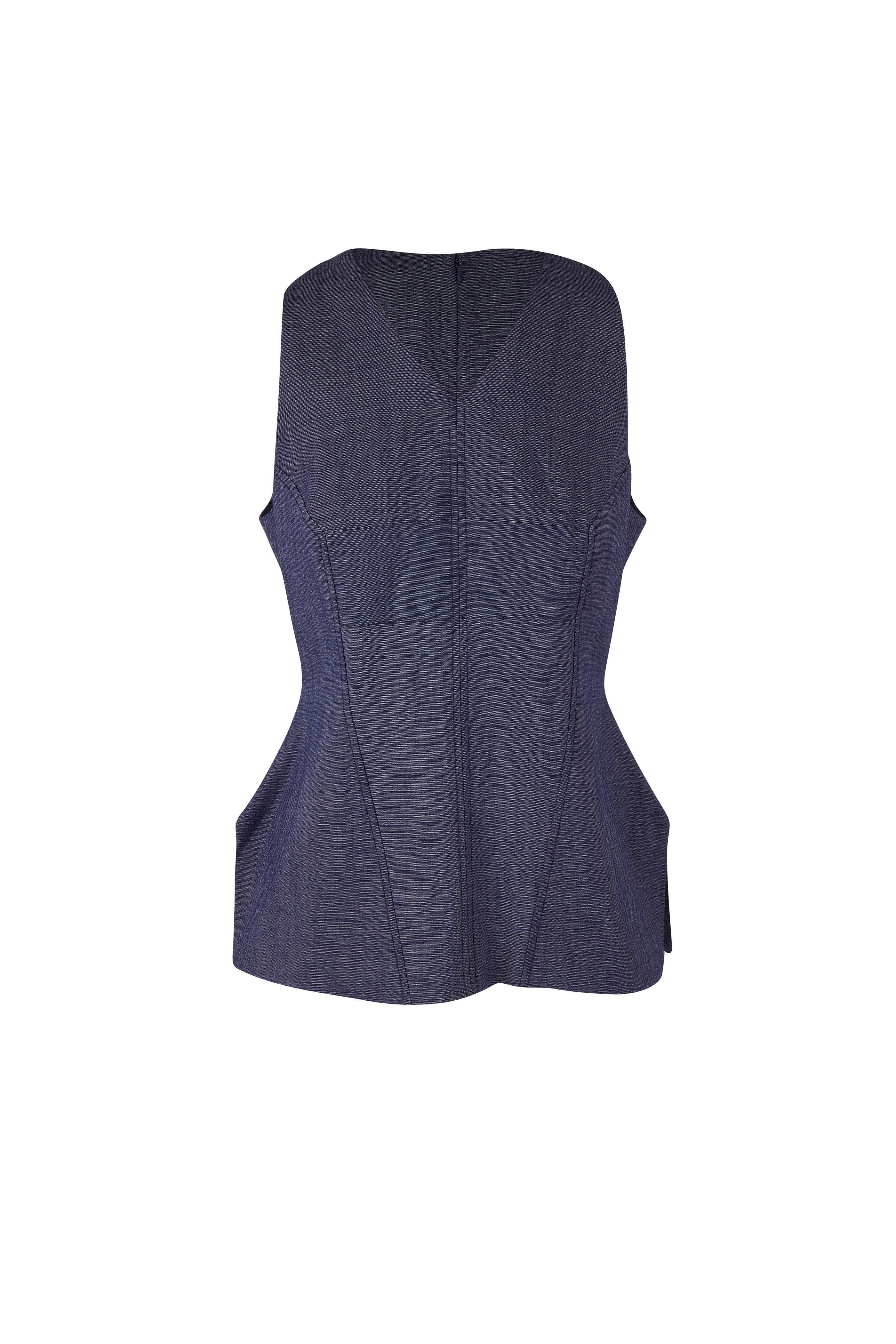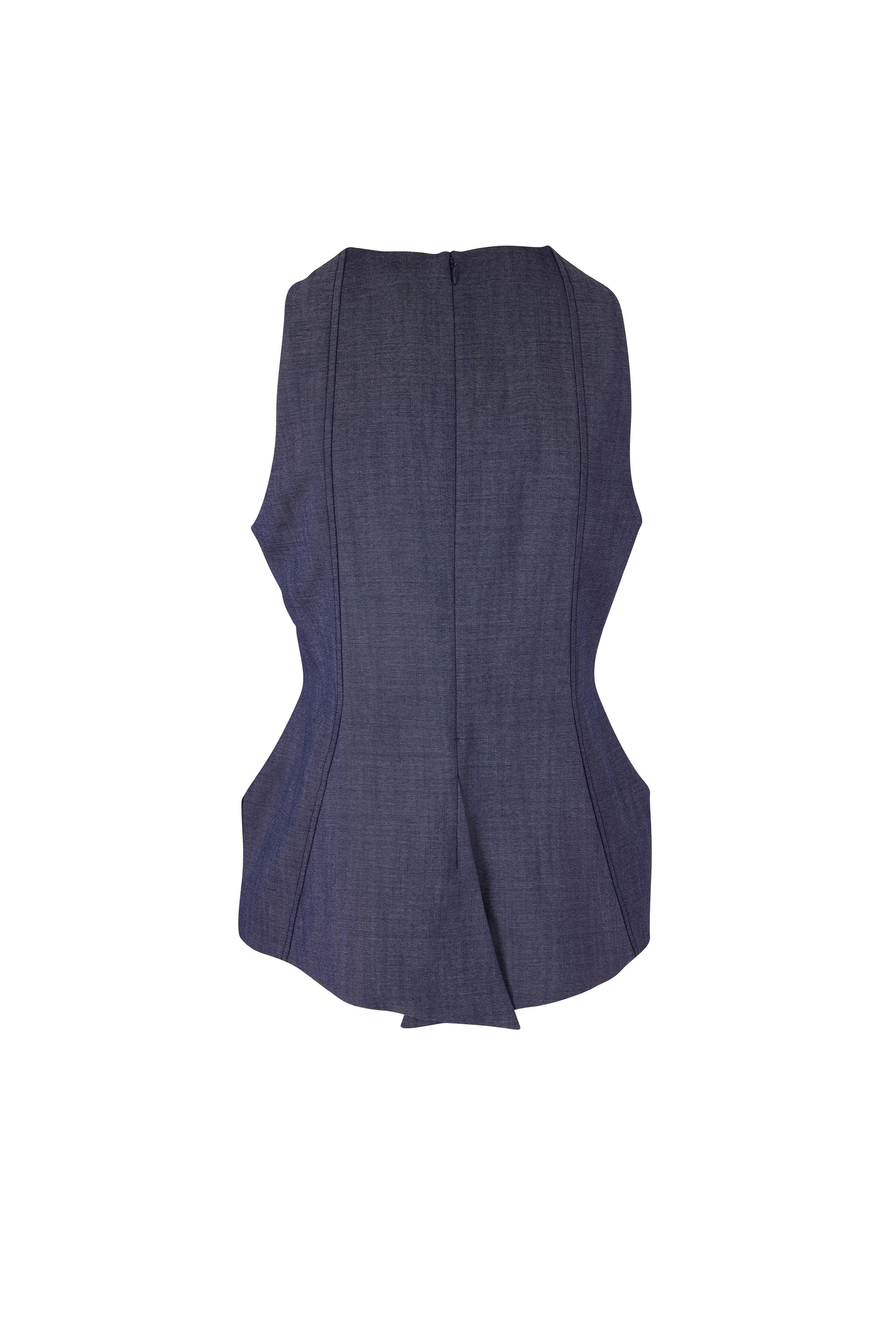 V-neckline. Concealed back zip. Vented hem. Made in NYC. 46% viscose, 26% linen, 16% cupro, 11% polyester, 1% polyurethane fiber. Dry clean.