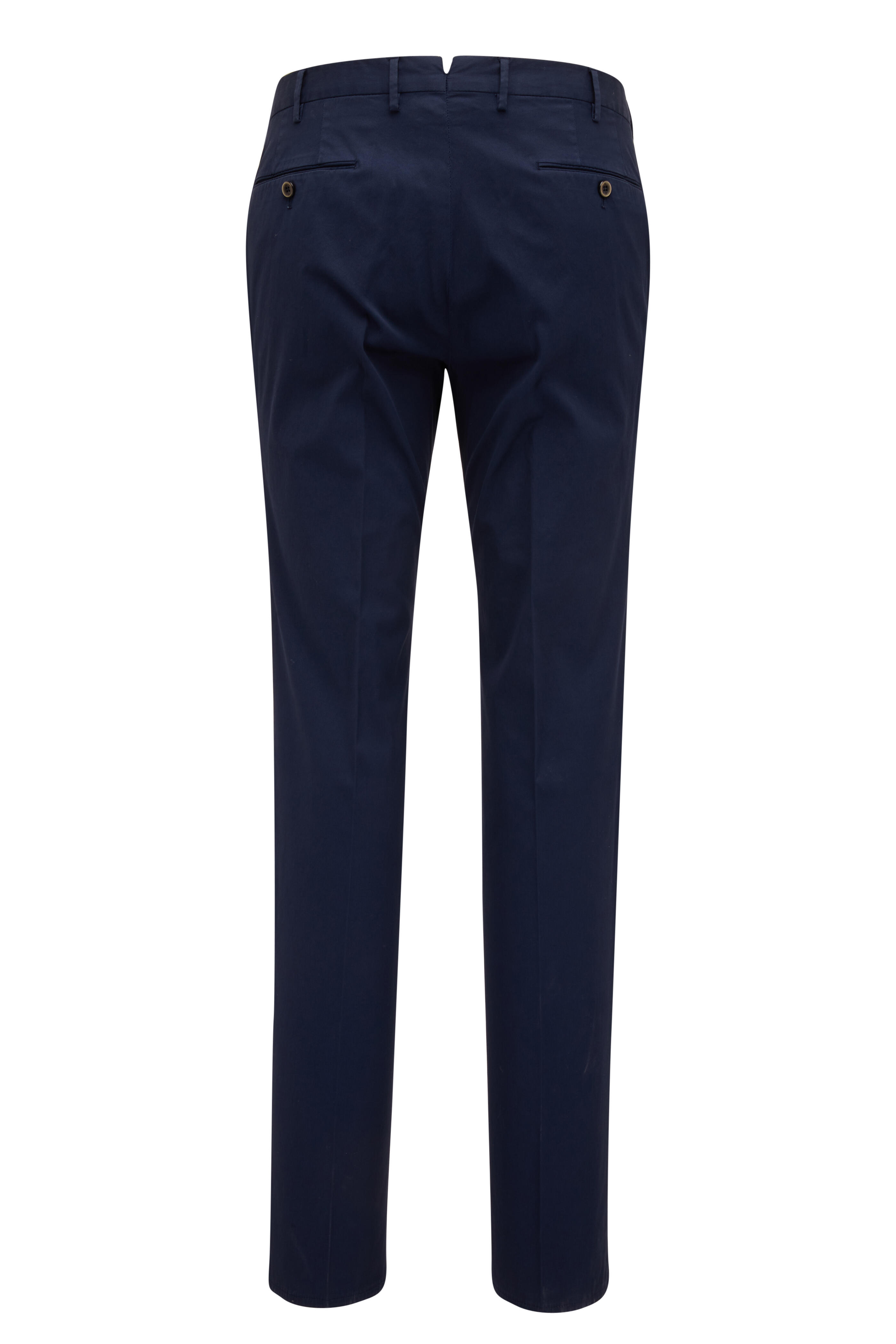 Belt loops. Front zip; extended tab closure. Front slip pockets, ticket pockets; back besom pockets. Imported. Slim fit. 33" inseam. 97% cotton, 3% elastane. Machine wash.