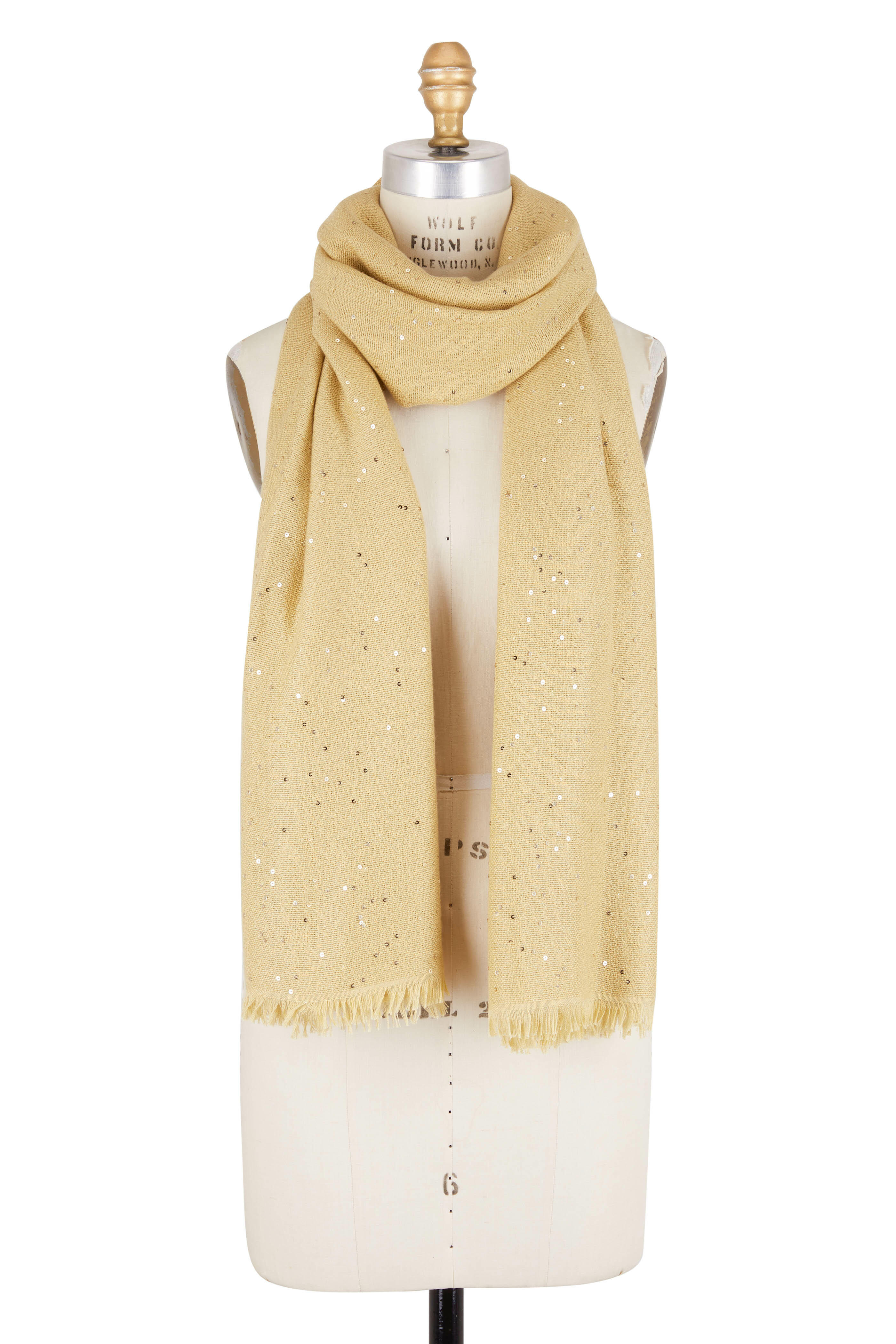 All over paillette detailing. Made in Italy. 70% cashmere, 30% silk. Hand wash.