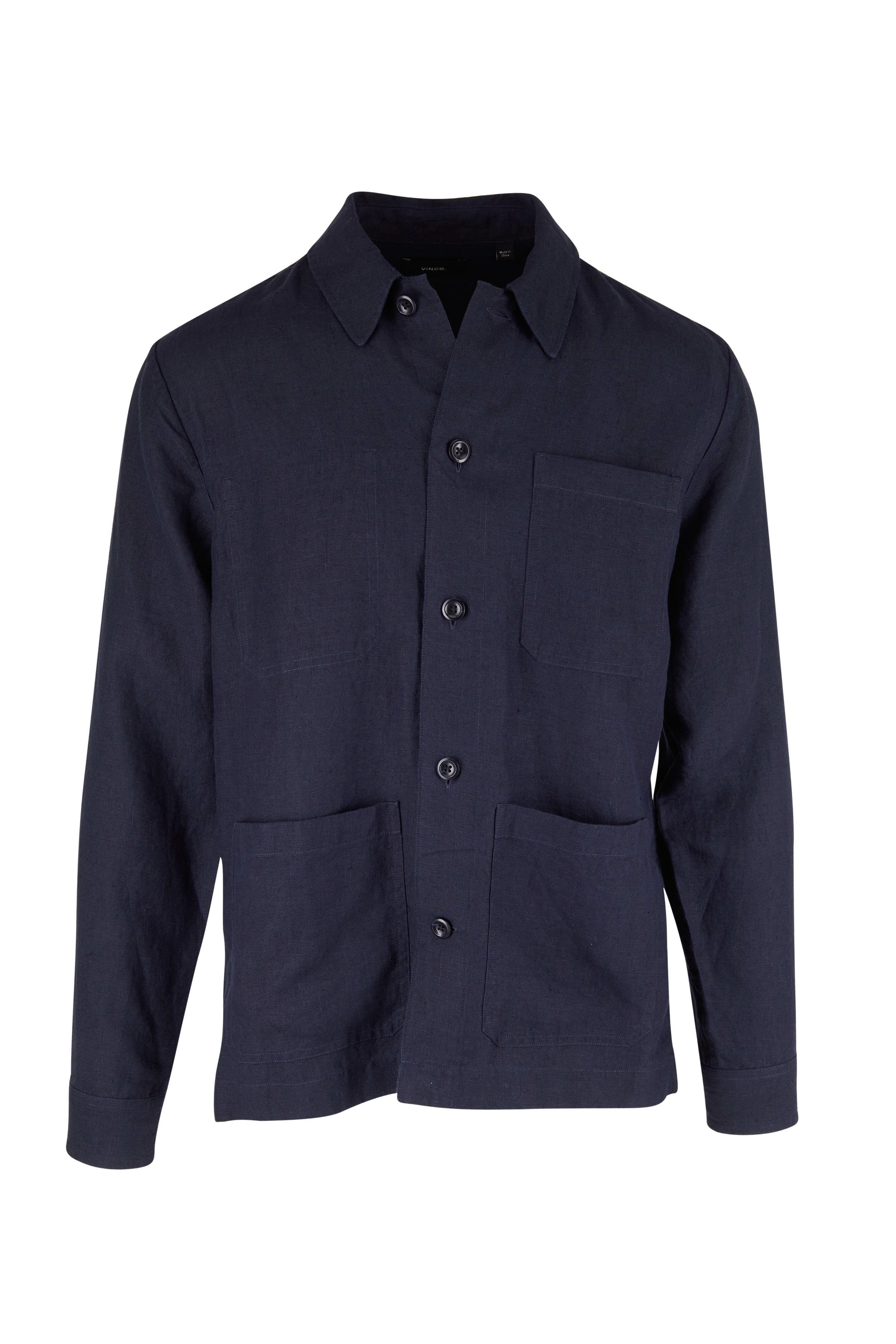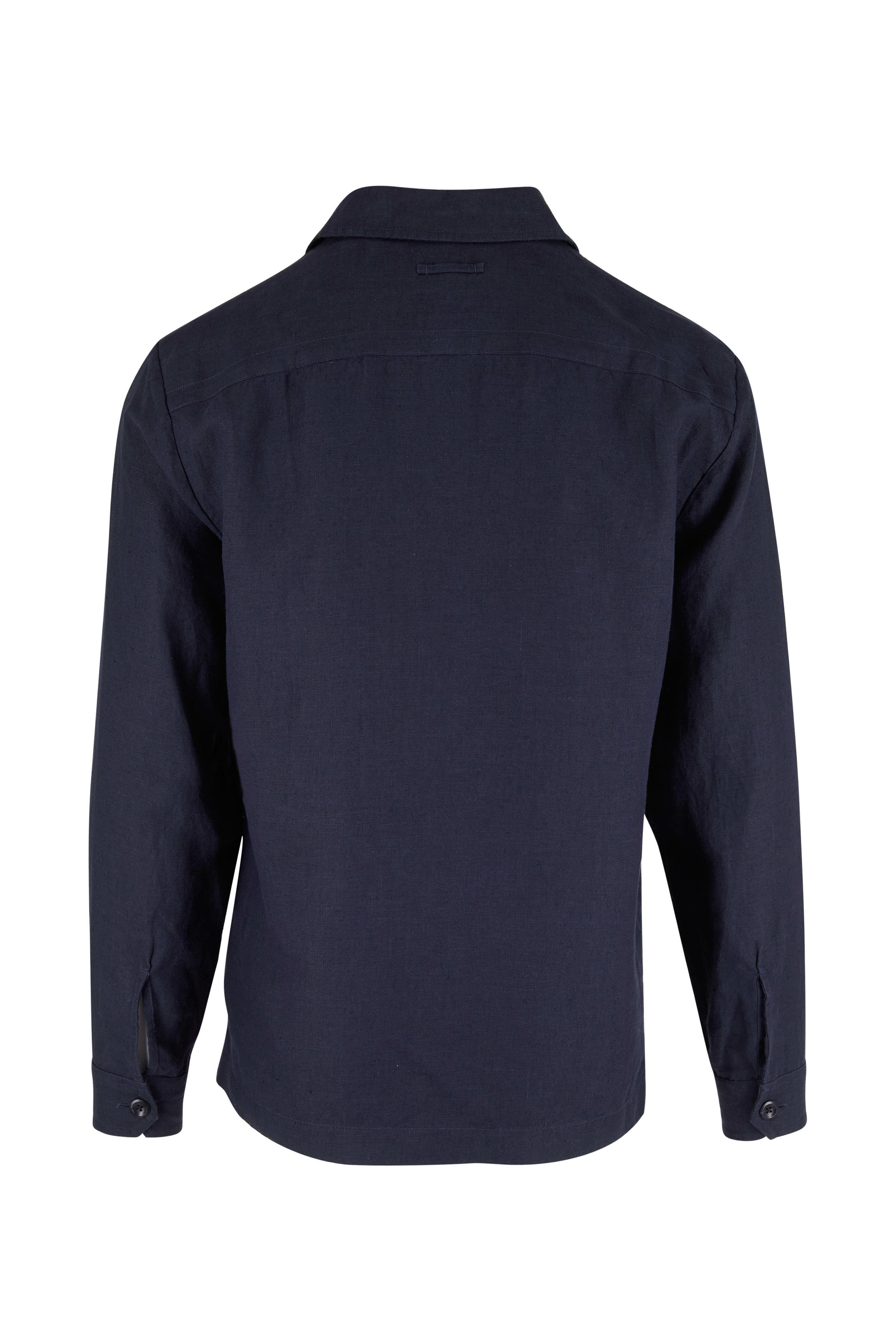 Spread collar. Button placket. Lower patch pockets; chest patch pocket. Imported. 100% hemp. Machine wash.