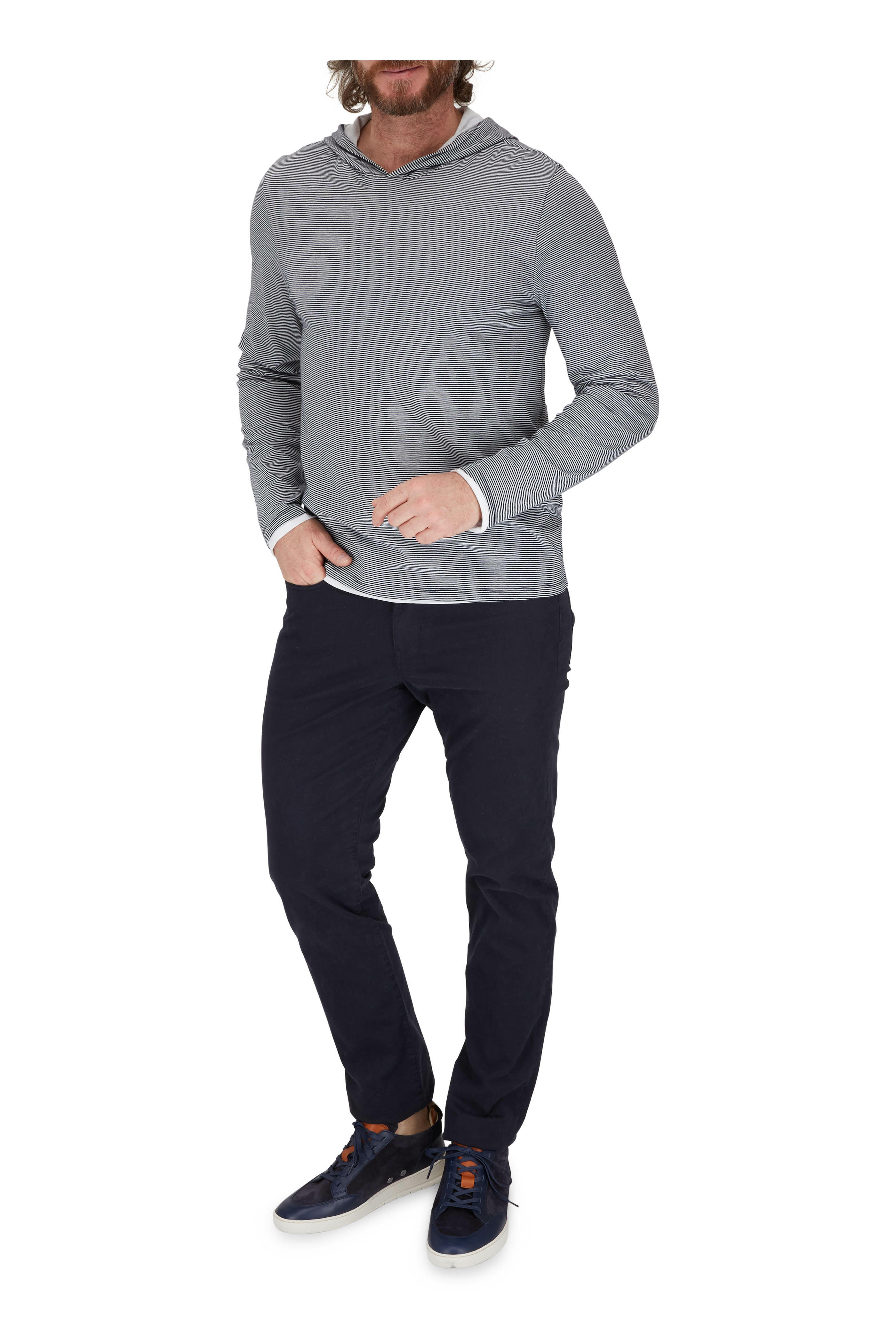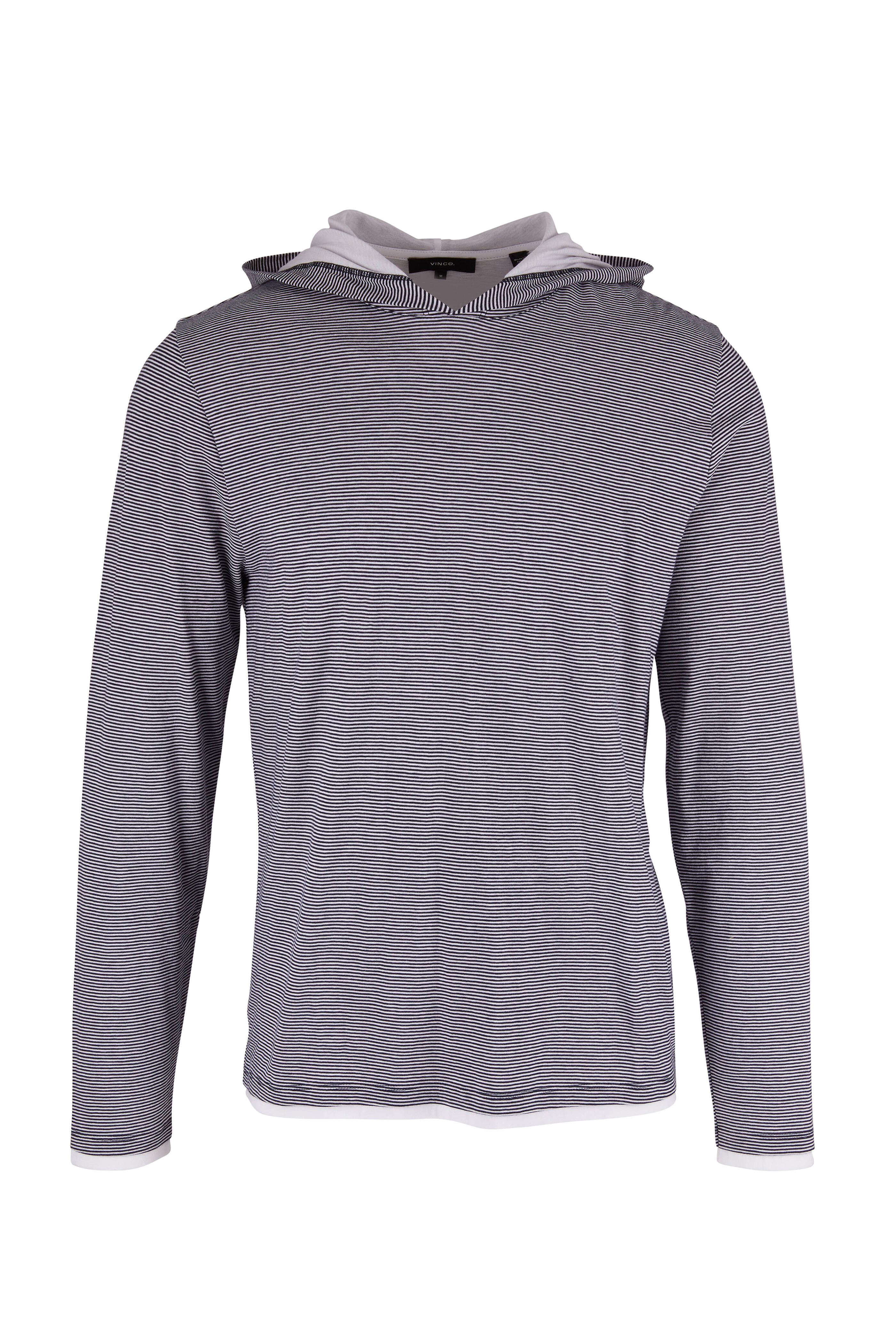 • Vince - Coastal & Off White Stripe Double Layer Hoodie