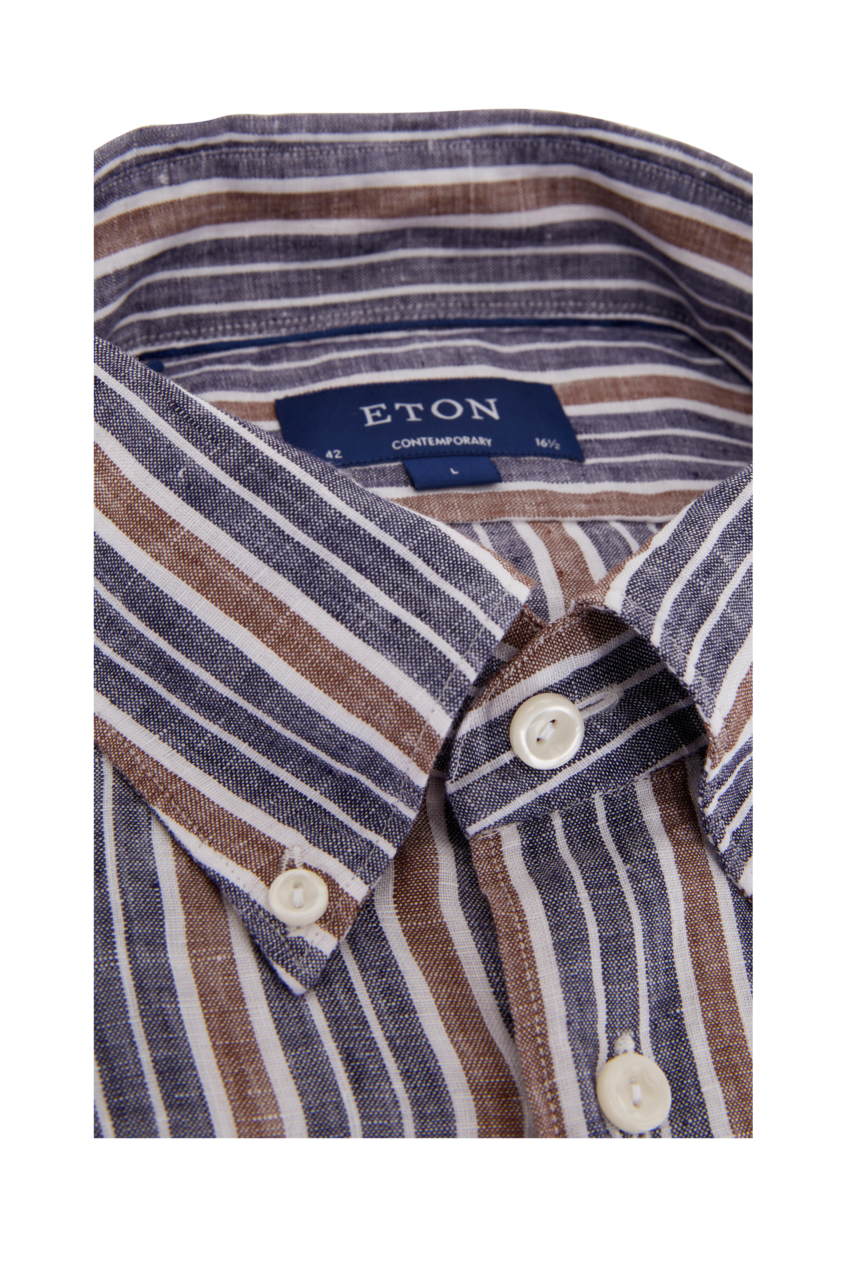Spread collar. Single button barrel cuffs. Imported. Contemporary fit. 100% linen. Dry clean.