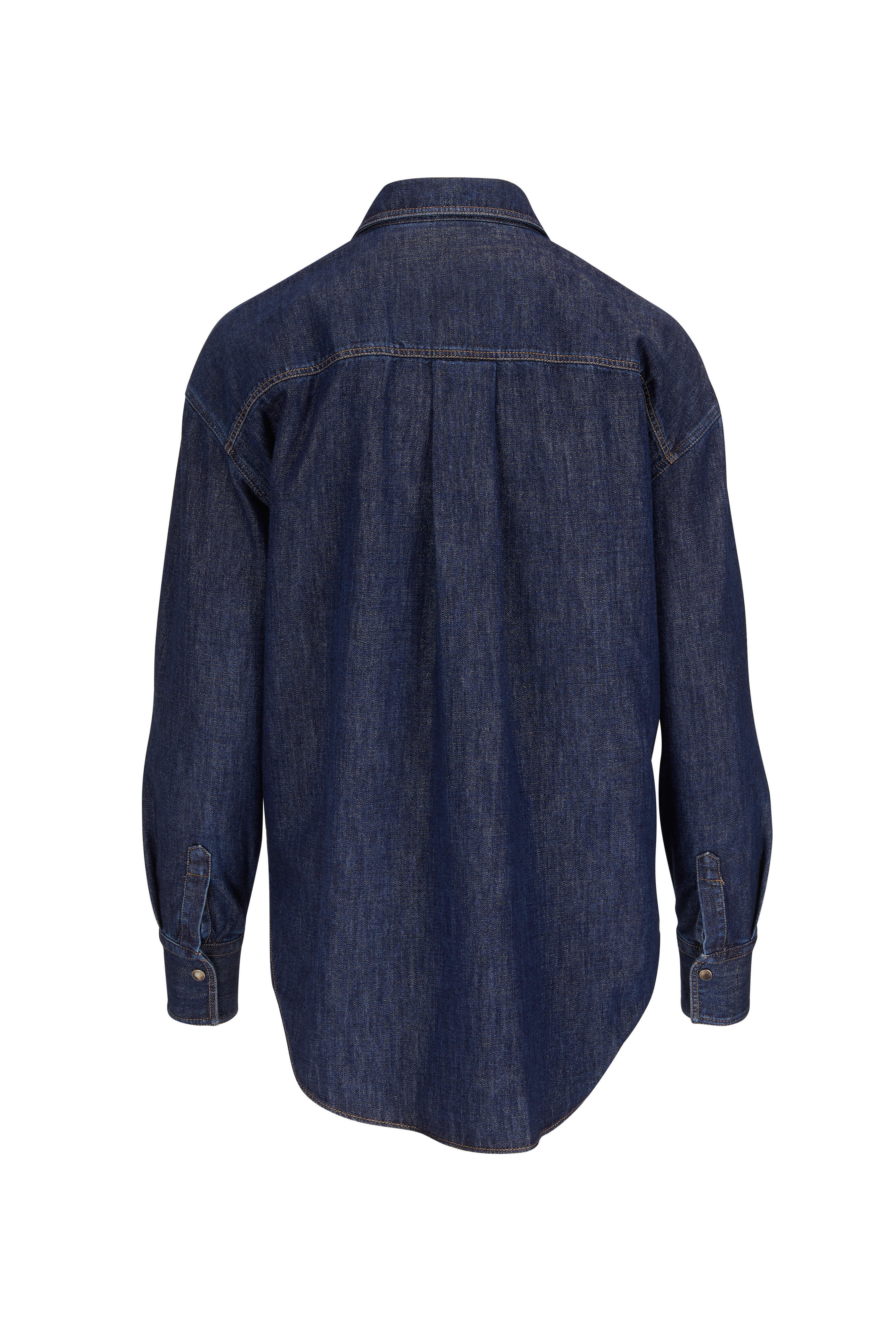 Spread collar. Snap placket. Chest snap flap pockets. Single snap squared cuffs. Vented hem. Made in Italy. 66% cotton, 28% viscose, 4% polyester, 2% polyamide. Hand wash.