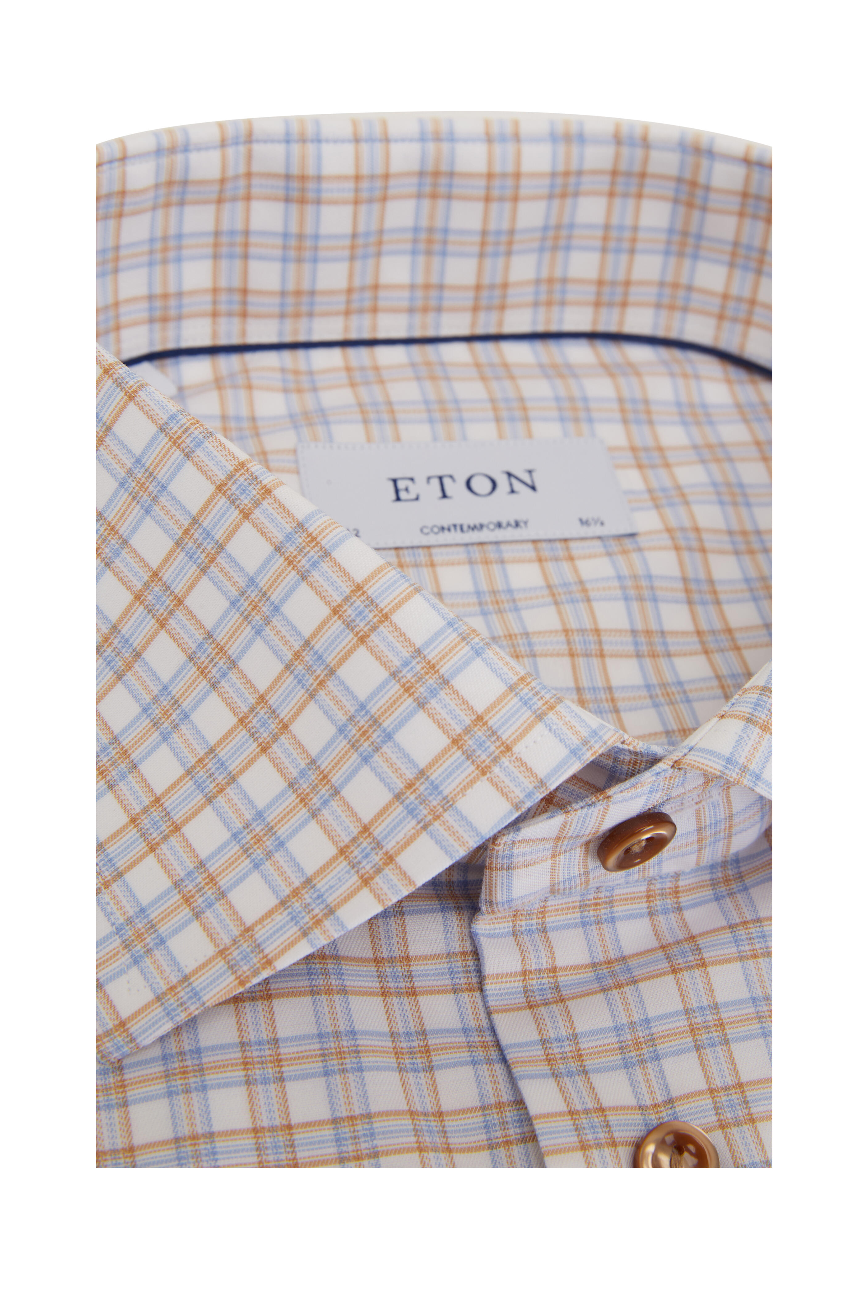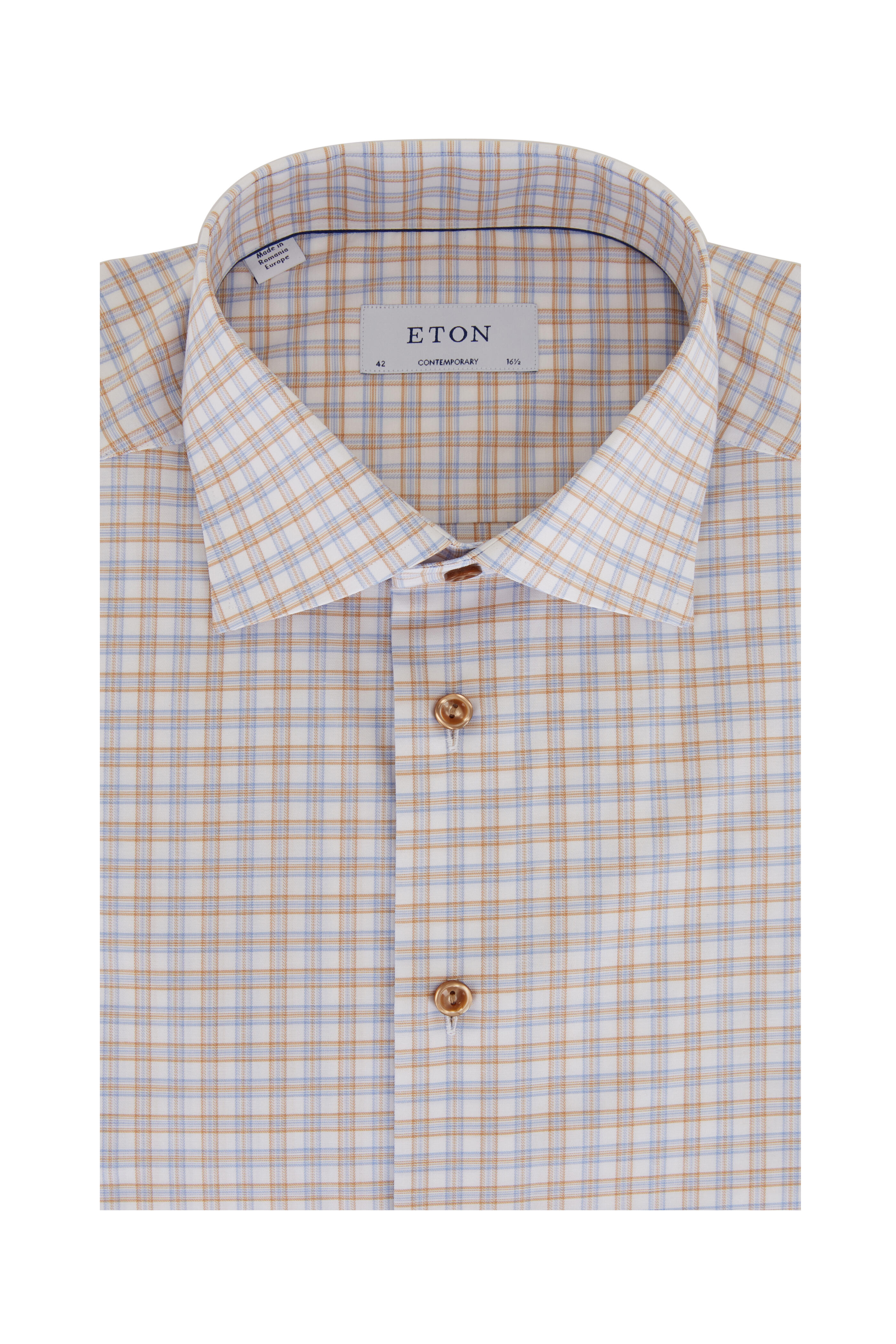 Brown Plaid Stretch Contemporary Fit Dress Shirt