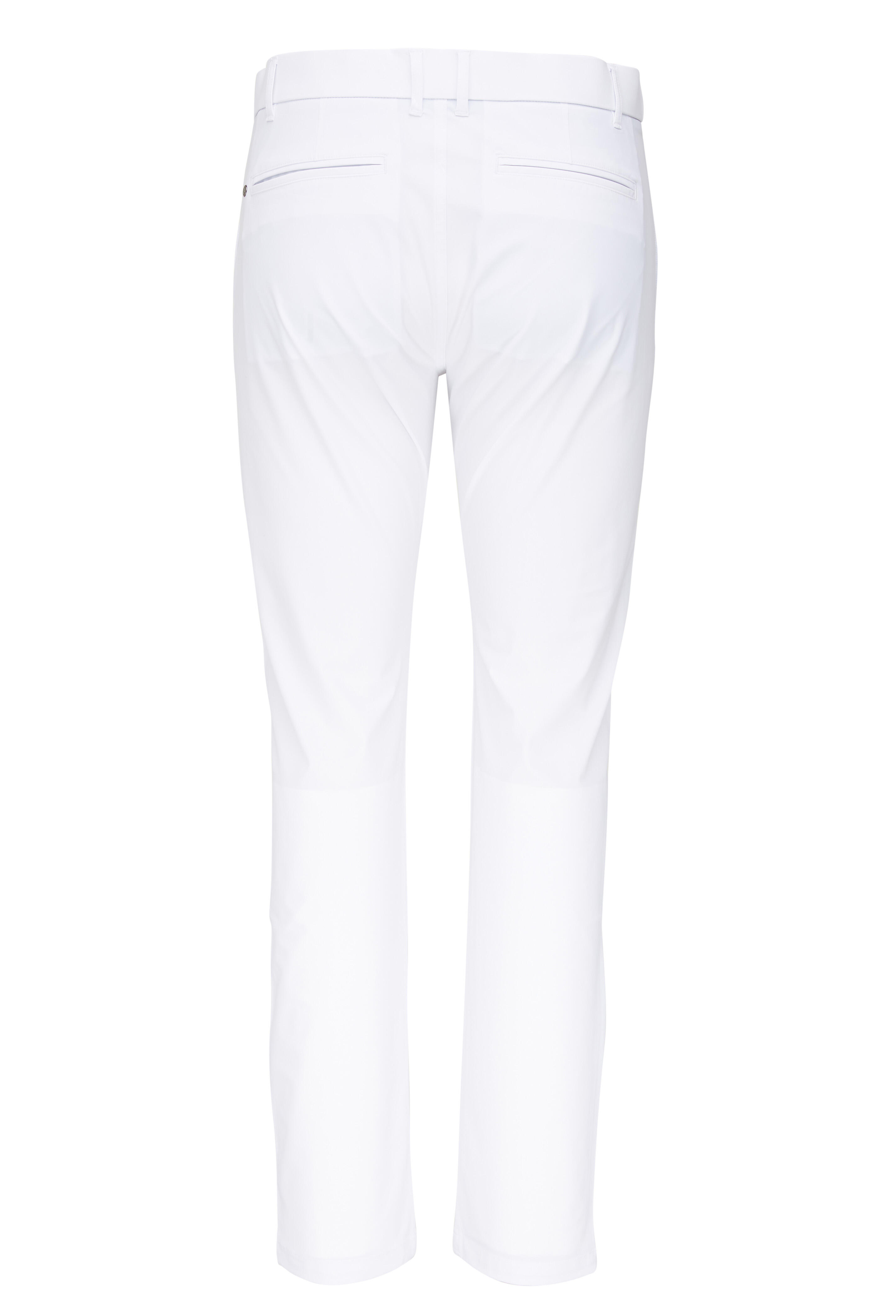 Banded waist; belt loops. Front zip. Two side slash pockets, two back besom pockets. Imported. 71% polymide, 29% elastane; lined: 100% polyester. Machine wash.