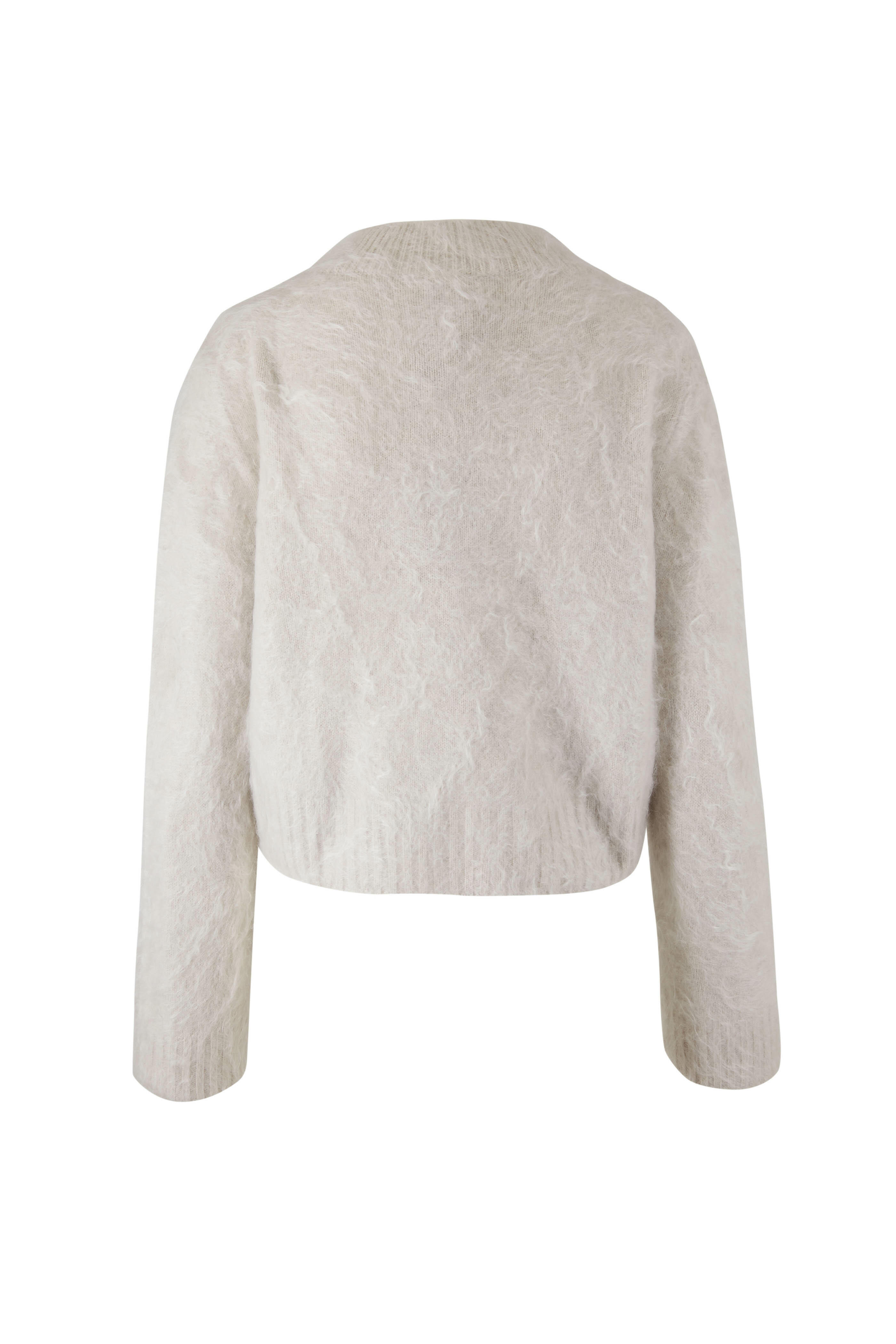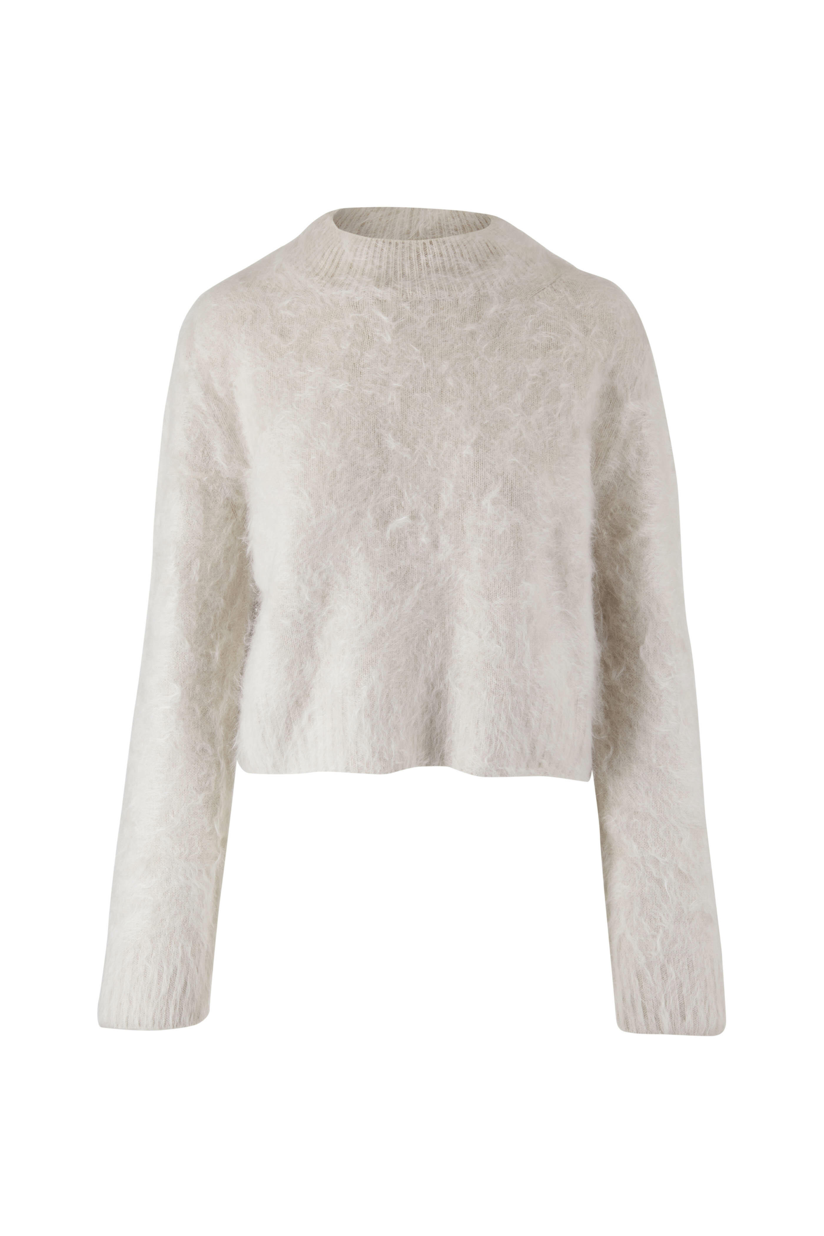 Raised crewneck. Ribbed trim. Imported. 100% cashmere. Dry clean.