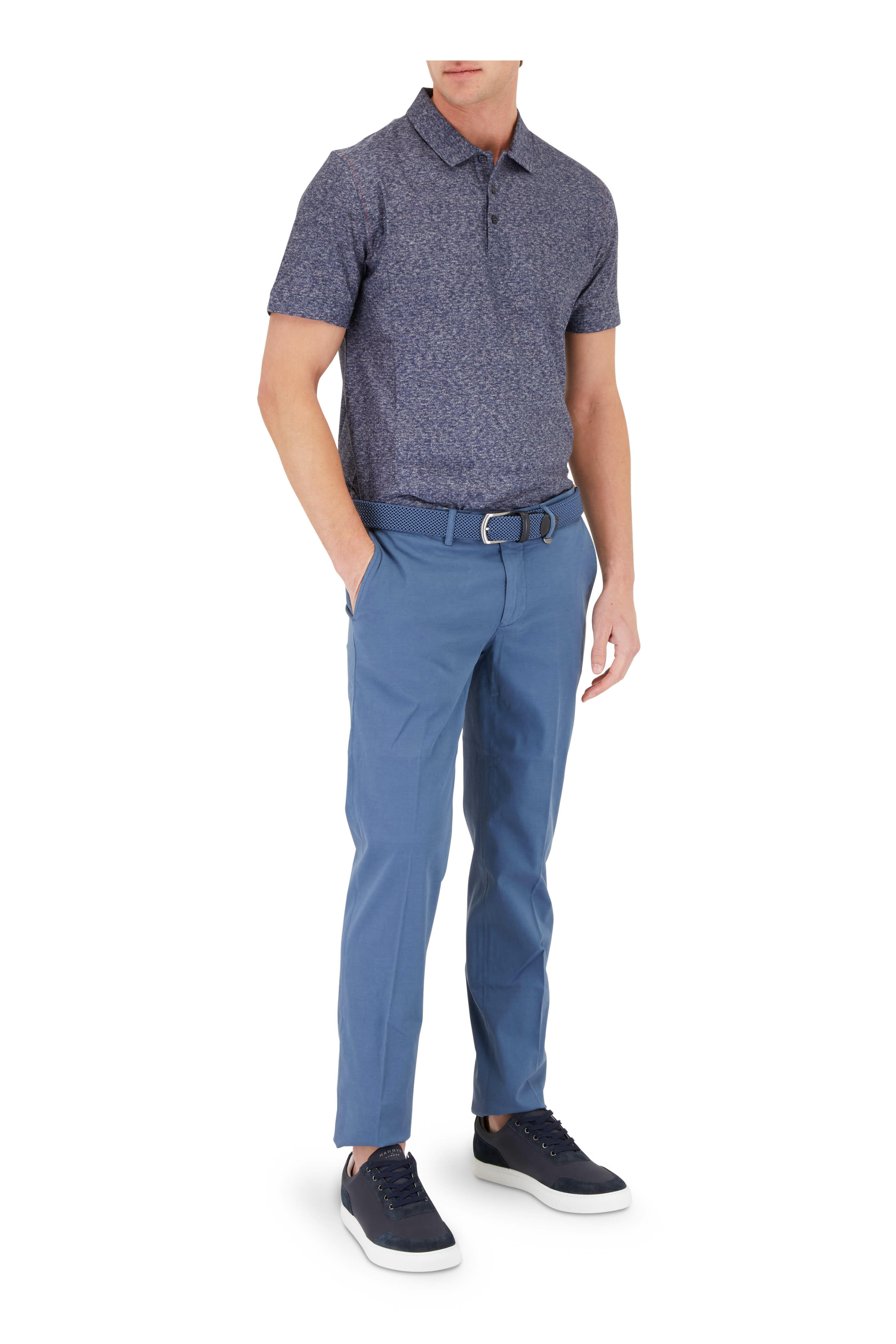 Woven nylon. Leather single loop keeper. Gunmetal tone buckle. Tapered leather tip. Made in Italy. approx. 1½" width.