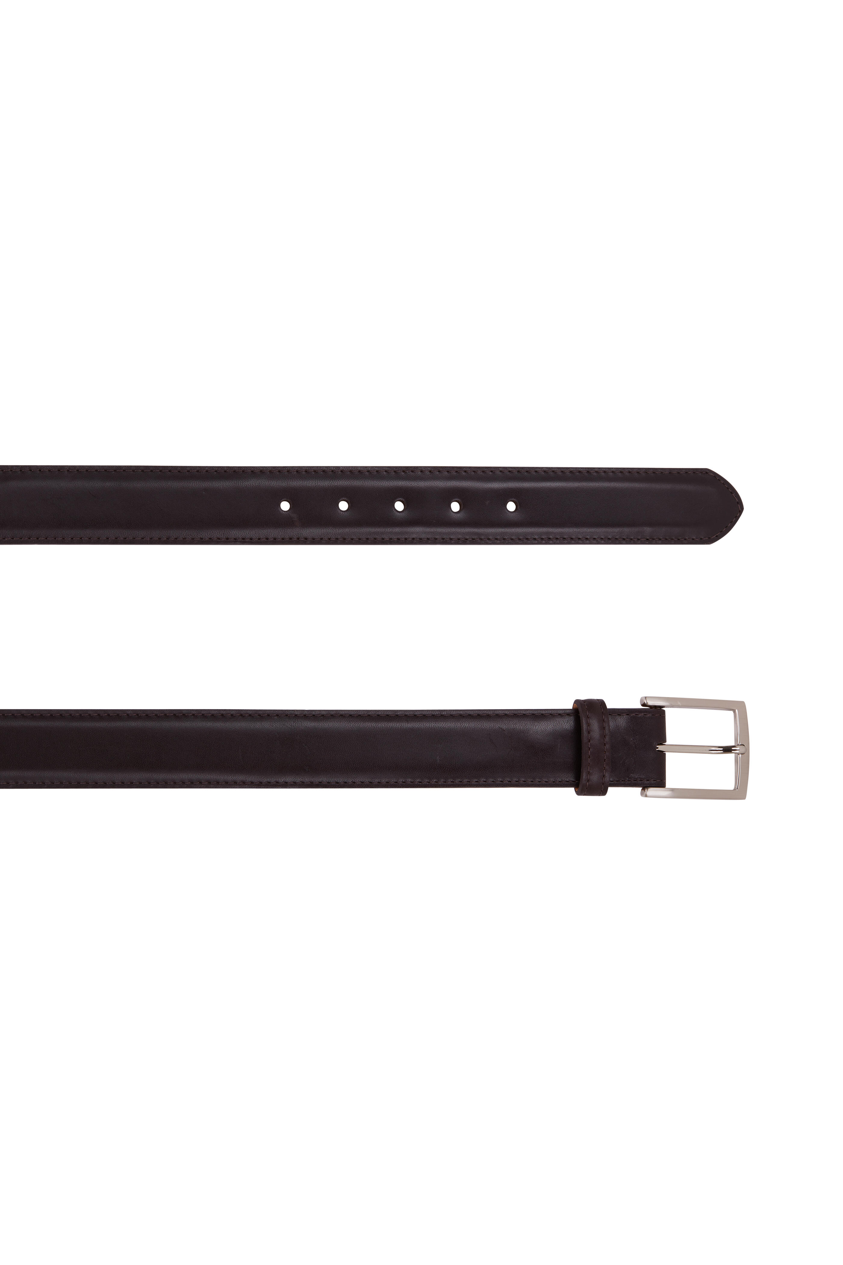 Leather. Square buckle. Single loop keeper. Made in the USA. 1 3/8" width.