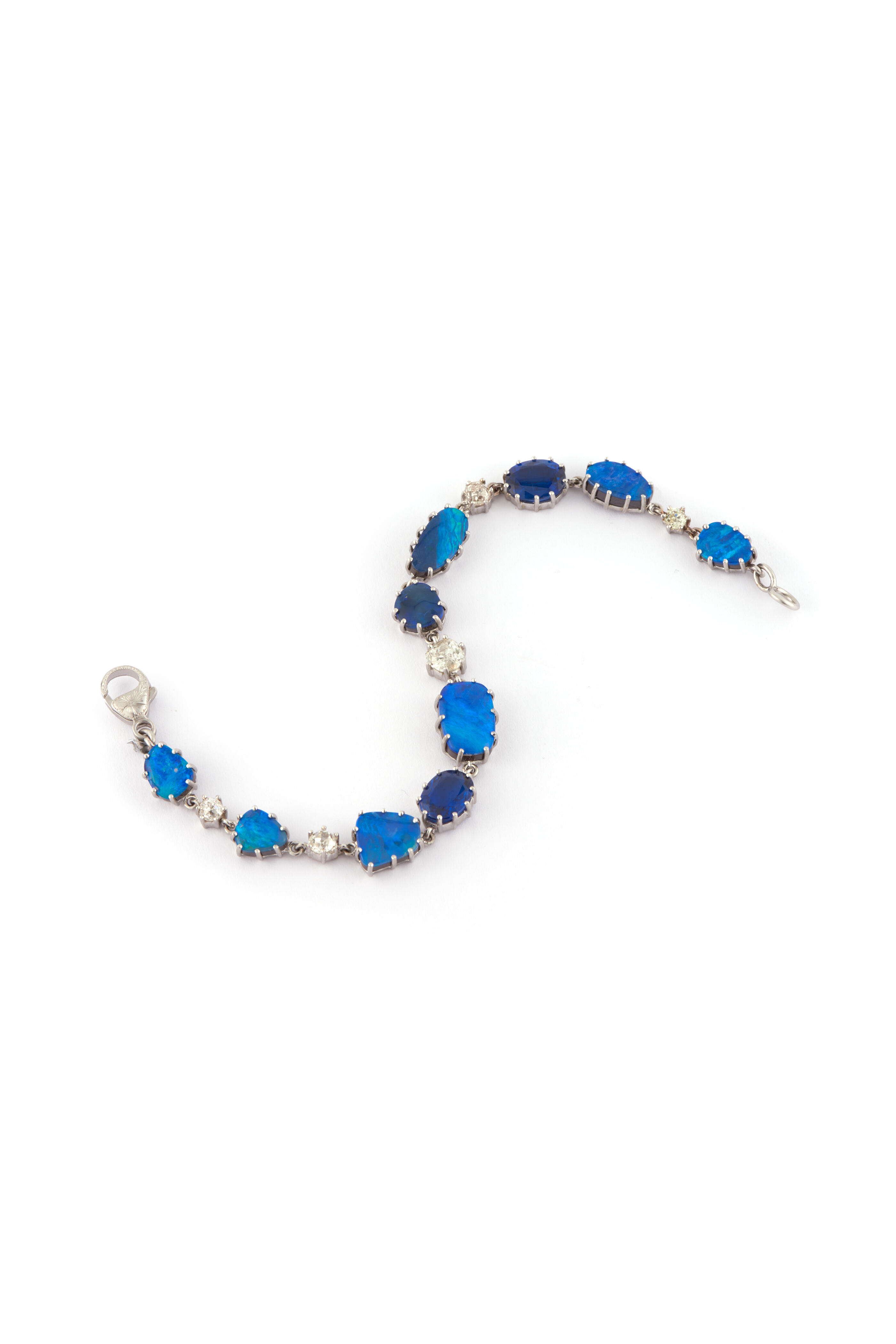 18k white gold. 1.69 carat old European cut diamonds. 3.40 carat kyanite.