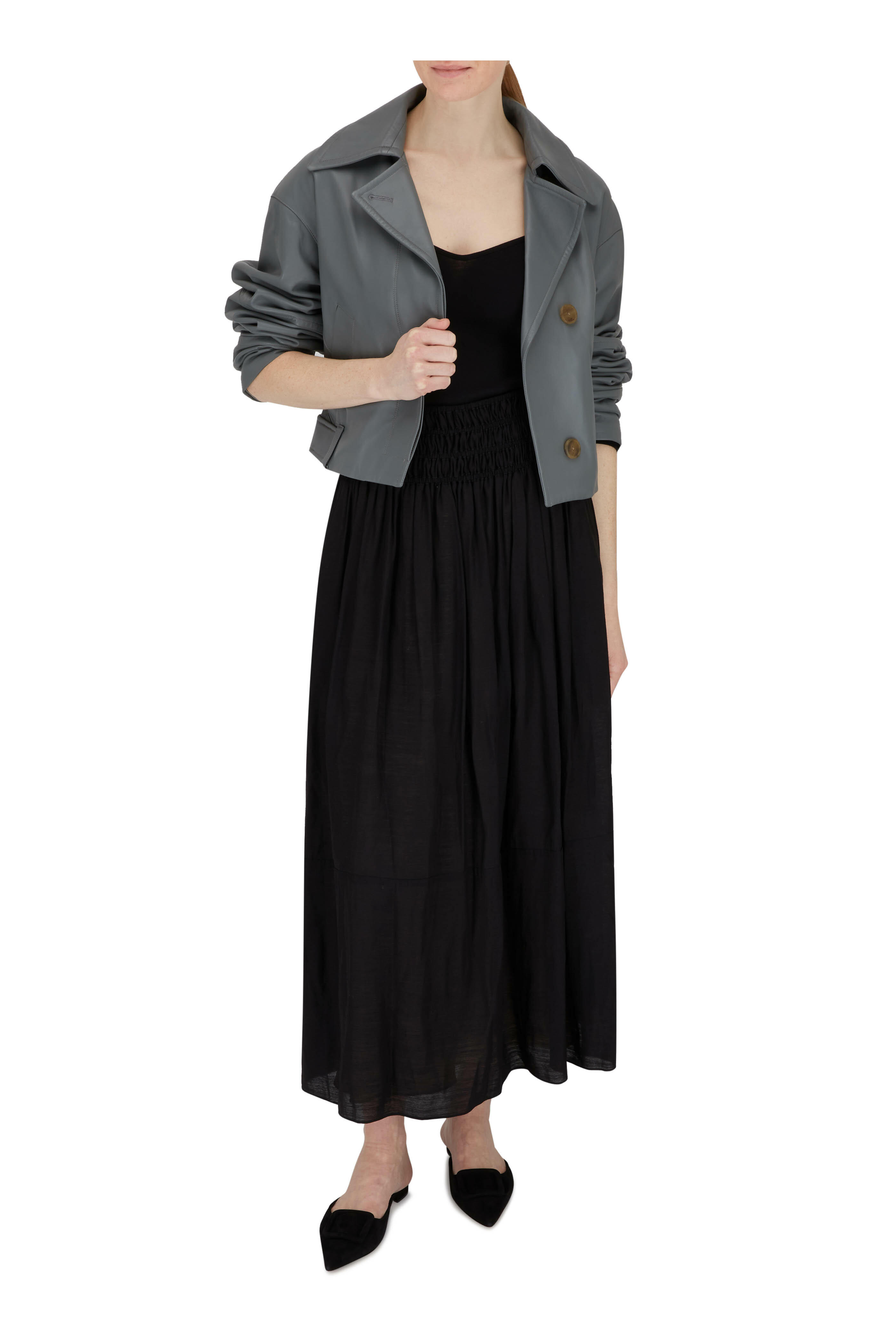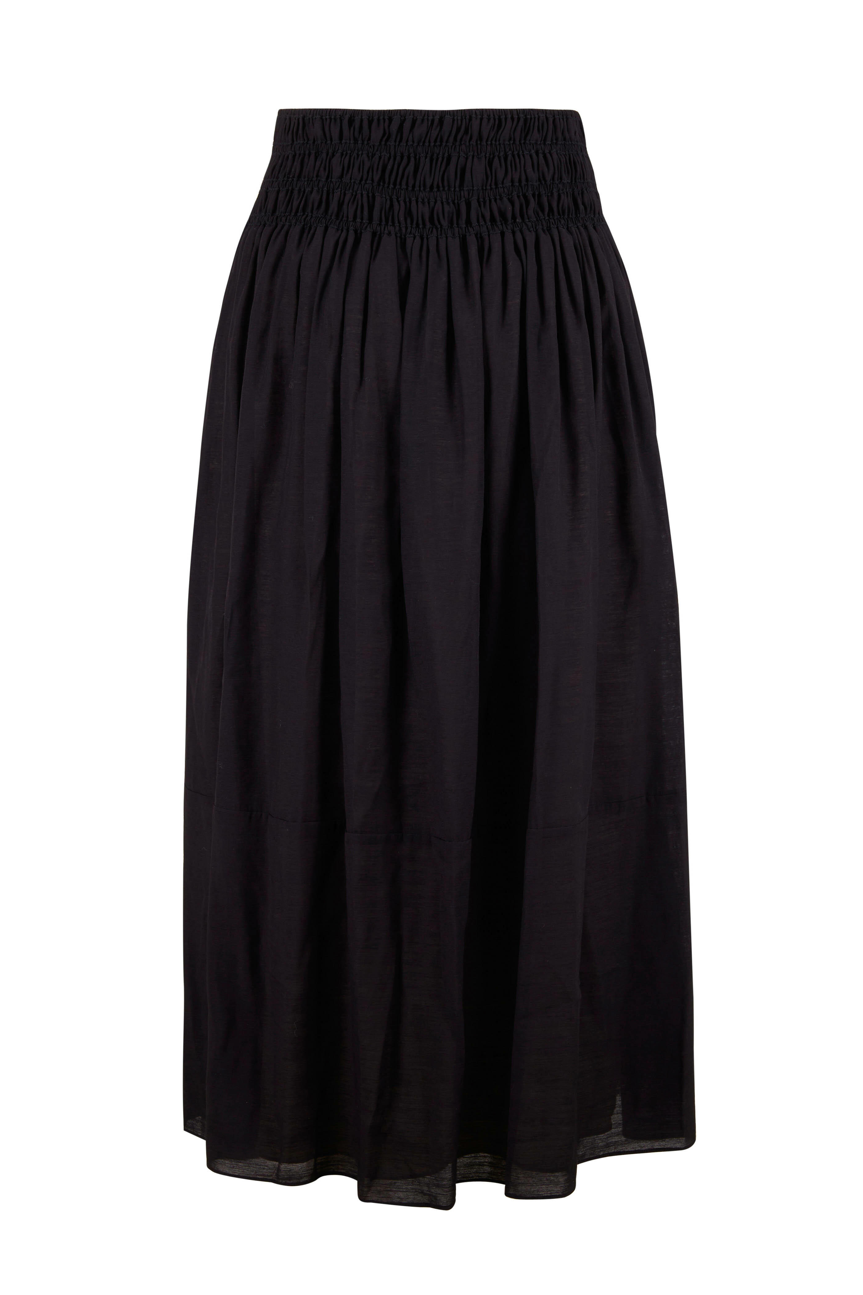 Black Smocked Tiered Skirt