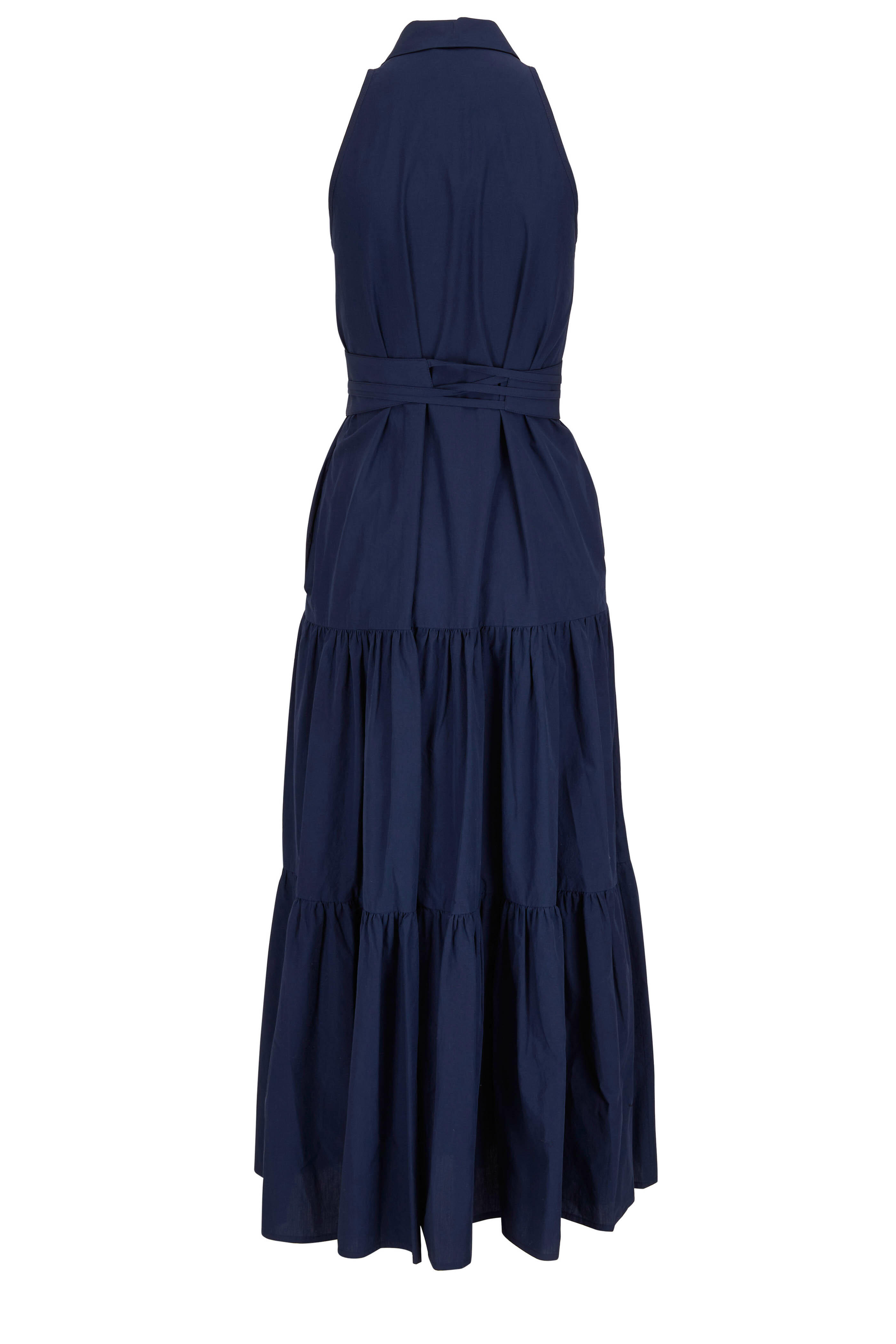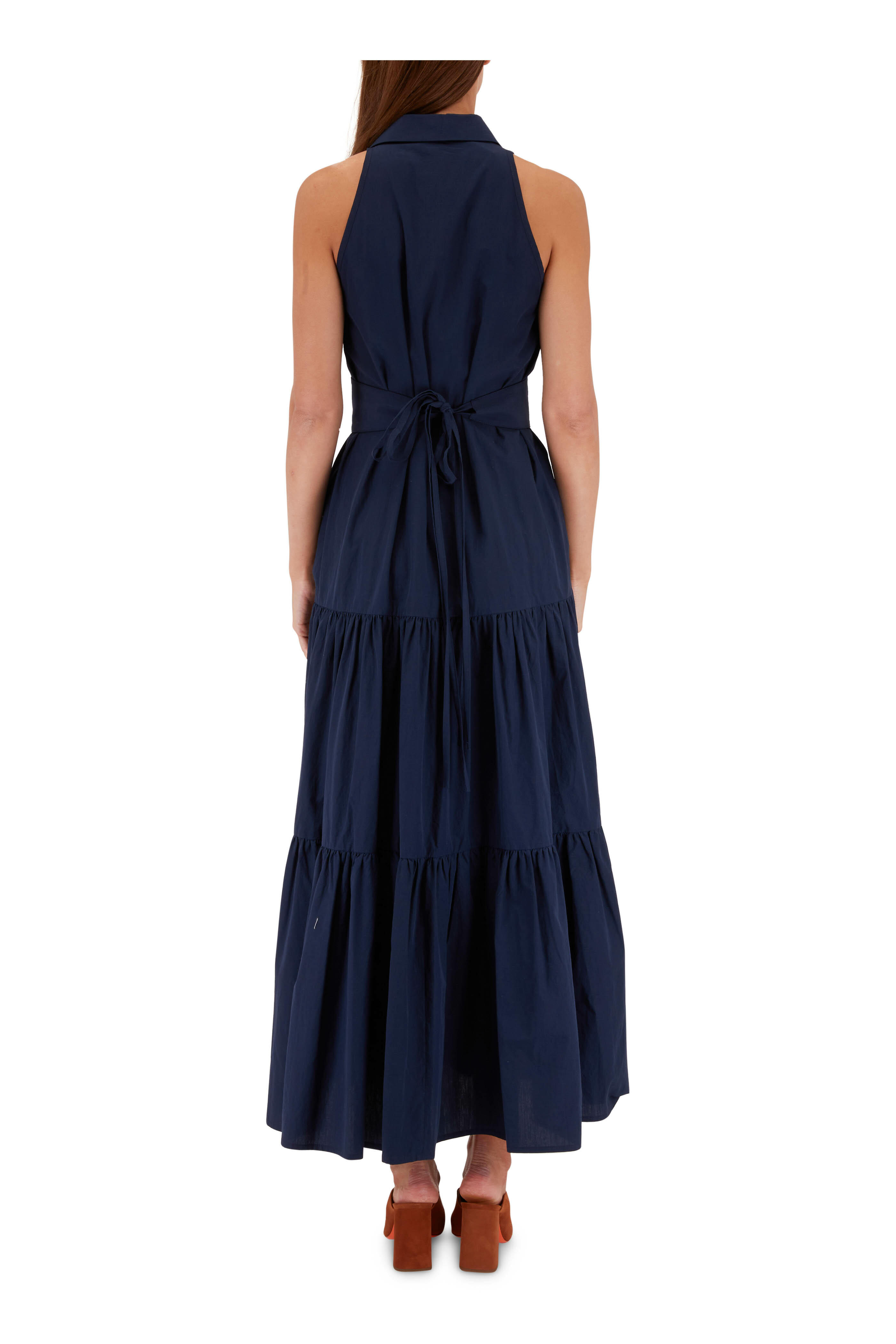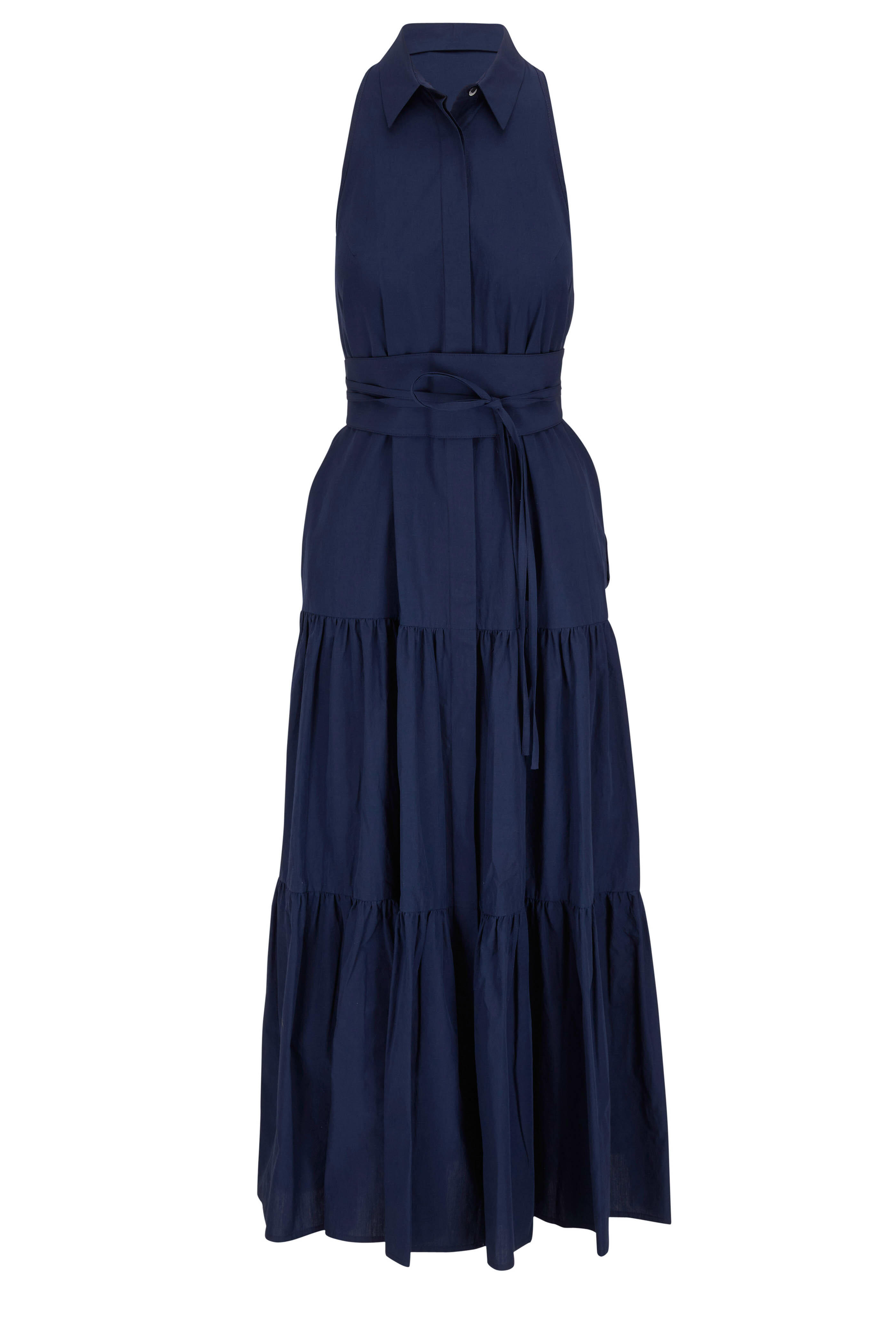 Spread collar. Front button placket; removable self-tie. Tiered skirt. On-seam pockets. Made in Italy. 100% cotton. Hand wash.