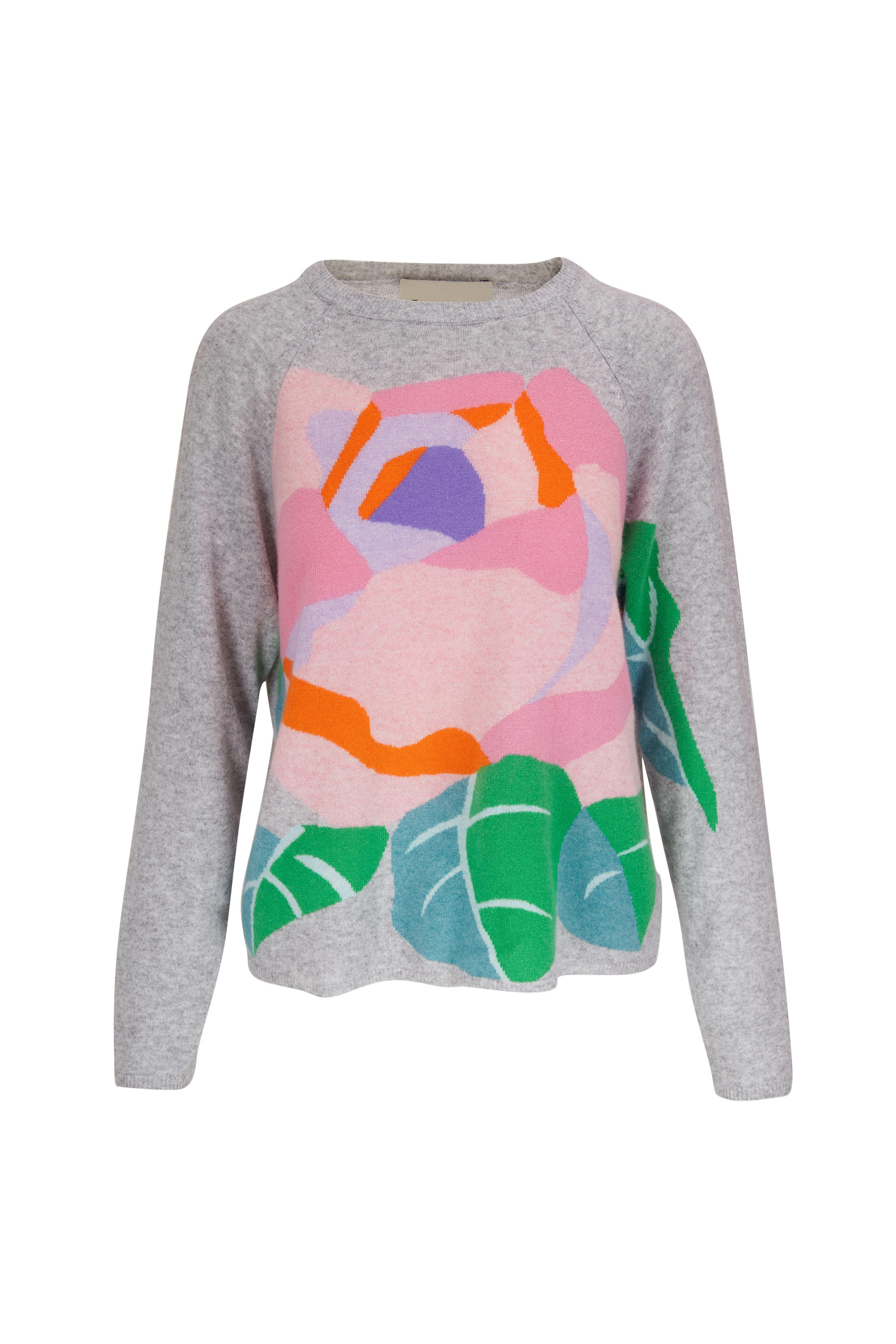 Multicolor Rose Print Cashmere Crewneck Sweater