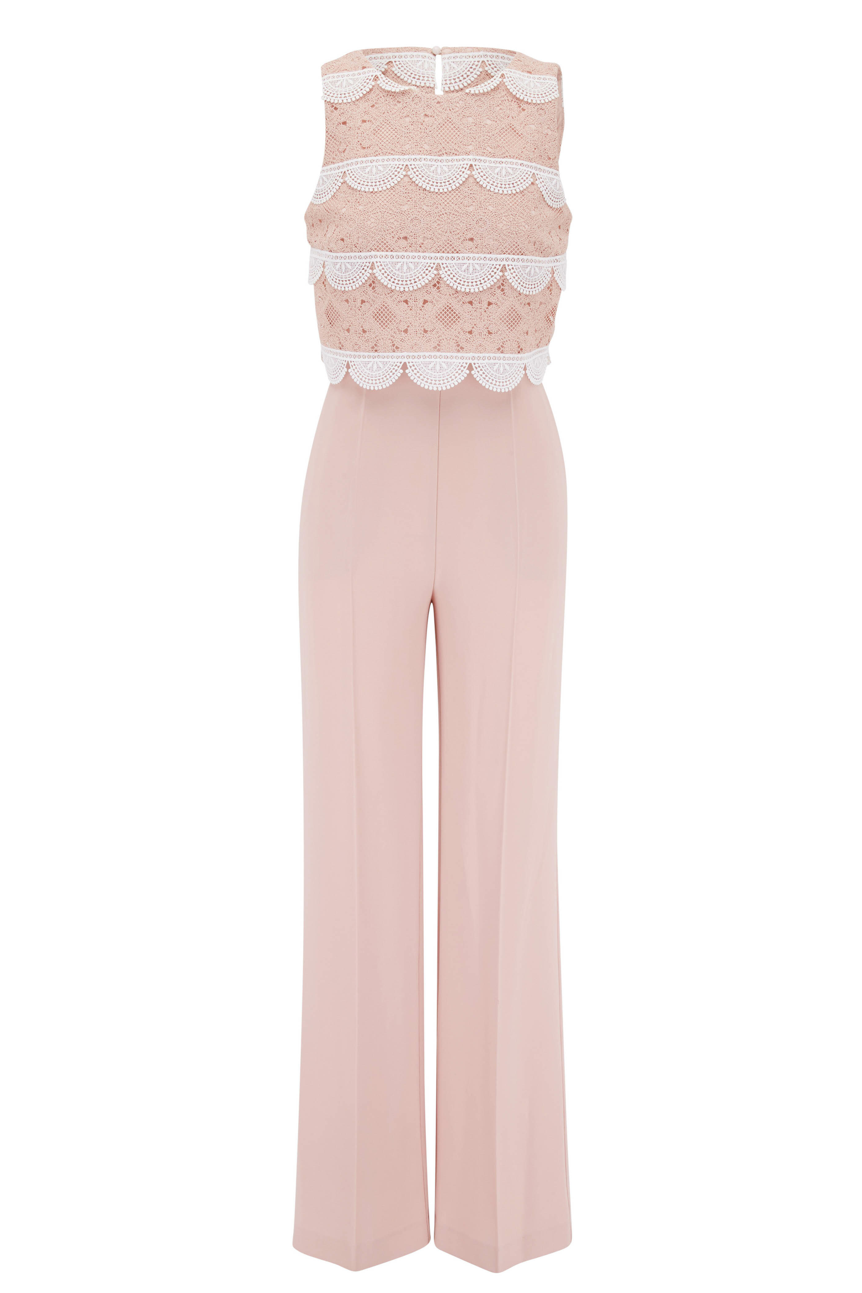 Pink & White Lace Eyelet Jumpsuit